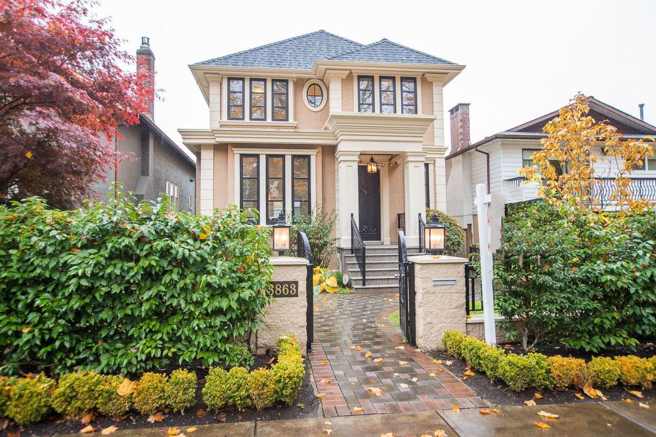 Luxury speaks for itself here in this 4 bedroom Master Piece home. 9 foot ceilings and custom designer hand set tiles using imported porcelain and mosaic tiles thru-out. Open concept kitchen features hand polished cabinets, 3 inch marble counters, kohler fixtures and Jennair appliances! Walk out to a Double deck patio and enjoy the private fully fenced yard. 2 gas fireplaces in family and living rooms. Gorgeous Master ensuite with a 5 piece ensuite, generous walk-in closet and a Money Sky Dome feature are sure to bring fortune to the new homeowners! Large Media room and bedroom with a separate entry down. Walking distance to Lord Byng secondary, minutes to UBC and Queen Elizabeth elementary schools. Open house on Saturday & Sunday 2-4pm