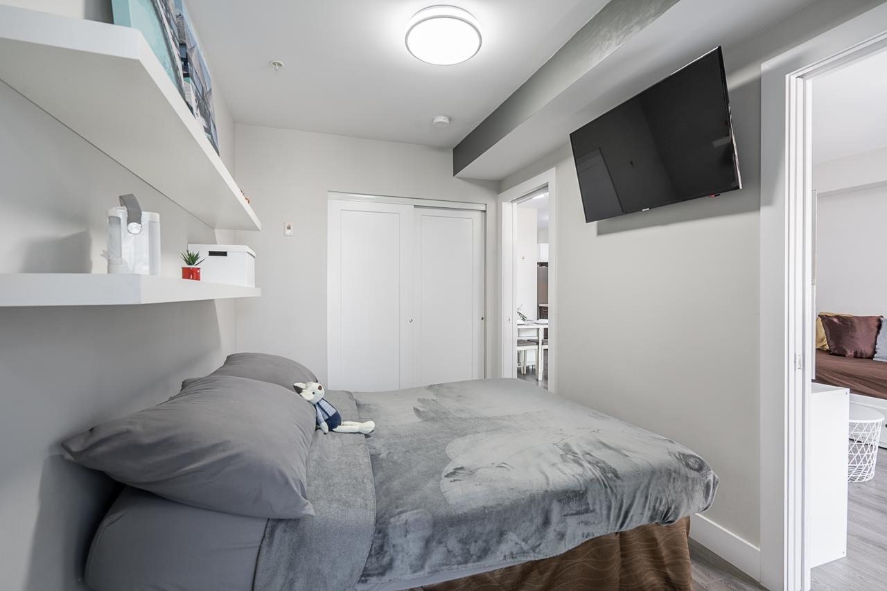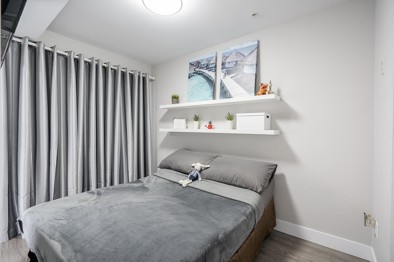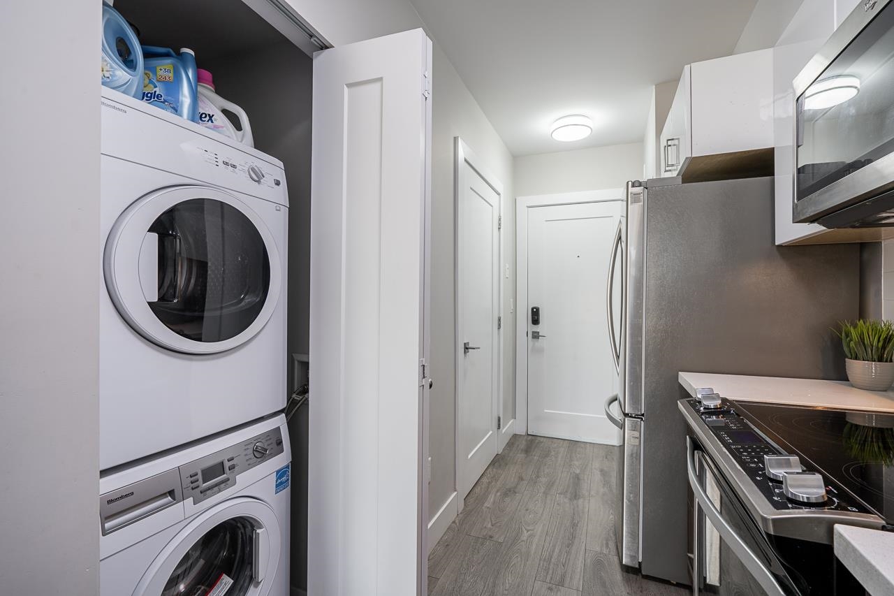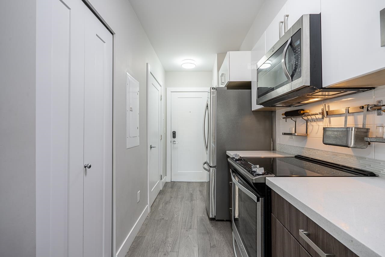 ATTN: 1st Time Buyers/ Investors: Opportunity is knocking!! Situated in the Kensington Cedar Cottage neighbourhood, this well appointed 1 bedroom + DEN unit redefines practical and sophisticated living. Situated on the quiet side of this boutique building, this rare unit comes summer ready with A/C! Fantastic layout with large living room & dining room featuring designer laminate floors, linear kitchen with extensive use of quartz countertops and upgraded stainless steel appliances with large double door fridge and in-suite laundry. The DEN is perfect and large enough for many uses; home office, 2nd bedroom or nursery room. Centrally located, this area truly has no need for a car! With a Walkscore of 91, steps out your front door are shops, parks, library, Save-On-Food and transit.