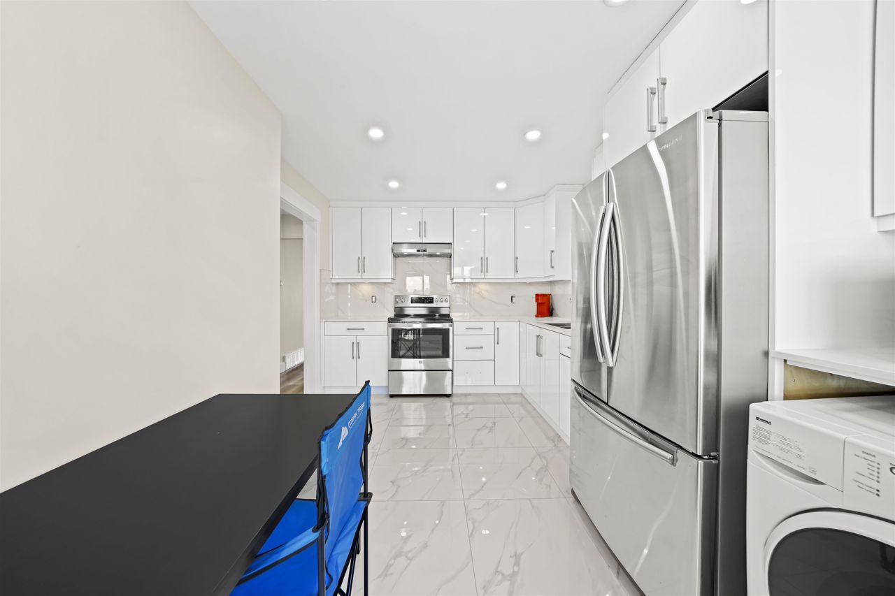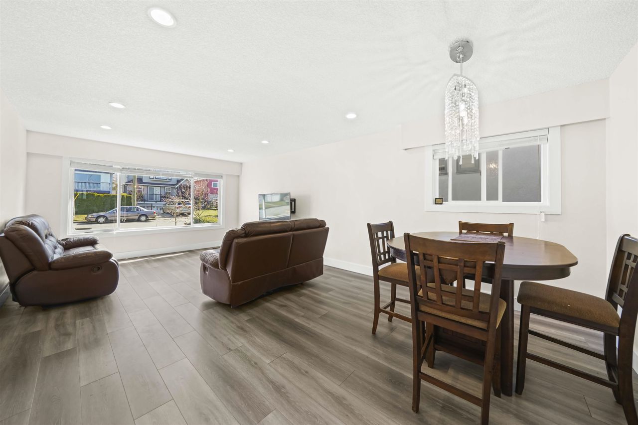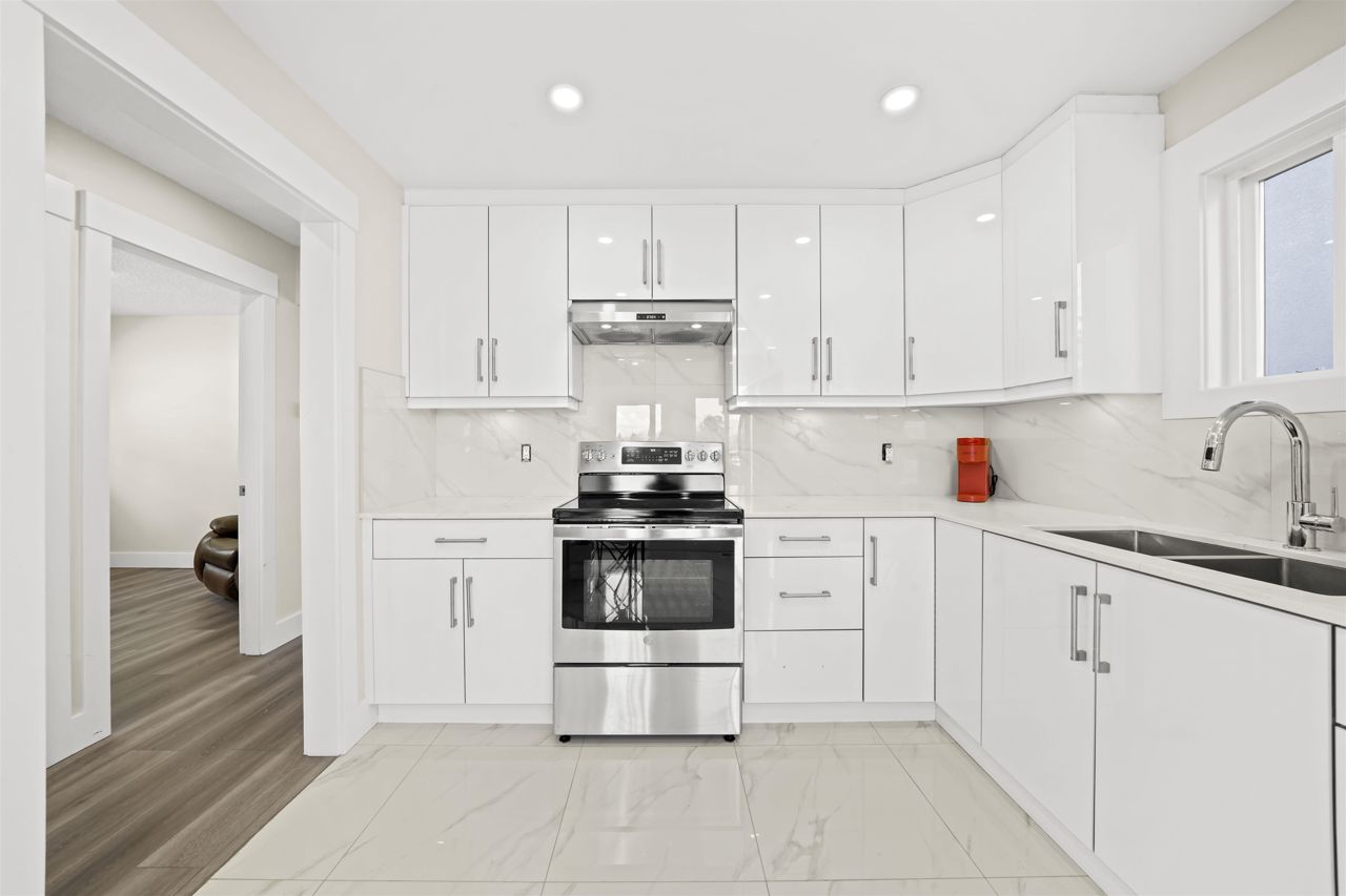 RENOVATED 2 level Vancouver Special in popular COLLINGWOOD area with mountain views! Steps to Earles & 29th SKYTRAIN! Must see this move in condition totally UPDATED upstairs in 2022 featuring spacious livingroom/diningroom and 3 bright bedrooms; completely updated flooring, new kitchen with lots of counter top space and new appliances, fresh new bathroom and full size laundry upstairs. Also featuring fully finished downstairs 2 bedroom suite with separate ground level entry, exterior boasts double glazed vinyl windows and a huge entertainment sized sundeck. Minutes to Slocan Park, Grenfell Elementary & Windermere Secondary. All measurements are to be independently verified by the buyer if important.// basement virtual tour link https://my.matterport.com/show/?m=JqXKut6PK3F