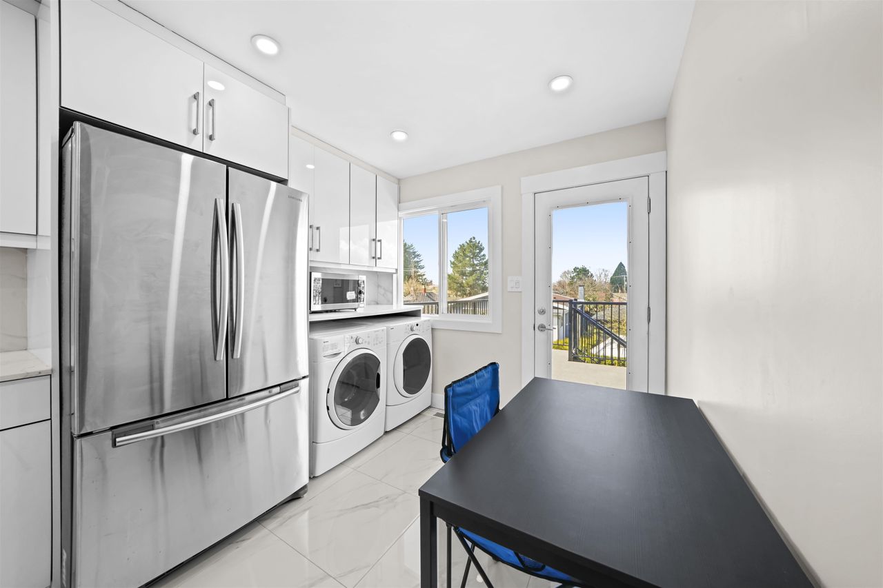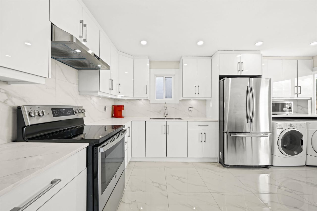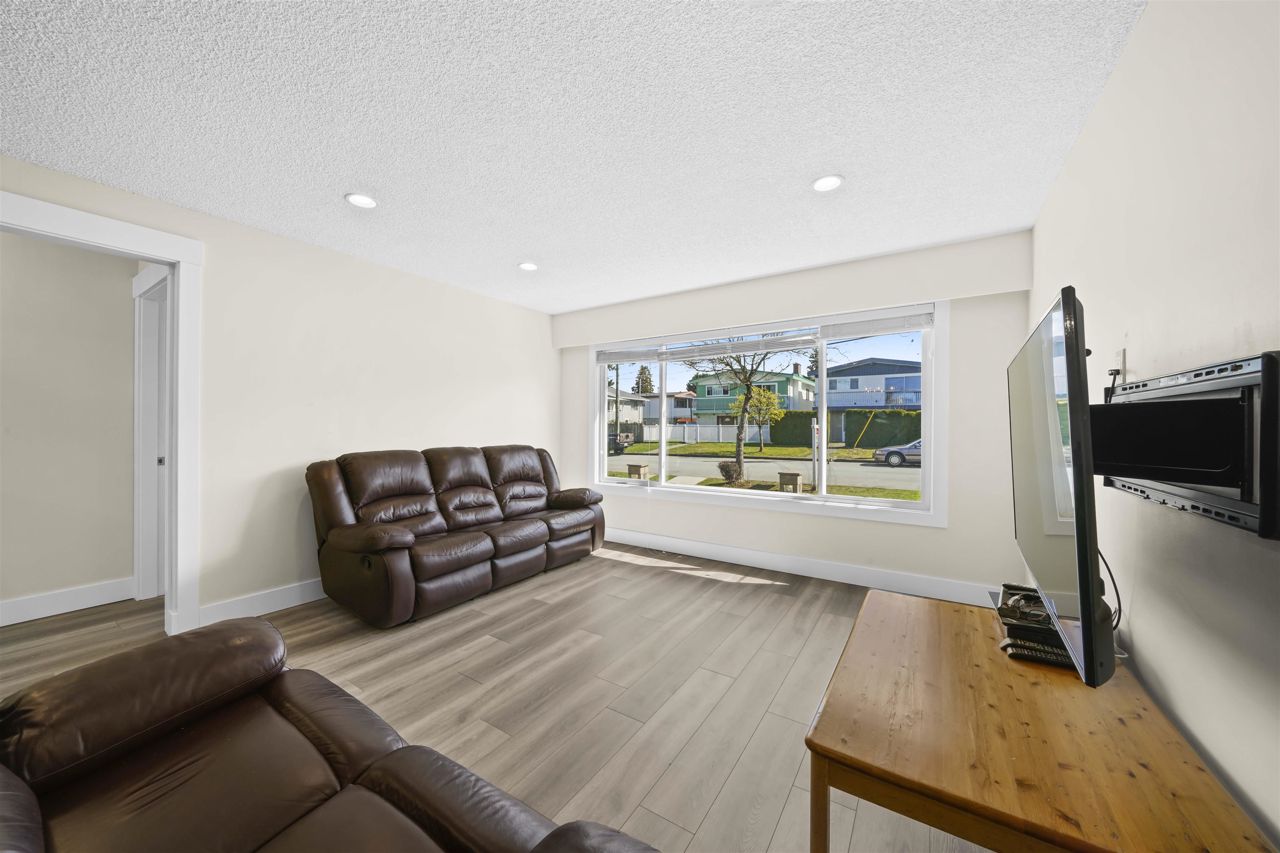 RENOVATED 2 level Vancouver Special in popular COLLINGWOOD area with mountain views! Steps to Earles & 29th SKYTRAIN! Must see this move in condition totally UPDATED upstairs in 2022 featuring spacious livingroom/diningroom and 3 bright bedrooms; completely updated flooring, new kitchen with lots of counter top space and new appliances, fresh new bathroom and full size laundry upstairs. Also featuring fully finished downstairs 2 bedroom suite with separate ground level entry, exterior boasts double glazed vinyl windows and a huge entertainment sized sundeck. Minutes to Slocan Park, Grenfell Elementary & Windermere Secondary. All measurements are to be independently verified by the buyer if important.// basement virtual tour link https://my.matterport.com/show/?m=JqXKut6PK3F