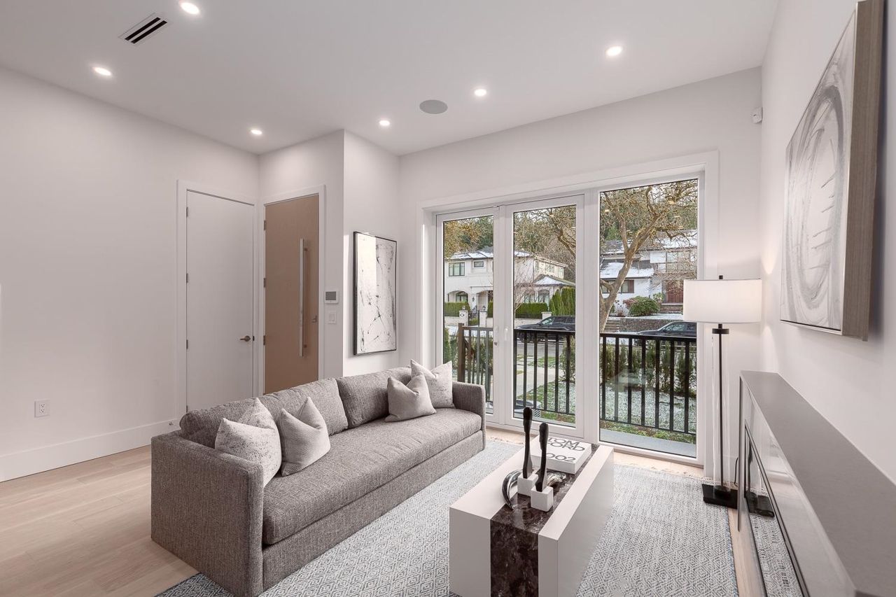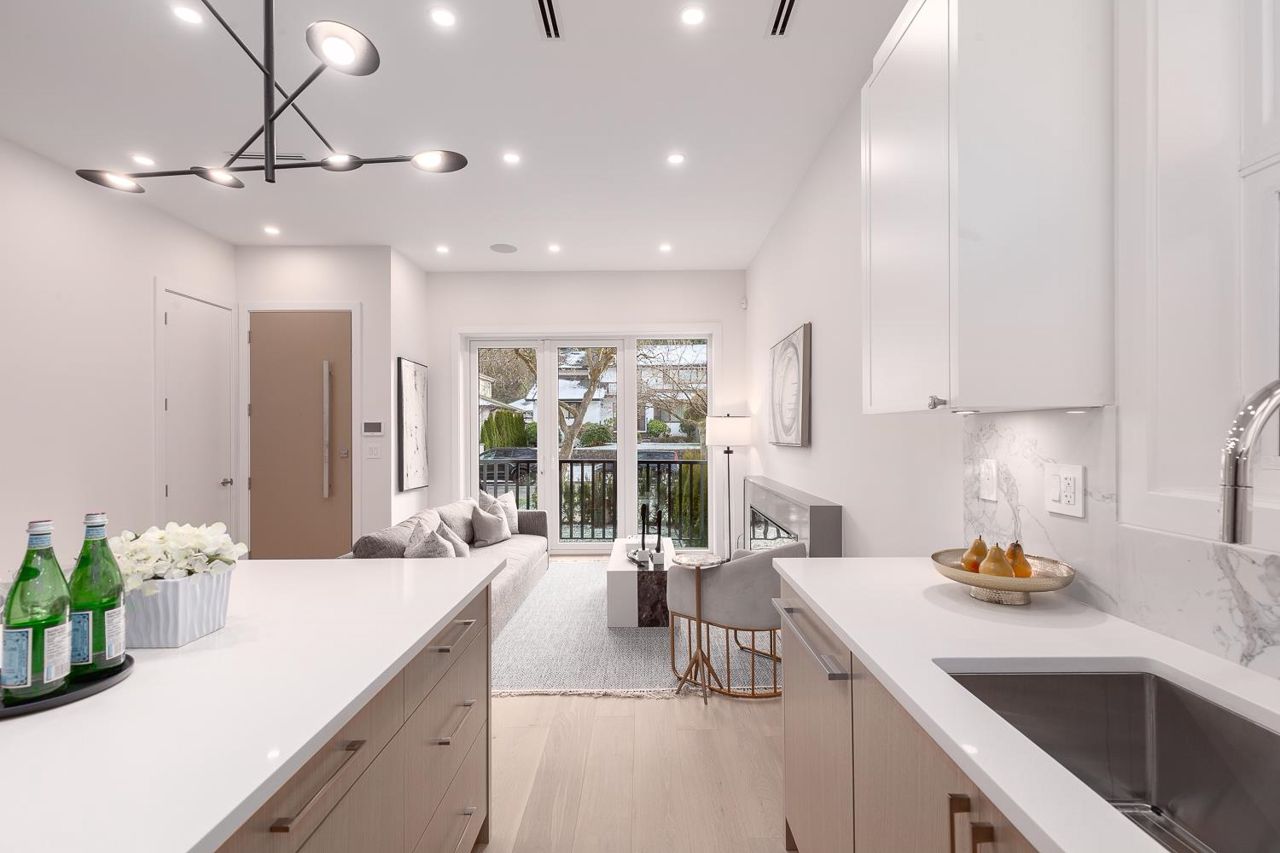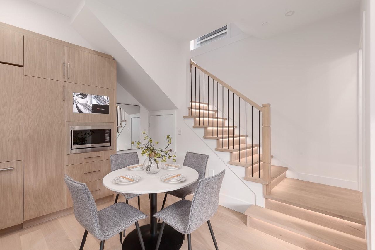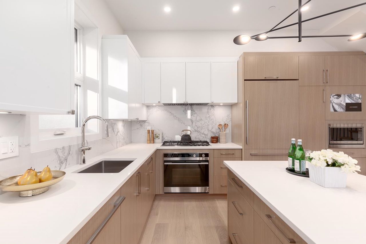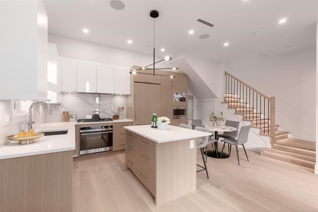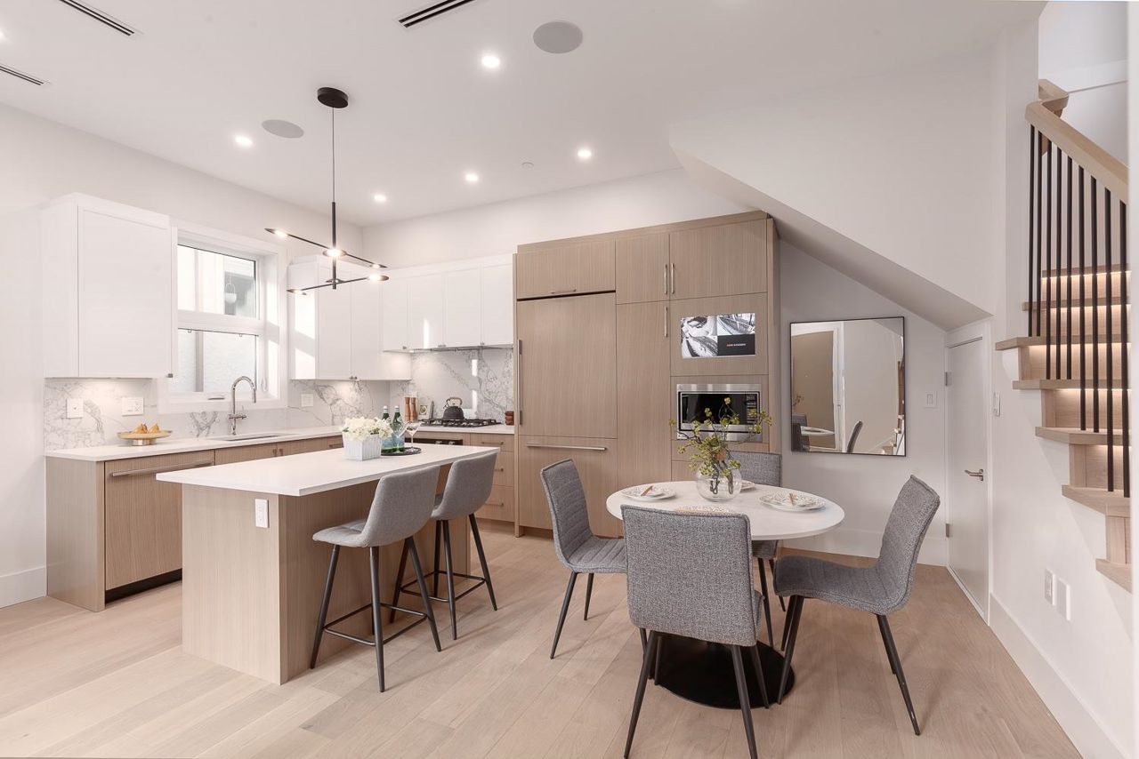 Welcome home to this BRAND NEW 3 bed/ 3.5 bath ½ duplex in the highly sought after Point Grey neighborhood. This residence seamlessly blends modern luxury & comfort! Main lvl boasts open living w/an electric fireplace in the living area. The kitchen is a chef’s dream w/integrated top of the line appliances, gas stovetop and ample storage space. Expansive crawl space just off the dining area and a powder bath complete this floor. Upstairs you’ll find 2 bedrooms both w/ensuite bathrooms, laundry & more storage. Primary bedroom features a generous closet & lavish ensuite. The 3rd lvl consists of an add’l bedroom that could also be used as an office/flex space w/a fully covered patio for year-round use & a full bath. Ideally located near the Pacific Spirit Trail, UBC, Jericho Beach, & more!