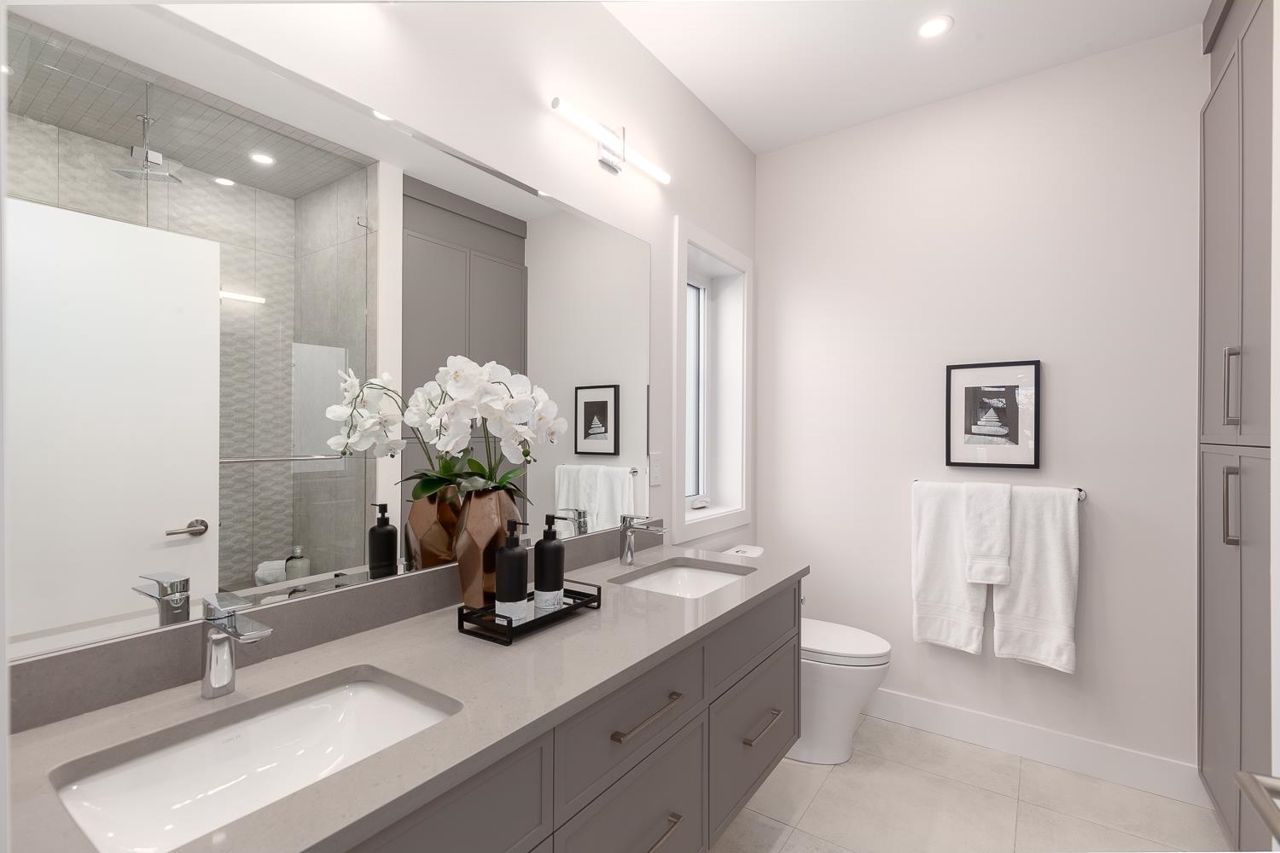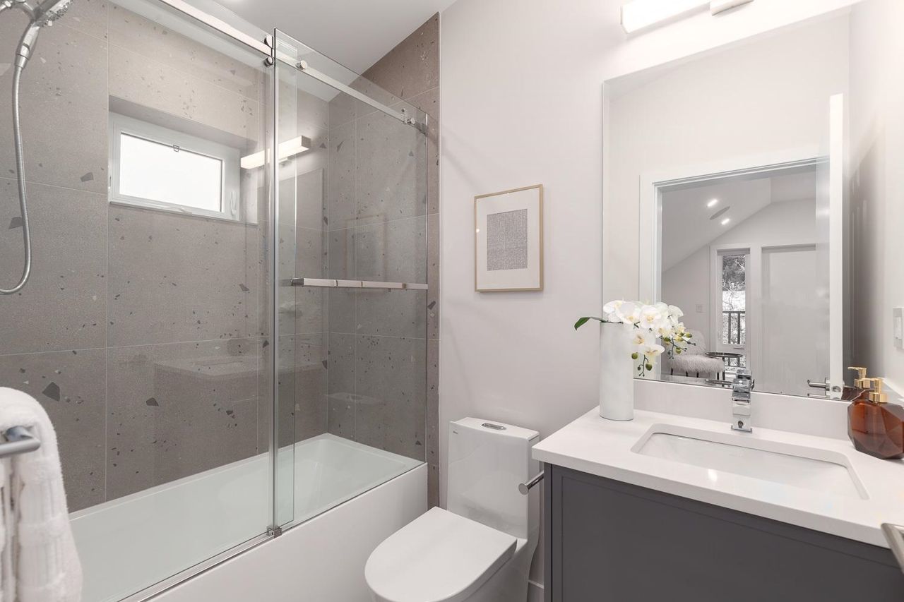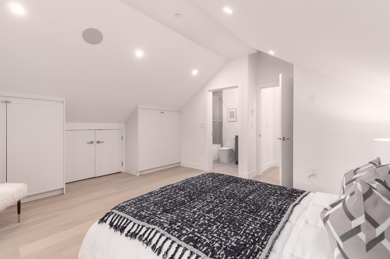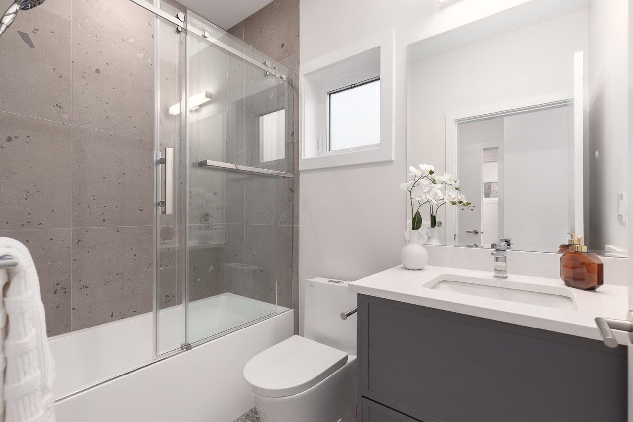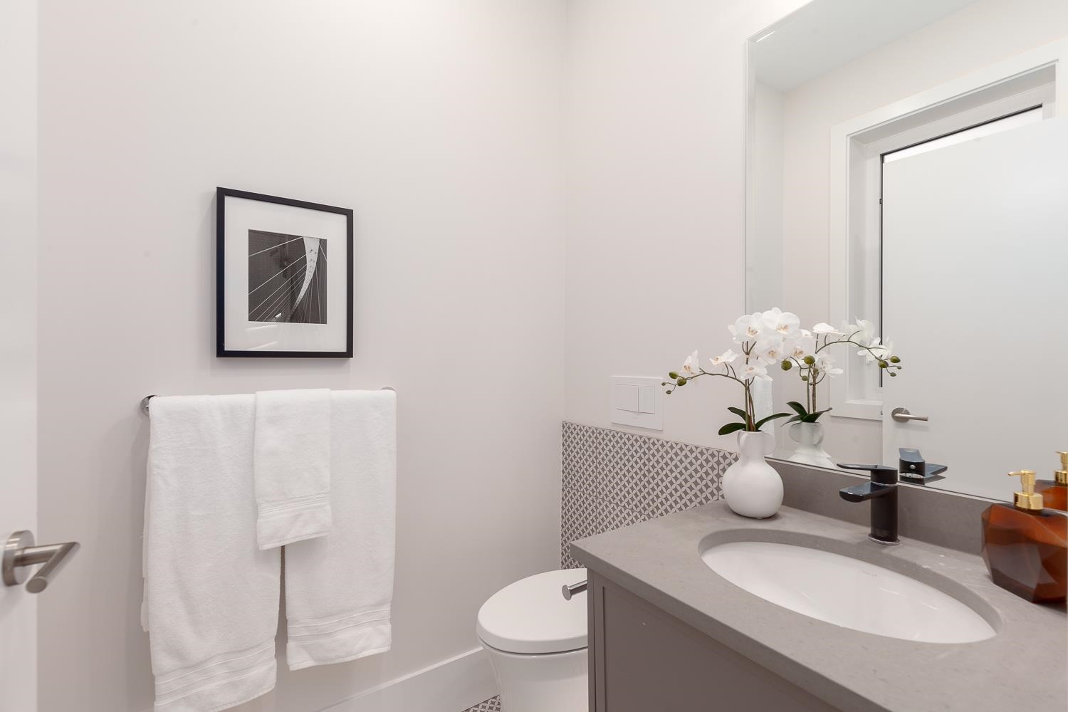 Welcome home to this BRAND NEW 3 bed/ 3.5 bath ½ duplex in the highly sought after Point Grey neighborhood. This residence seamlessly blends modern luxury & comfort! Main lvl boasts open living w/an electric fireplace in the living area. The kitchen is a chef’s dream w/integrated top of the line appliances, gas stovetop and ample storage space. Expansive crawl space just off the dining area and a powder bath complete this floor. Upstairs you’ll find 2 bedrooms both w/ensuite bathrooms, laundry & more storage. Primary bedroom features a generous closet & lavish ensuite. The 3rd lvl consists of an add’l bedroom that could also be used as an office/flex space w/a fully covered patio for year-round use & a full bath. Ideally located near the Pacific Spirit Trail, UBC, Jericho Beach, & more!
