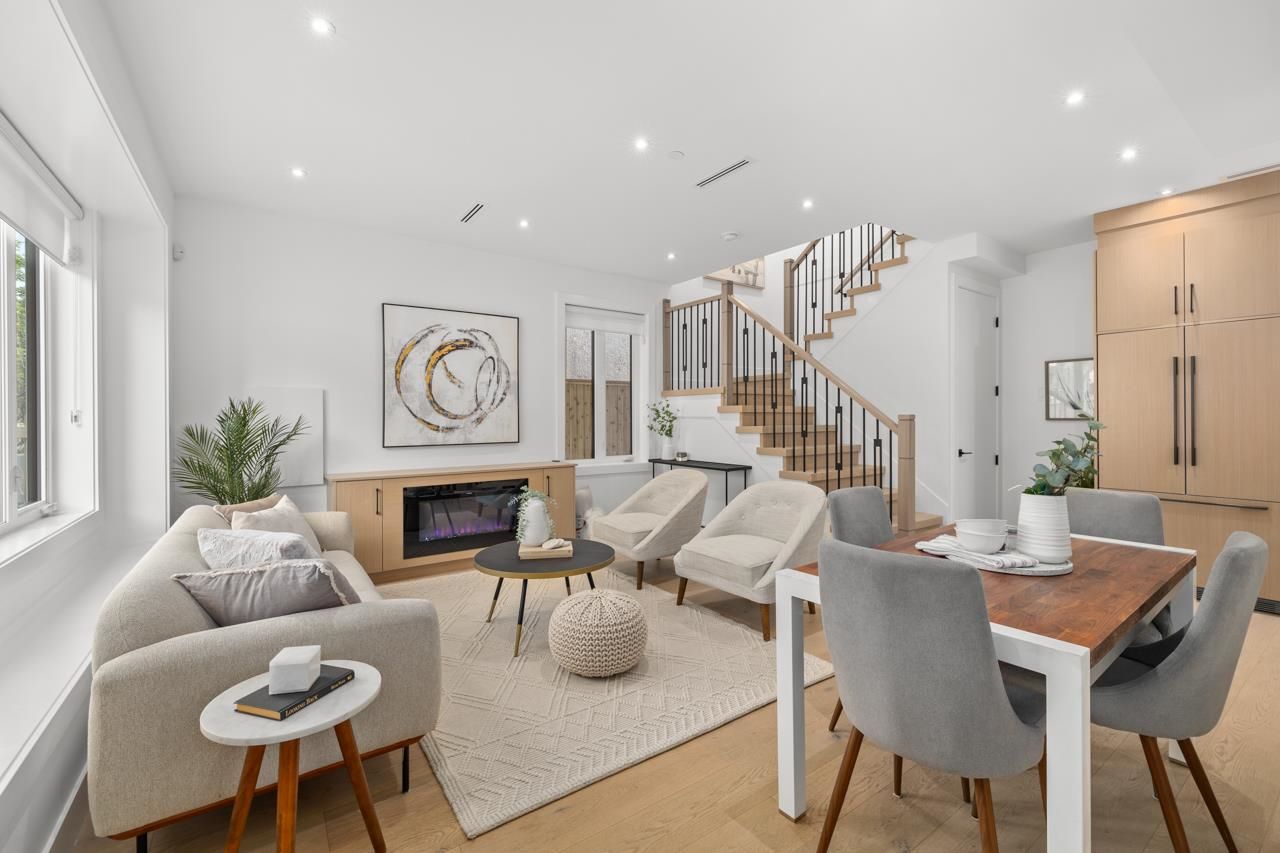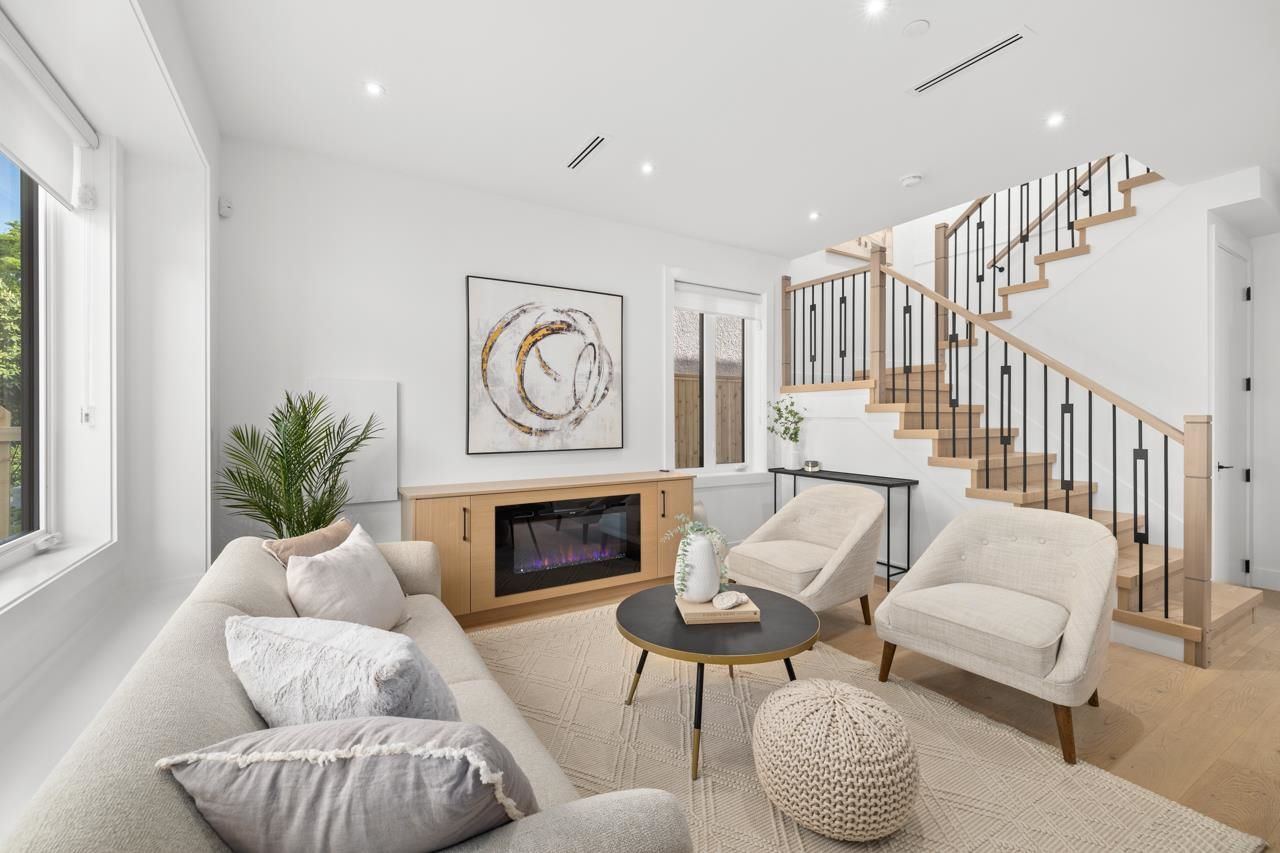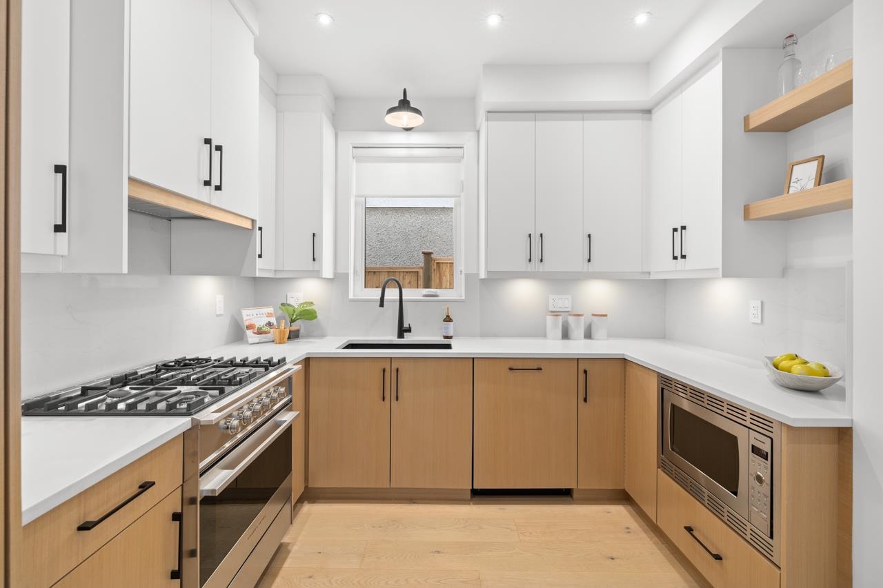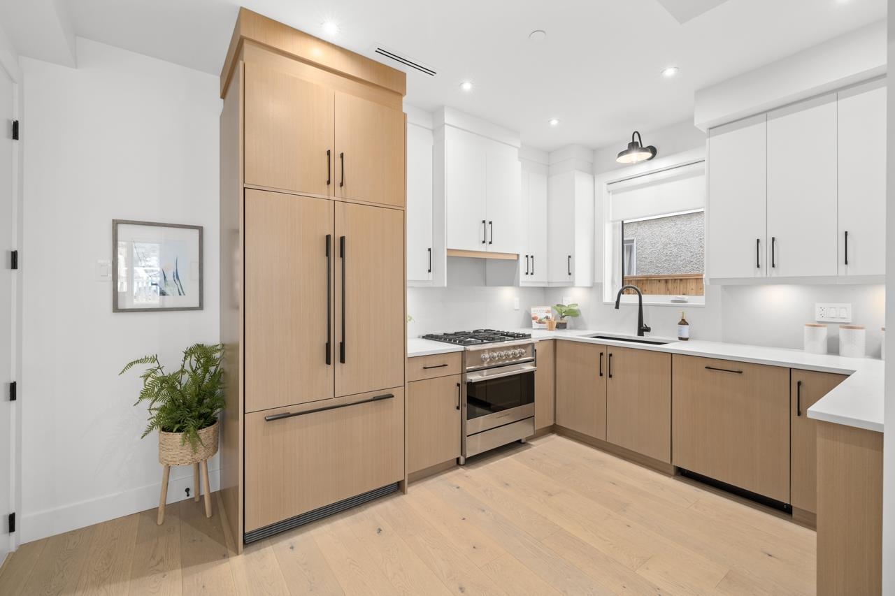 Introducing a gorgeous new 3 bed/3.5 bath ½ duplex by Lidher Homes. Located on a quiet tree lined street in the coveted Kensington-Cedar Cottage neighbourhood, the luxury finishes abound in this home. kitchen features Fisher Paykel appliances, eating area, and quartz countertops. The living room features lots of natural light and a fireplace with built-in cabinets. The primary bedroom offers a walk-in closet and ensuite. The open upper level can be utilized as a 3rd bedroom, rec room, office or gym. The A/C and radiant in-floor heat will keep you comfortable year-round. Enjoy the summer in the large west facing yard. Have peace of mind with the secure garage, security system and 2-5-10 Warranty.