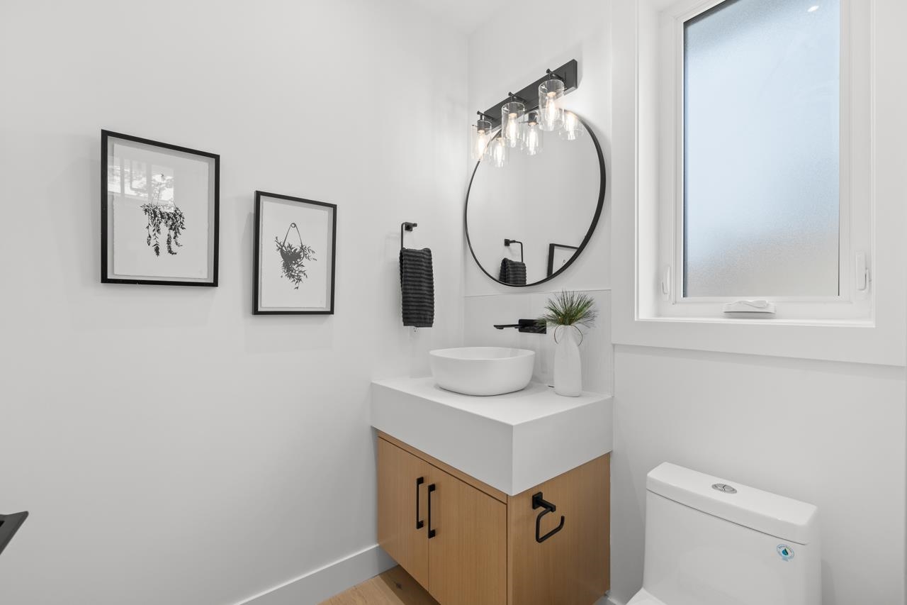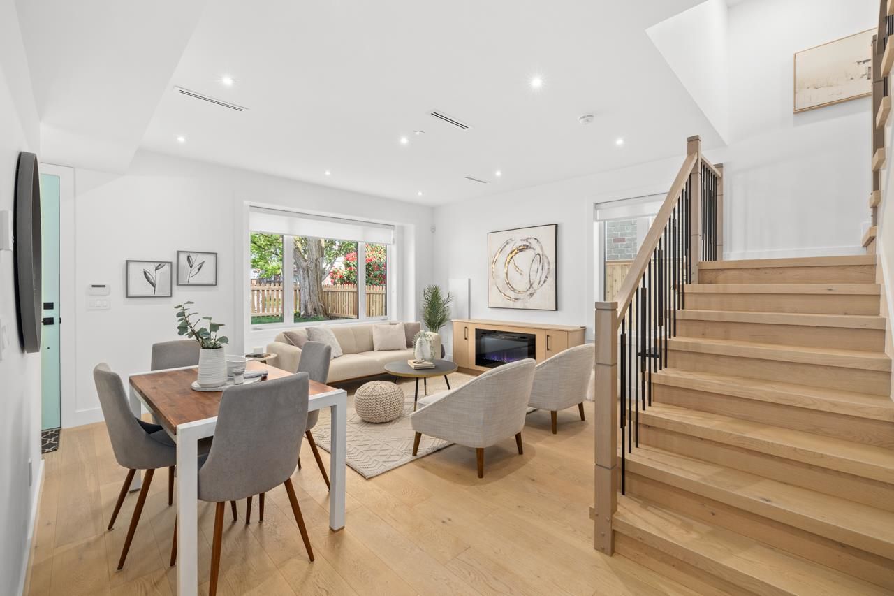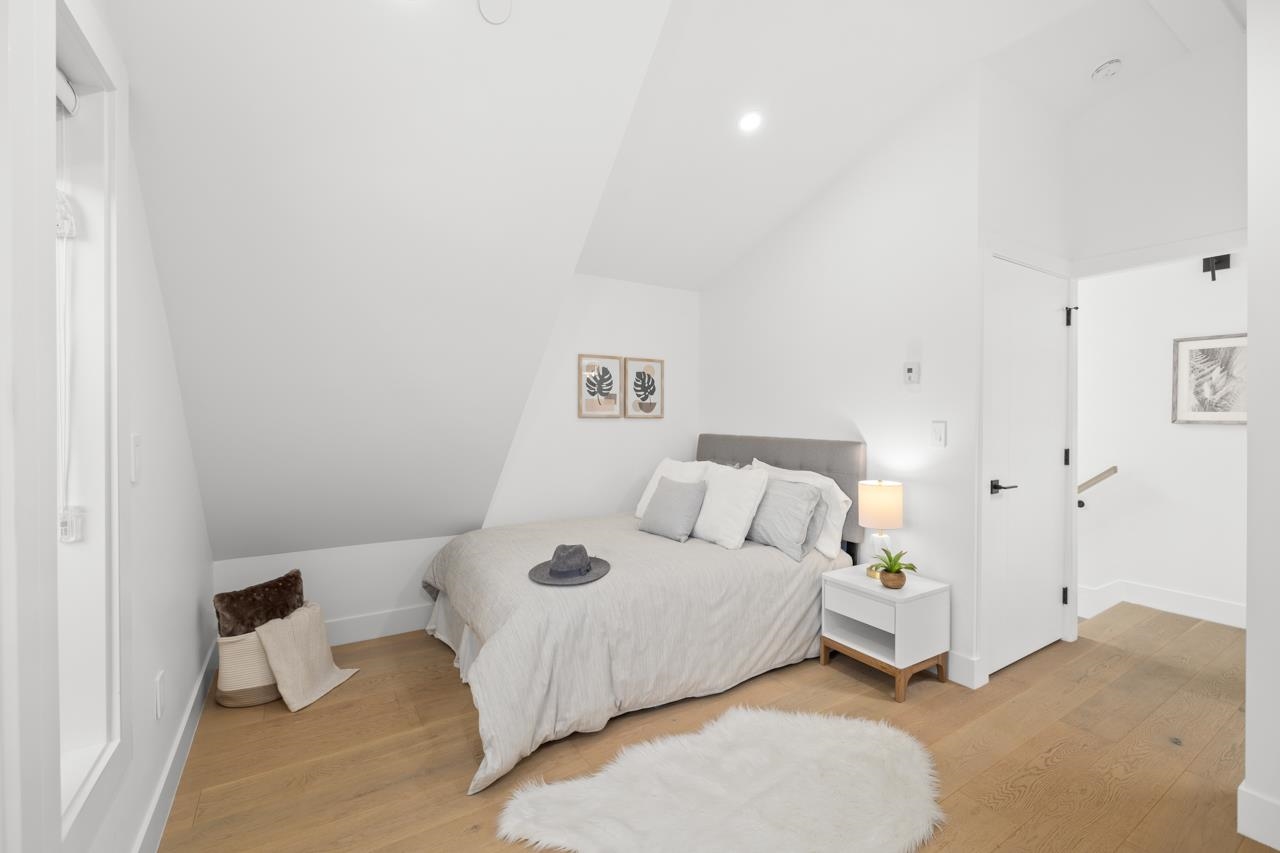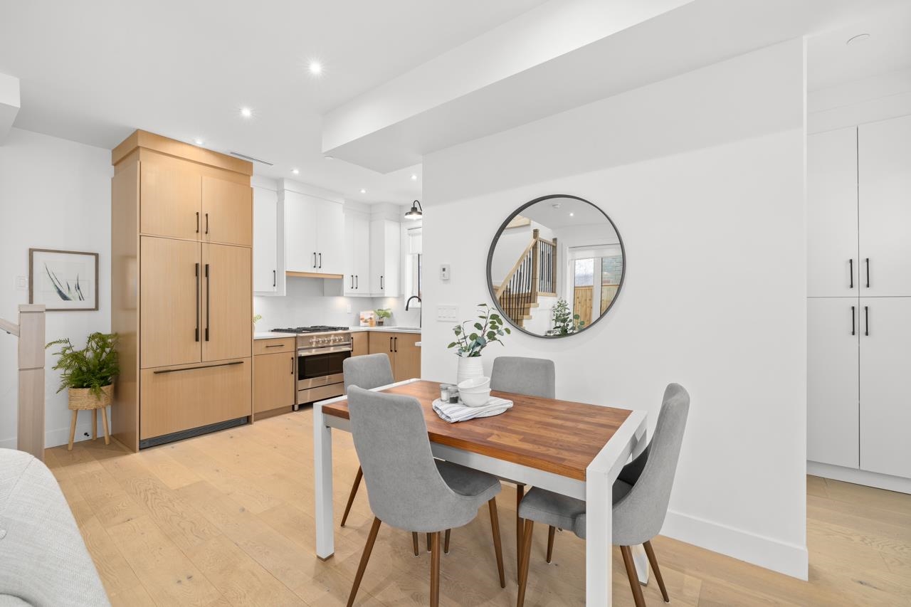 Introducing a gorgeous new 3 bed/3.5 bath ½ duplex by Lidher Homes. Located on a quiet tree lined street in the coveted Kensington-Cedar Cottage neighbourhood, the luxury finishes abound in this home. kitchen features Fisher Paykel appliances, eating area, and quartz countertops. The living room features lots of natural light and a fireplace with built-in cabinets. The primary bedroom offers a walk-in closet and ensuite. The open upper level can be utilized as a 3rd bedroom, rec room, office or gym. The A/C and radiant in-floor heat will keep you comfortable year-round. Enjoy the summer in the large west facing yard. Have peace of mind with the secure garage, security system and 2-5-10 Warranty.