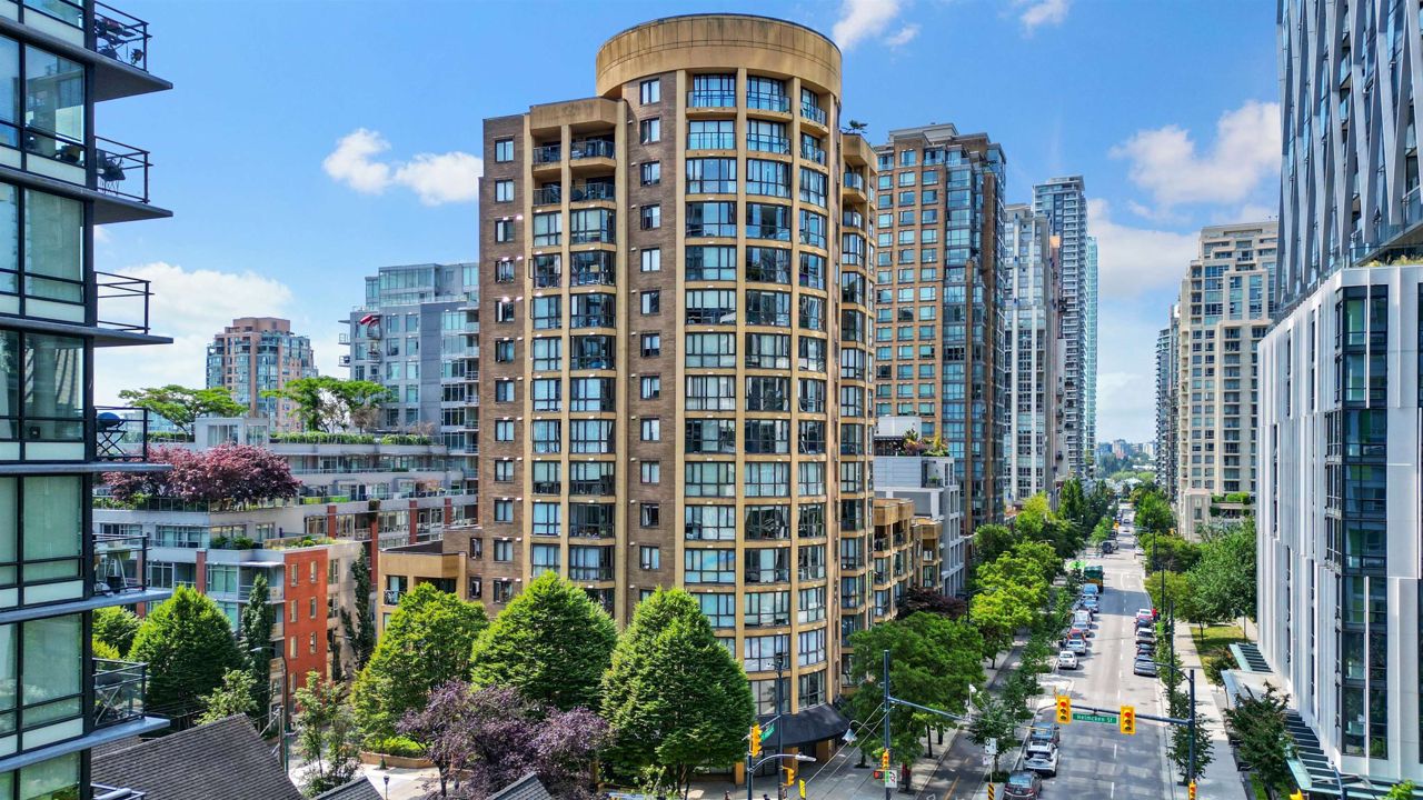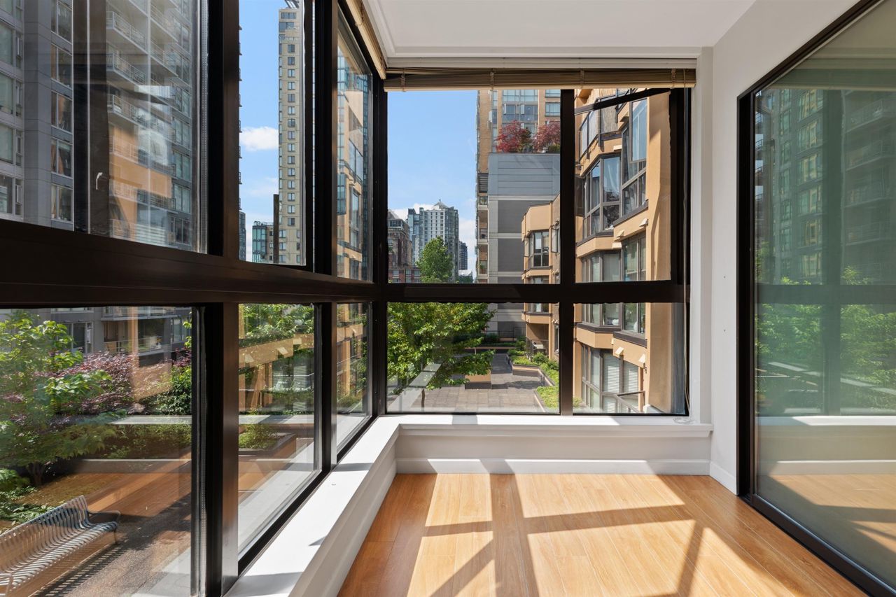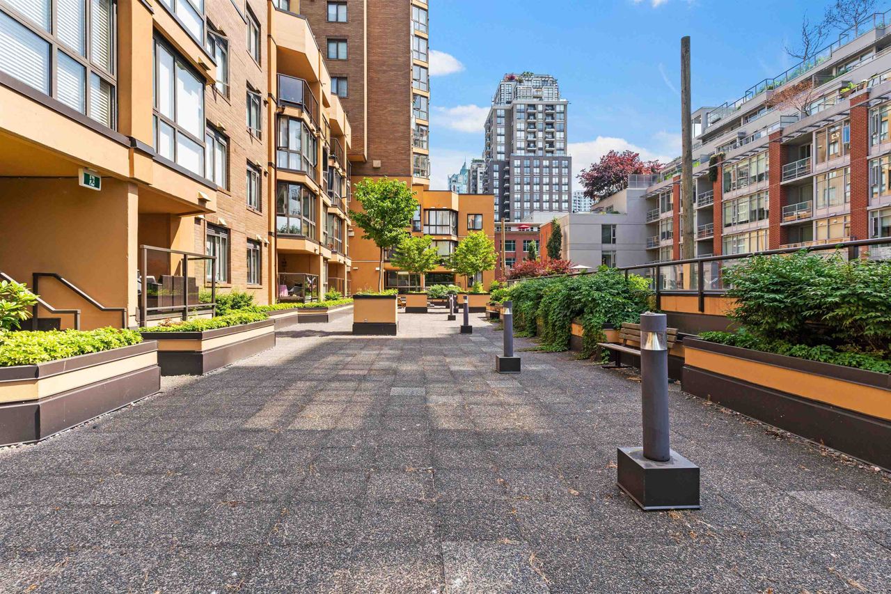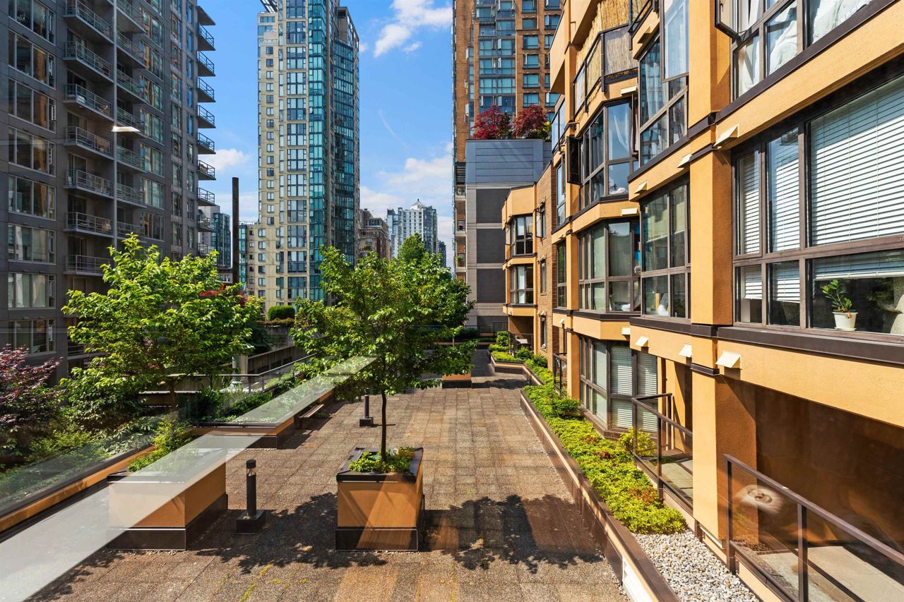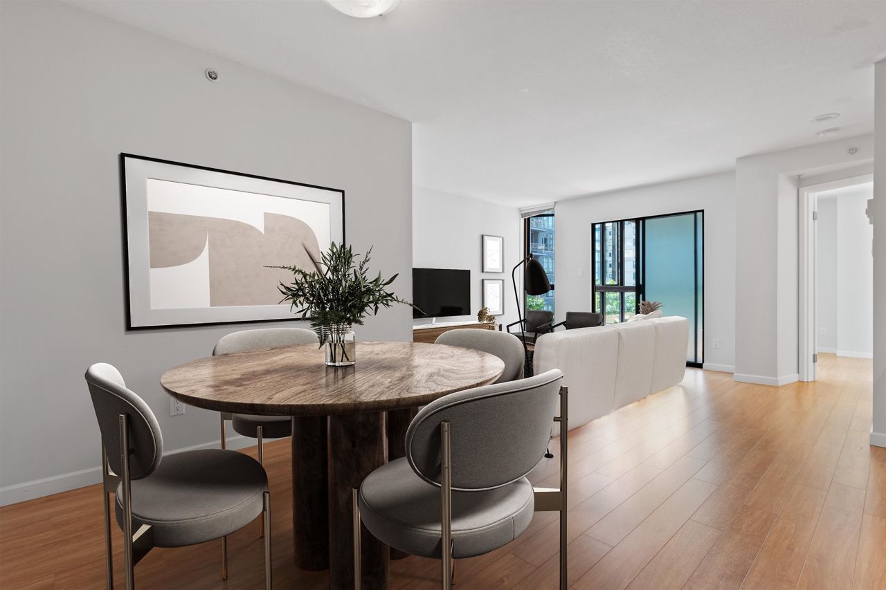 Rare CORNER UNIT in Robinson Tower, Central Yaletown! This 1 BED+DEN gem boasts 700 SF of space w/ courtyard views. The den is flooded w/ natural light, perfect for workspace/hobby room. Experience vibrant energy of Yaletown & retreat to your relaxing home. Expand by converting to open concept layout. Well-maintained condo features ensuite laundry, S/S dishwasher & updated laminate floors. Functional floor plan accommodates a large dining table & cozy sectional. Explore trendy dining, cafes, Skytrain, Emery Park, ChoicesMarket, Seawall & Marina just steps away. 1 Parking 1 Locker. Pets&Rentals allowed. Amenities: 2 Roof Decks, gym, sauna, games room. Updates: repiping, lobby, elevators & rainscreen. Don't miss out on this great home or investment! Great value in Yaletown for a 1 Bed condo