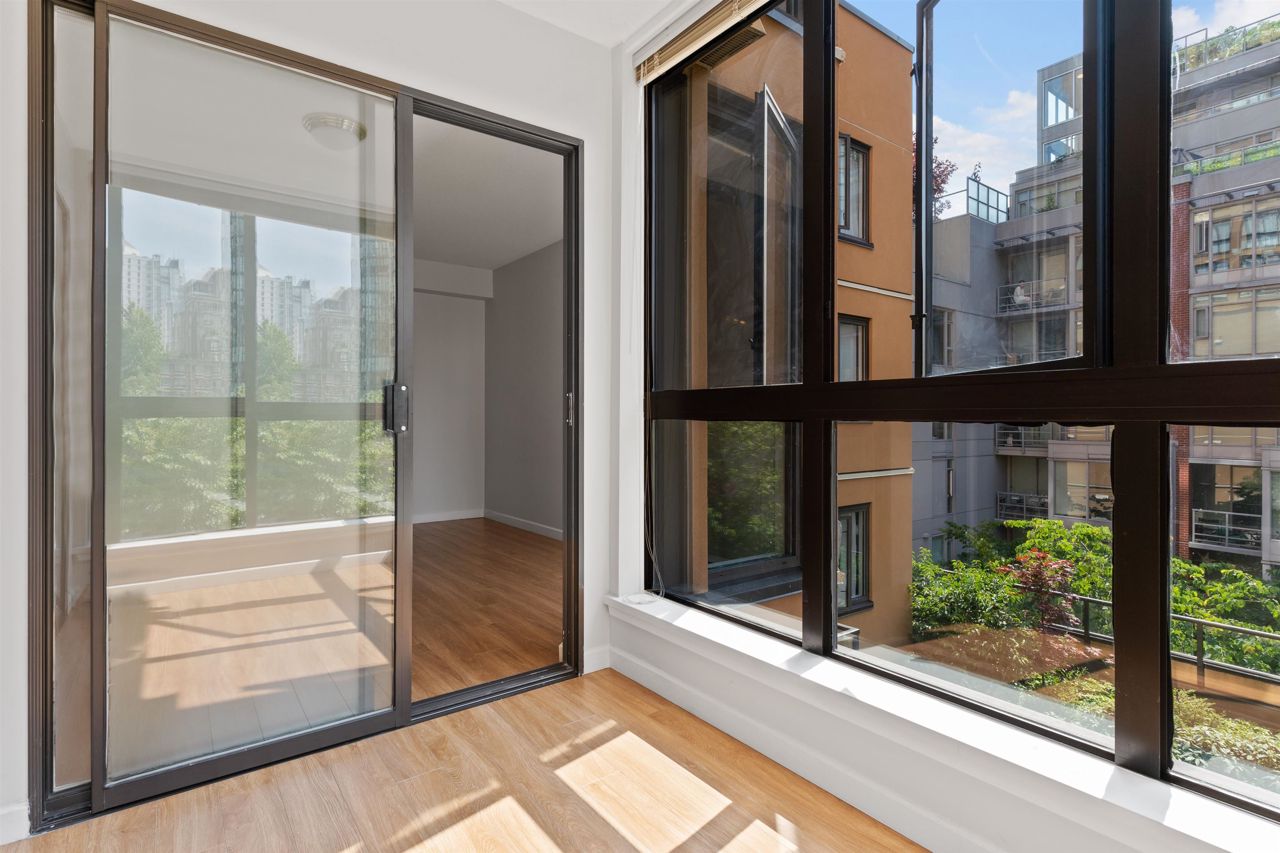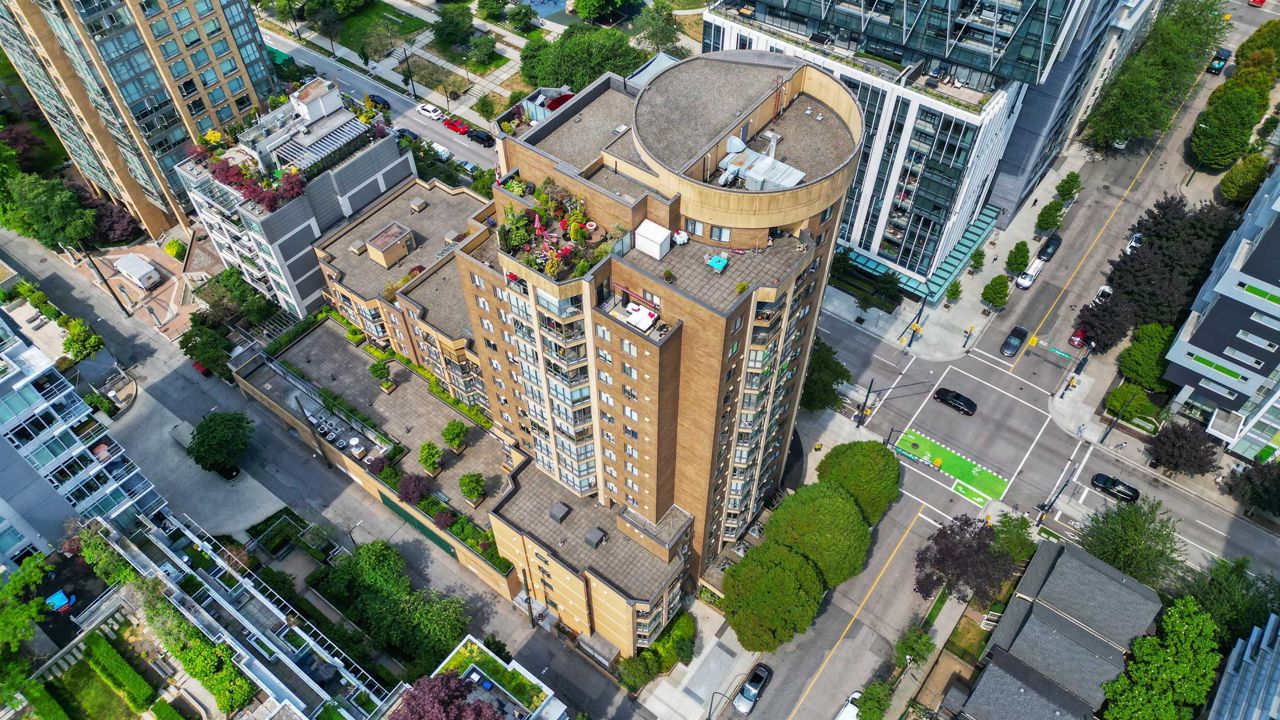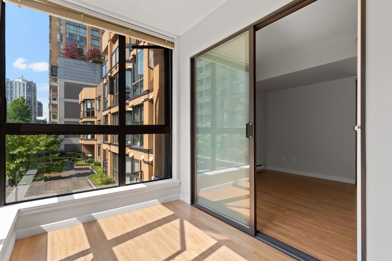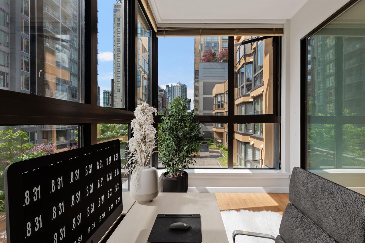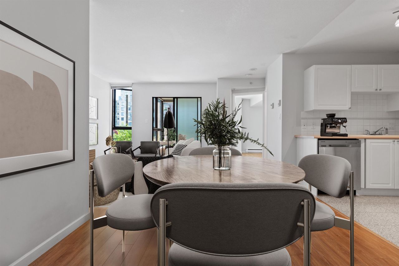 Rare CORNER UNIT in Robinson Tower, Central Yaletown! This 1 BED+DEN gem boasts 700 SF of space w/ courtyard views. The den is flooded w/ natural light, perfect for workspace/hobby room. Experience vibrant energy of Yaletown & retreat to your relaxing home. Expand by converting to open concept layout. Well-maintained condo features ensuite laundry, S/S dishwasher & updated laminate floors. Functional floor plan accommodates a large dining table & cozy sectional. Explore trendy dining, cafes, Skytrain, Emery Park, ChoicesMarket, Seawall & Marina just steps away. 1 Parking 1 Locker. Pets&Rentals allowed. Amenities: 2 Roof Decks, gym, sauna, games room. Updates: repiping, lobby, elevators & rainscreen. Don't miss out on this great home or investment! Great value in Yaletown for a 1 Bed condo