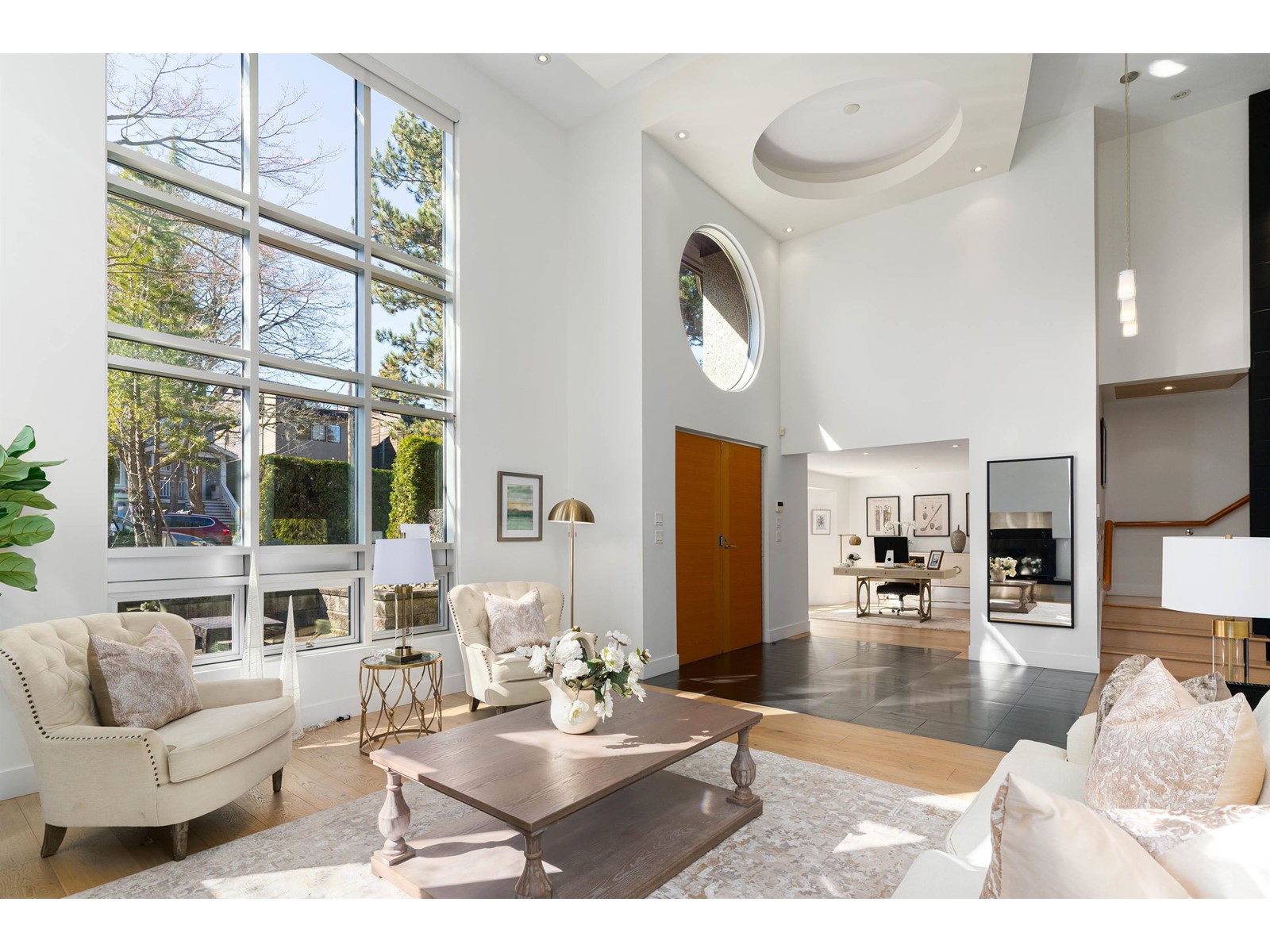Nestled on a LARGE lot with VIEW, this exquisite detached home offers a remarkable living experience, boasting 5113sqft living space of highest level of architecturally and interior design. Be greeted by the soothing sound of a charming water fountain at the entrance. Expansive windows throughout the property not only flood the interior with light but also frame picturesque views of the beautiful yard. Every floor with LARGE bedroom and gathering rooms, top floor is the master suite with stunning view of the city, mountains & water from the private but inviting master bedroom deck. (id:22211)