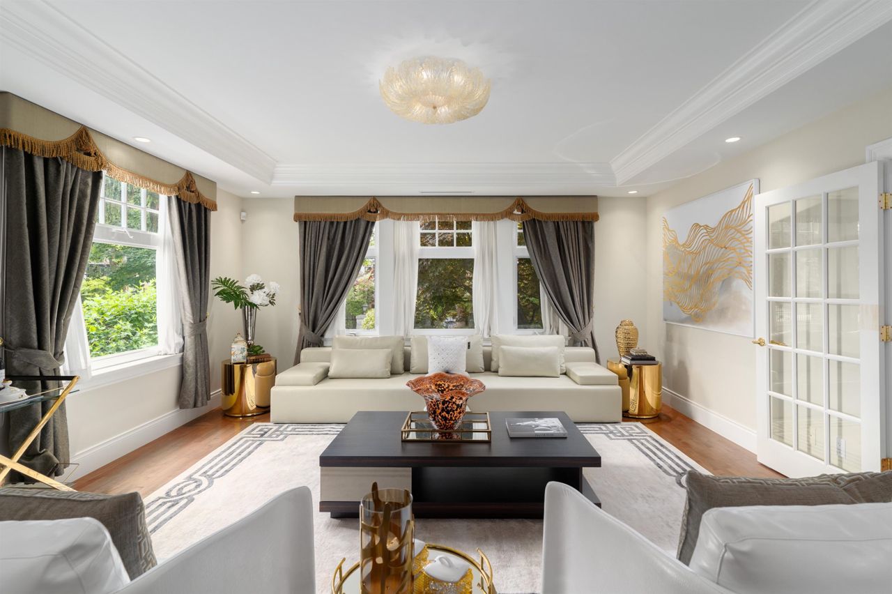 Rebuilt from the studs in 2001, this 6,123sf Georgian Mansion sits on a massive 120x140=16,800sf RS-5 property at the corner of picturesque Connaught Dr @ w.34th in prestigious Shaughnessy. Main floor features formal living & dining room divided by a double sided fireplace, a large library/office, gourmet kitchen & family room in the back, plus an enclosed solarium ideal for hosting tea parties overlooking the lush green w/ water feature in your own yard. 3 fully ensuited bdrms on the 2nd floor plus a fully developed attic as a guest bdrm or art studio. 2 more bdrms + a rec rm in the lower level. Beautifully landscaped gardens w/built in O/D BBQ kitchen in a fenced, gated private setting. Fully equipped w/AC, HRV and burglar proof windows. Short drive to top schools, YVR & Downtown.