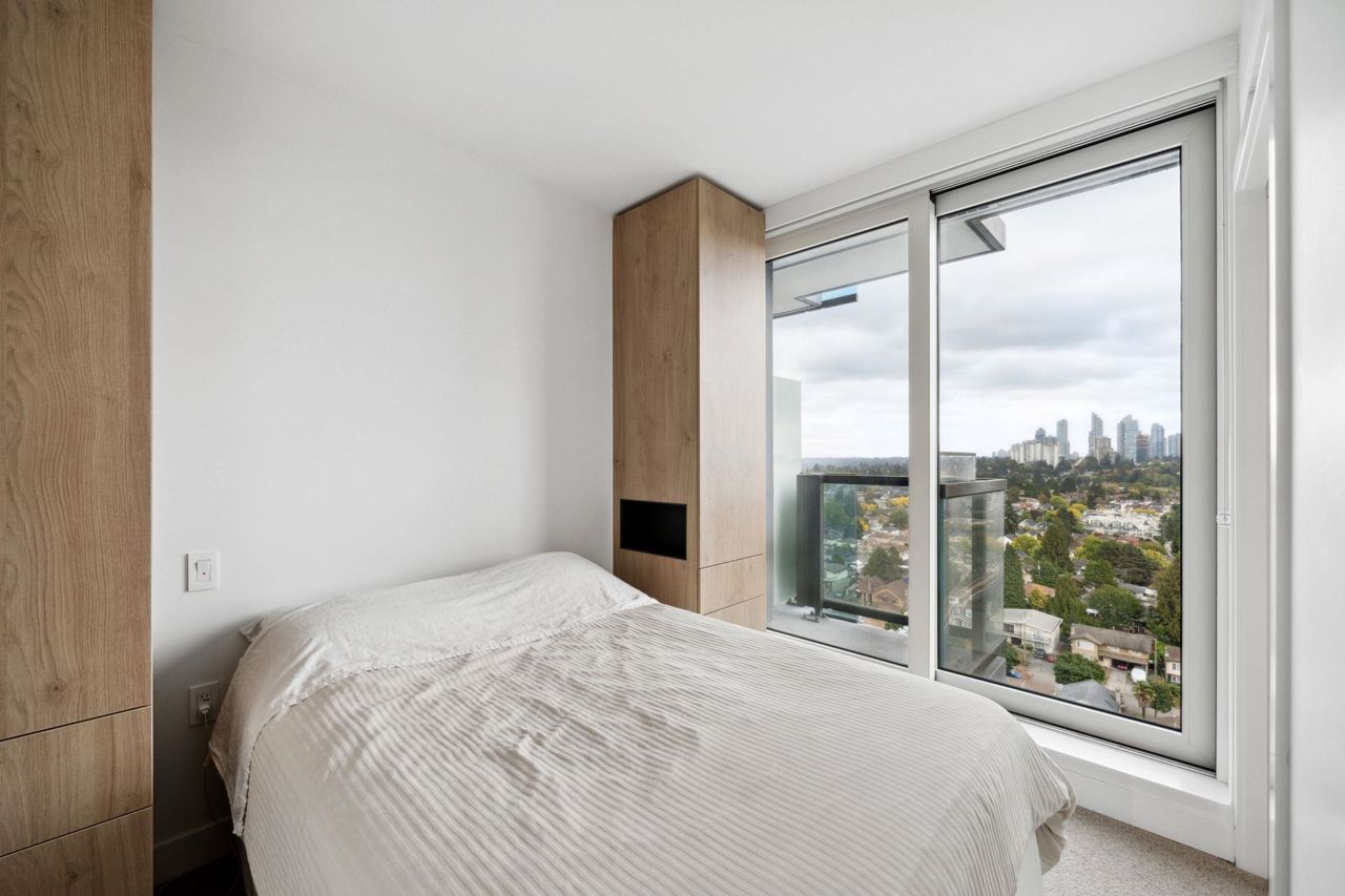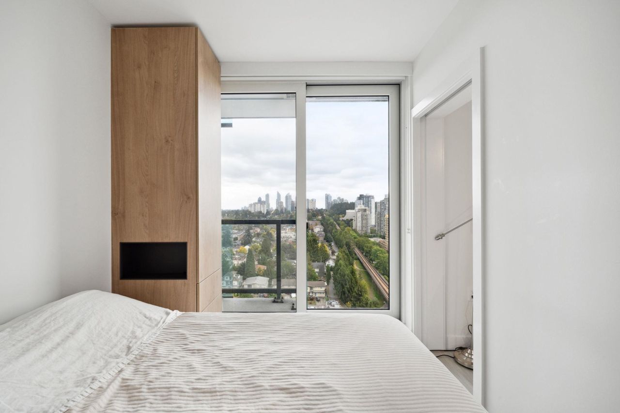 Welcome to Joyce by Westbank! This 2 year old 1 Bed + DEN/1 Bath (comes with locker) Air-Conditioned Suite offers amazing mountain and city view. Open-concept kitchen with integrated appliances, a gas cooktop, quartz countertops, and laminate flooring. Rooftop (30th floor) amenities include a gym, recreation/dining room, rooftop garden + playground and bbq area, study rooms, music room. Conveniently located near shopping, dining, bus station and Joyce station. Pets and rentals are allowed. Because city views, balcony access from all rooms. Central location close to downtown, Vancouver and Burnaby! Open house Oct 8th (Sun) 2-4pm. Tenanted property - clean and tidy (Showing once a week on the weekend only). Call to find out more today!