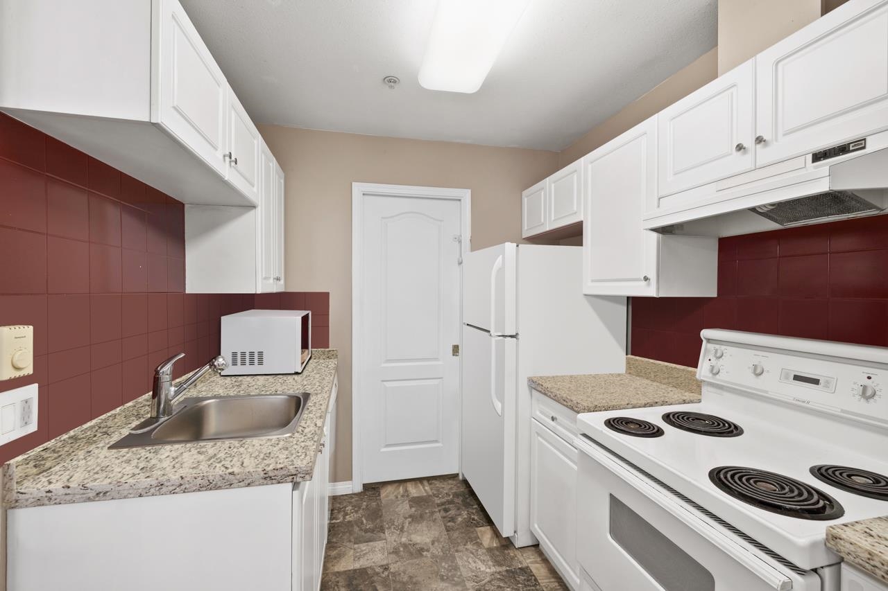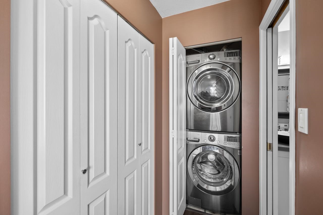 Rarely available, this top-floor one-bedroom and den unit in South Fraser offers a comfortable space with everything you need, perfect for someone working from home. Enjoy a soaker tub in the beautiful bathroom, a FULL SIZE LG washer and dryer with steam, an extra large pantry, a gas fireplace, a large storage locker, and one parking space. Centrally located, it’s within walking distance to all amenities and has excellent transit links. Just a 5-minute drive to Langara College and 6 minutes to Langara Golf Course. An incredible value for top floor living with a Vancouver address. 1 parking & 1 locker.