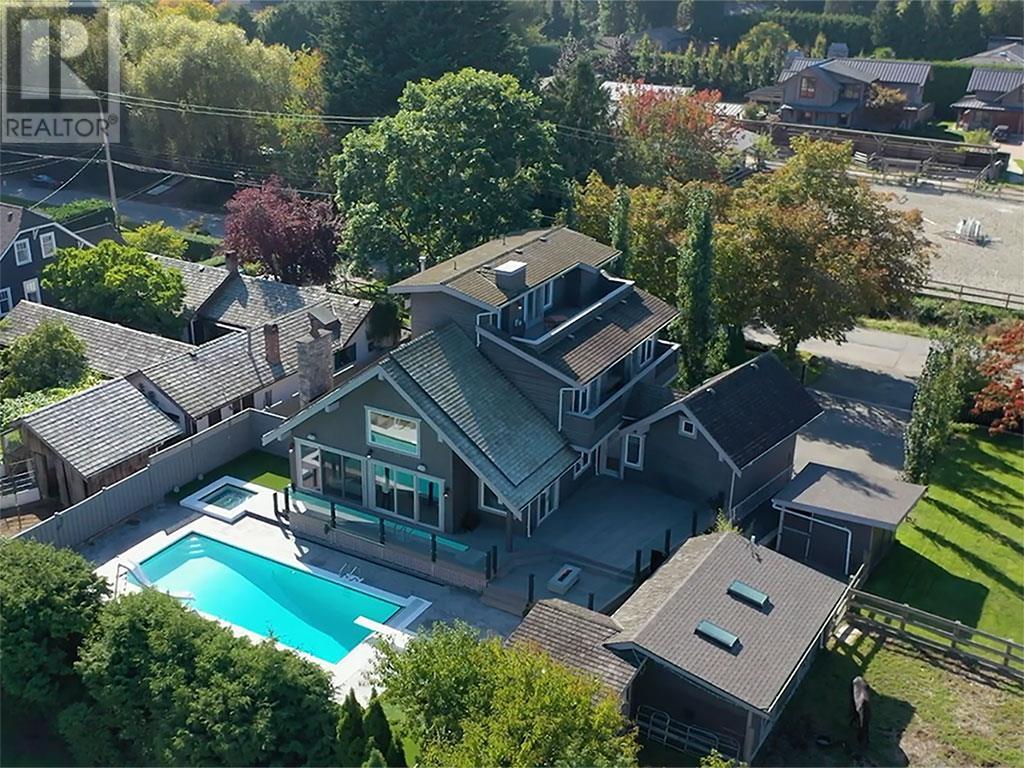 Beautifully renovated Southlands home perched on a corner lot with outdoor pool and hot tub. This gorgeous home has 3 levels of living space boasting a main floor with soaring exposed beam vaulted ceilings over living areas that open to a sunny private backyard - perfect for poolside entertaining and family fun! 4 bedrooms on the upper floors - 3 bedrooms on 2nd floor with ensuite bathrooms (2 with decks) and the entire top floor featuring a master suite with large spa, fireplace and relaxing deck with views of the mountains and surrounding countryside. Extras include poolhouse for home gym, office or teenager hangout, finished playroom attic space for the little ones, and huge outdoor yard area previously used as a paddock for the horses! Call to book your private viewing. (id:22211)