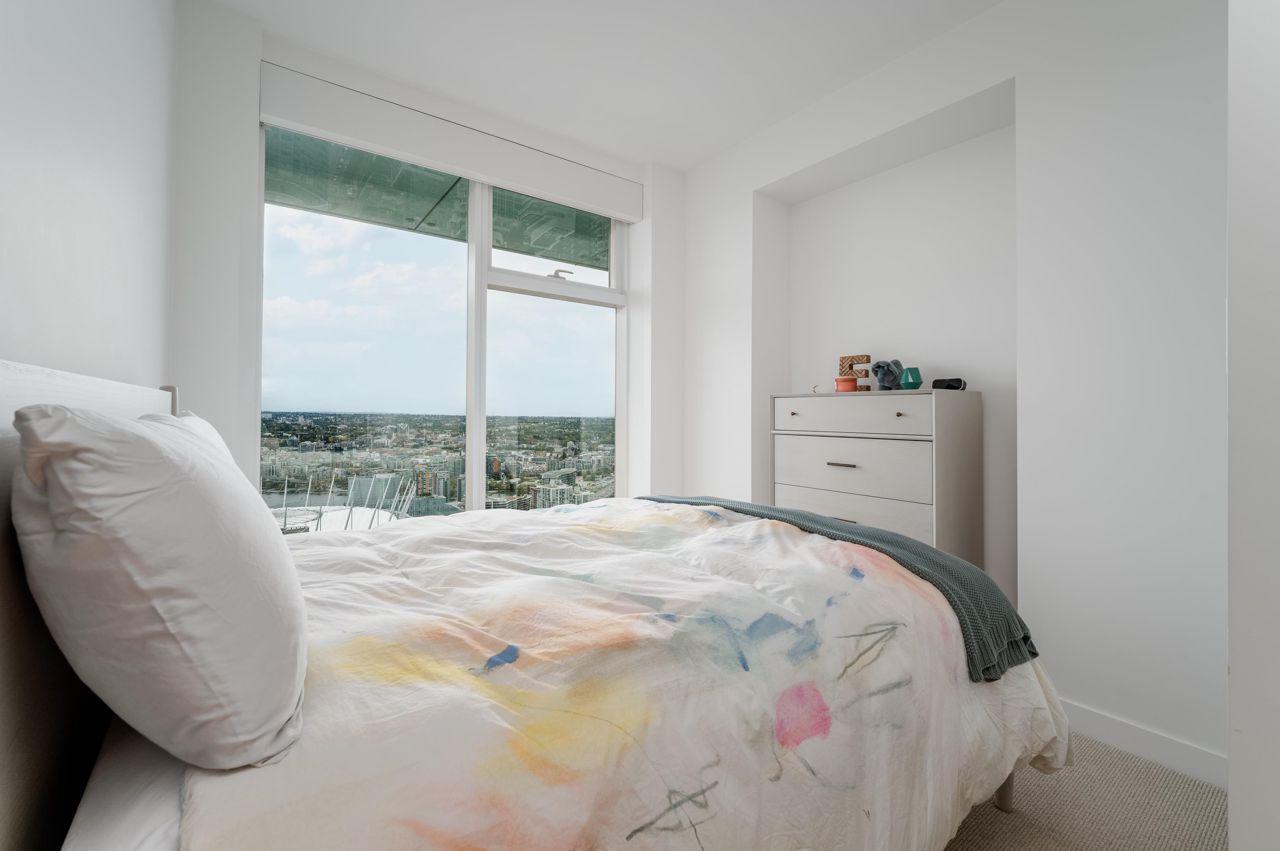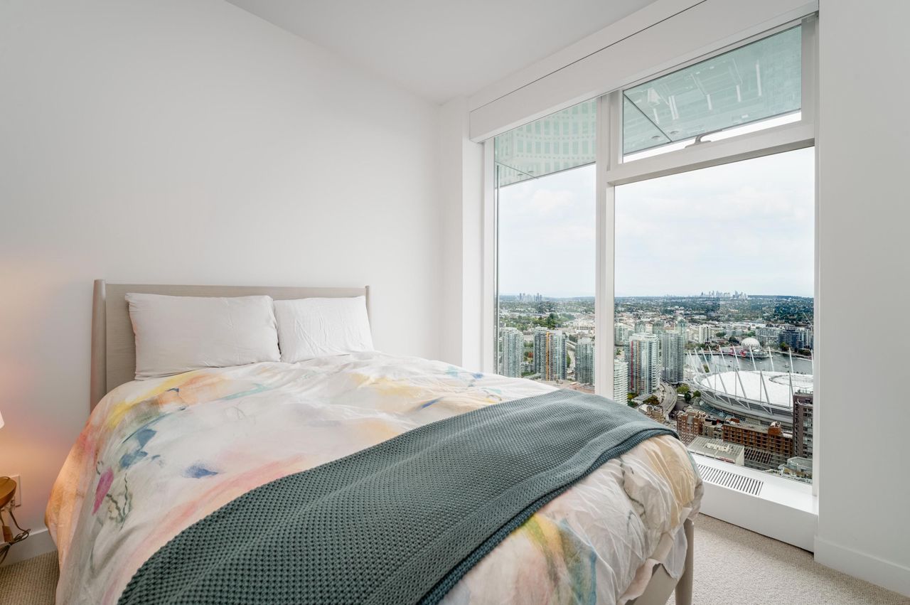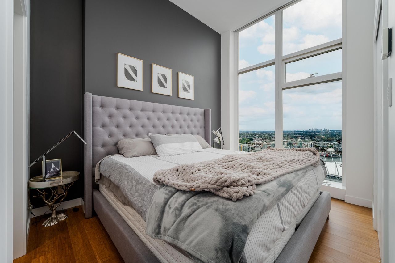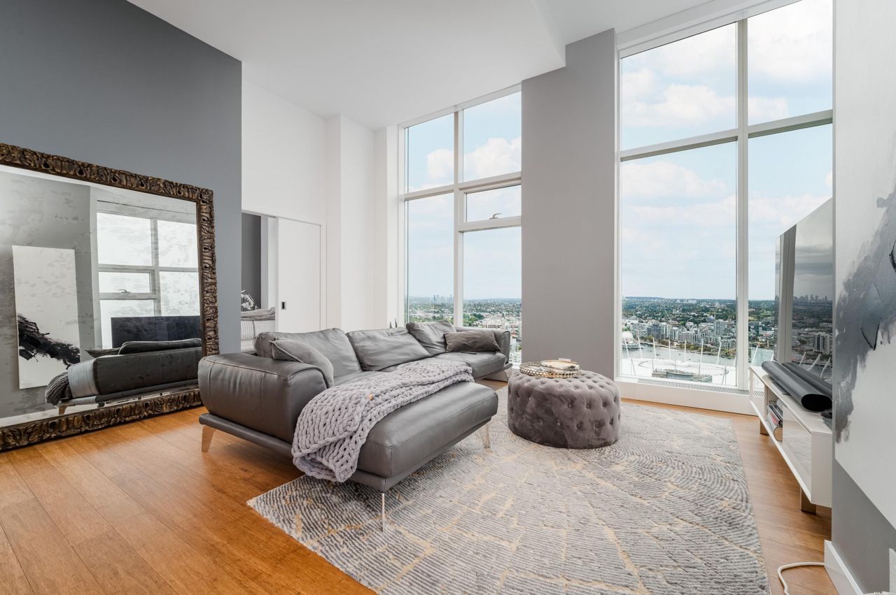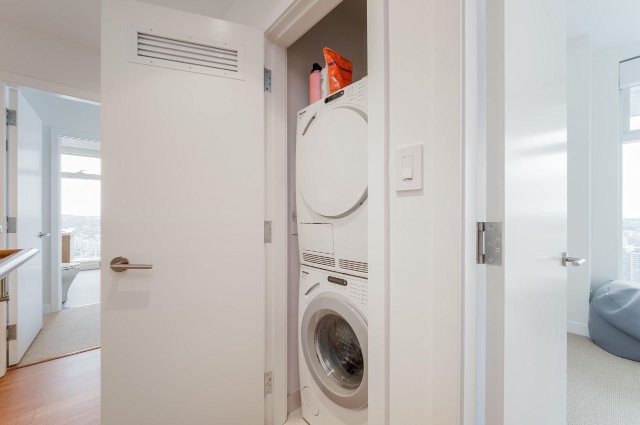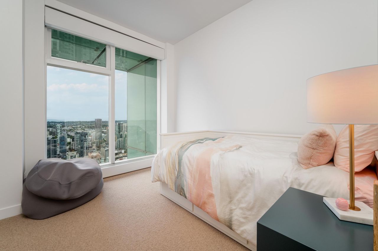 PENTHOUSE NINE at Telus Gardens - breathtaking views from this 4 bed, den + flex space over 3 levels & 270 degree view. Floor to ceiling windows, custom kitchen by Kitchen Living w/ charcoal designer cabinetry, soft close cabinets, Miele appliances incl espresso machine, wine fridge & polished Icestone slab countertop w/ breakfast bar seating. Entrance on the lower level where you will find the foyer, guest bathroom & storage. Main level incl 1 Bed, flex room, Spacious living & dining areas. Top floor has 3 Bed incl Master bedroom w/ sizable walk-in closet & gorgeous ensuite. 2 Side by Side Parking Stalls. AC. The 5 star amenities incl: outdoor pool, jacuzzi, sauna, steam room, 24/7 concierge, fitness center, yoga studio, kids play area & dog park. Sneak Peek Tues Mar 26th 1:45-2pm