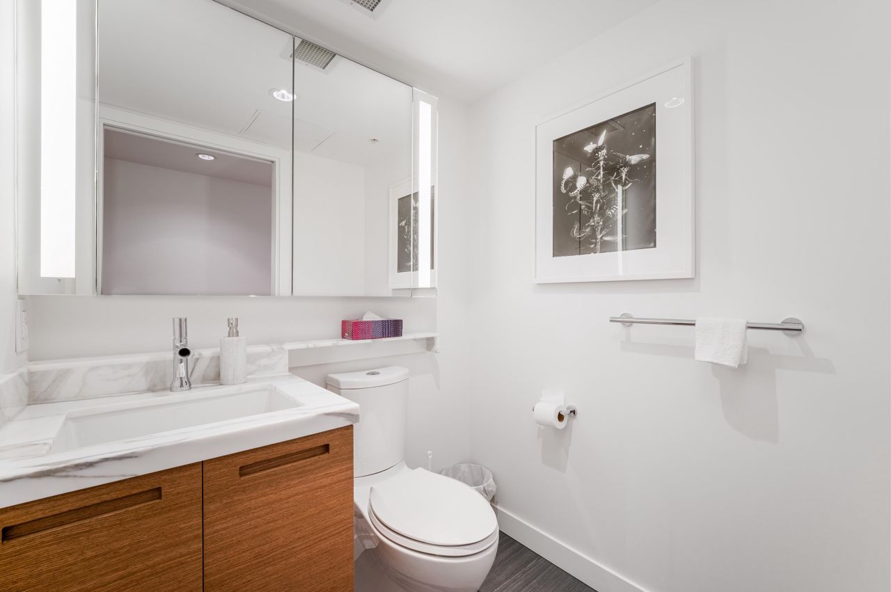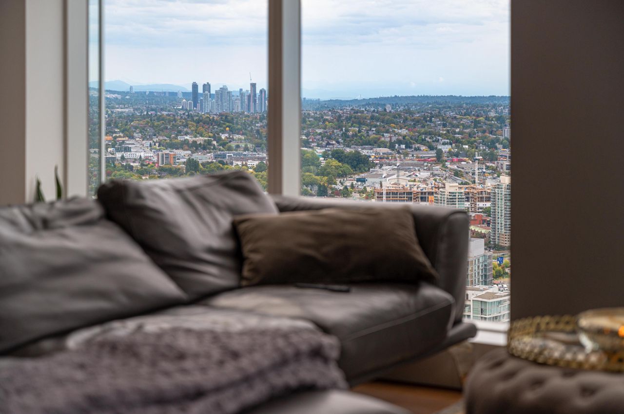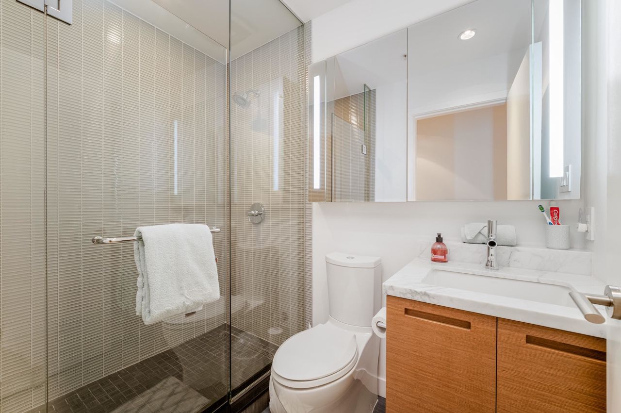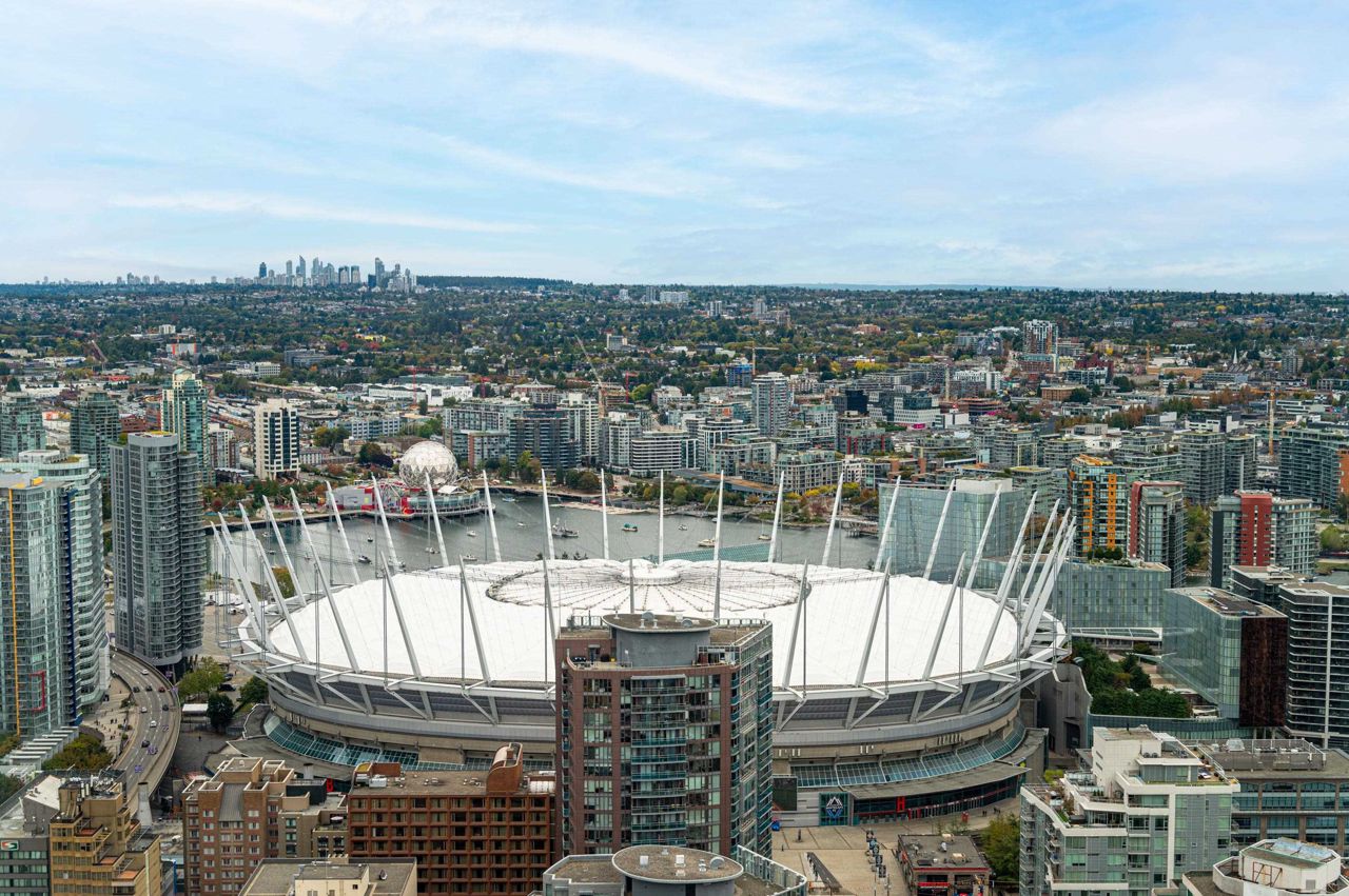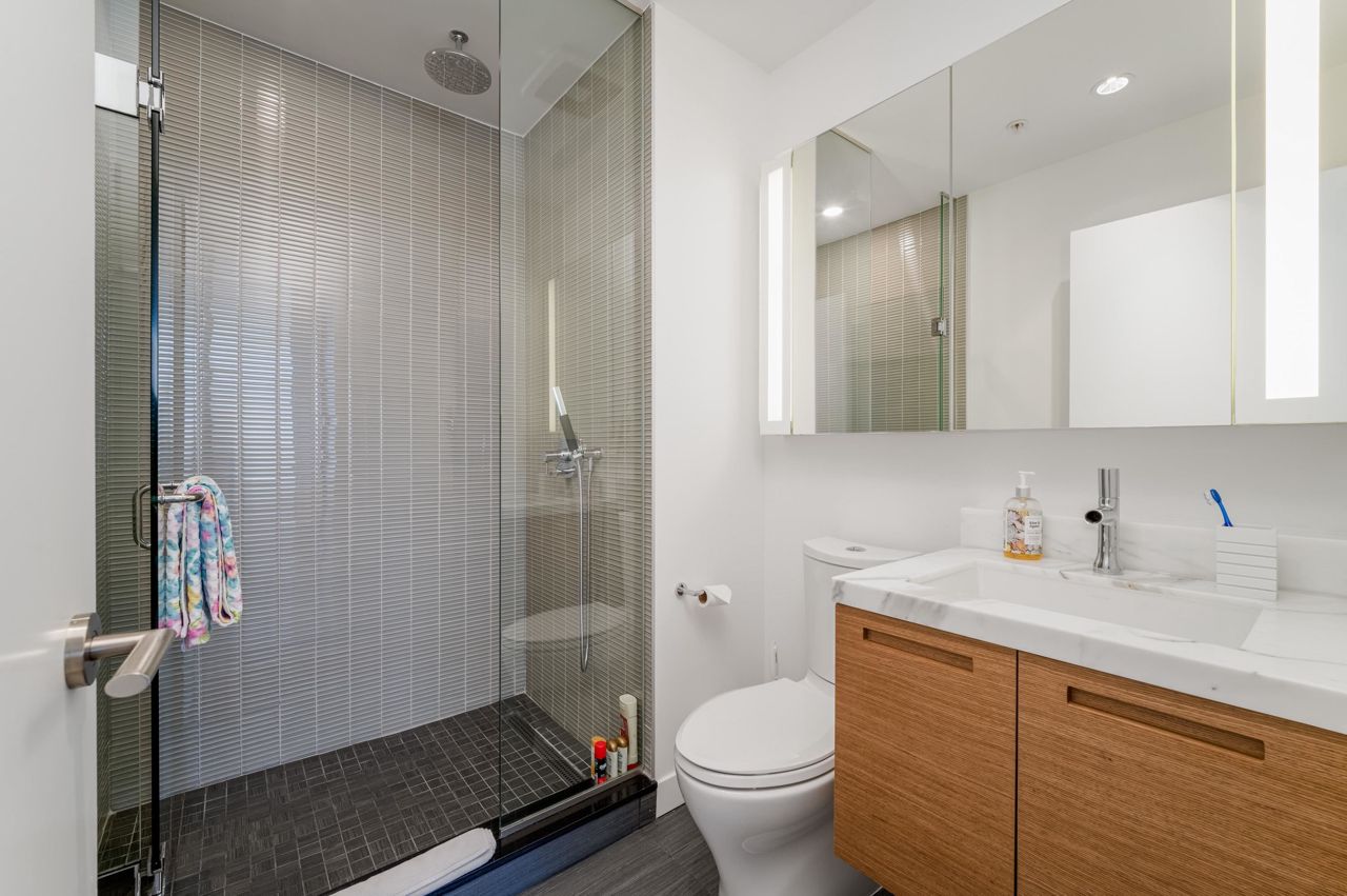 PENTHOUSE NINE at Telus Gardens - breathtaking views from this 4 bed, den + flex space over 3 levels & 270 degree view. Floor to ceiling windows, custom kitchen by Kitchen Living w/ charcoal designer cabinetry, soft close cabinets, Miele appliances incl espresso machine, wine fridge & polished Icestone slab countertop w/ breakfast bar seating. Entrance on the lower level where you will find the foyer, guest bathroom & storage. Main level incl 1 Bed, flex room, Spacious living & dining areas. Top floor has 3 Bed incl Master bedroom w/ sizable walk-in closet & gorgeous ensuite. 2 Side by Side Parking Stalls. AC. The 5 star amenities incl: outdoor pool, jacuzzi, sauna, steam room, 24/7 concierge, fitness center, yoga studio, kids play area & dog park. Sneak Peek Tues Mar 26th 1:45-2pm