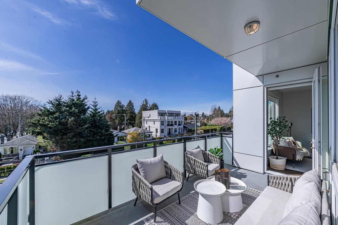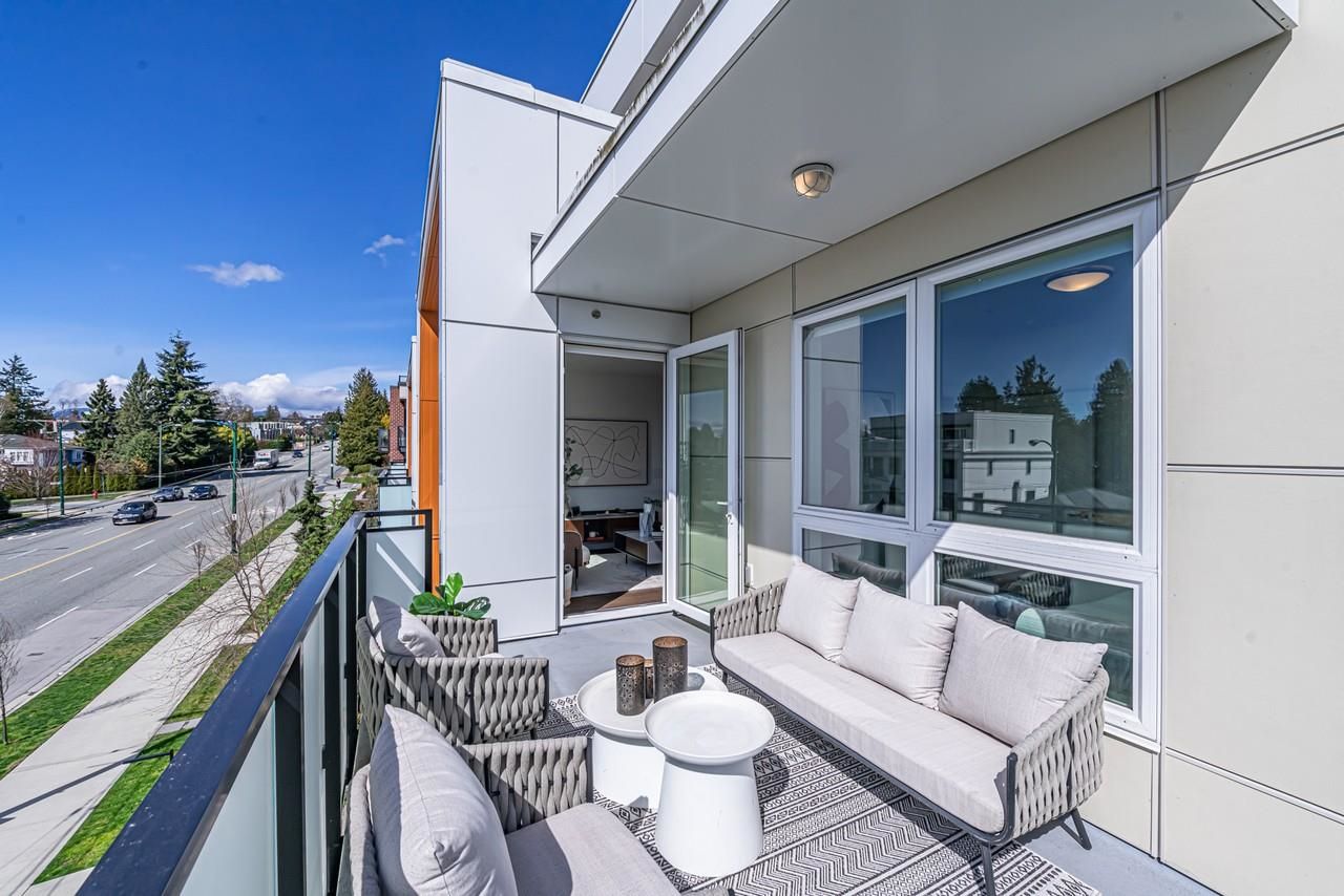 Welcome to the perfect urban lifestyle in the heart of Vancouver's historic Marpole community! This 2-year-old, move-in ready condo boasts 2 bedrooms and 2 bathrooms with an impressive 906 sqf of living space. Enjoy the convenience of a prime location on Granville Street, surrounded by beautiful parks and natural forests, as well as some of the city's top-rated schools. Step outside your door and find yourself just steps away from Safeway, charming streets filled with upscale boutiques, designer shops, lauded restaurants, and cafes. The condo features high ceilings, walk-in closets, and Bosch appliances, with air conditioning for year-round comfort. Whether you're a student at UBC, working downtown, or commuting to Richmond, the location is ideal for all.