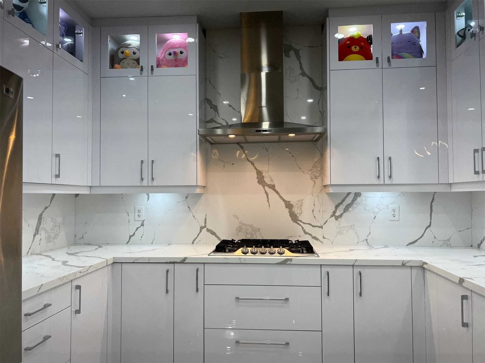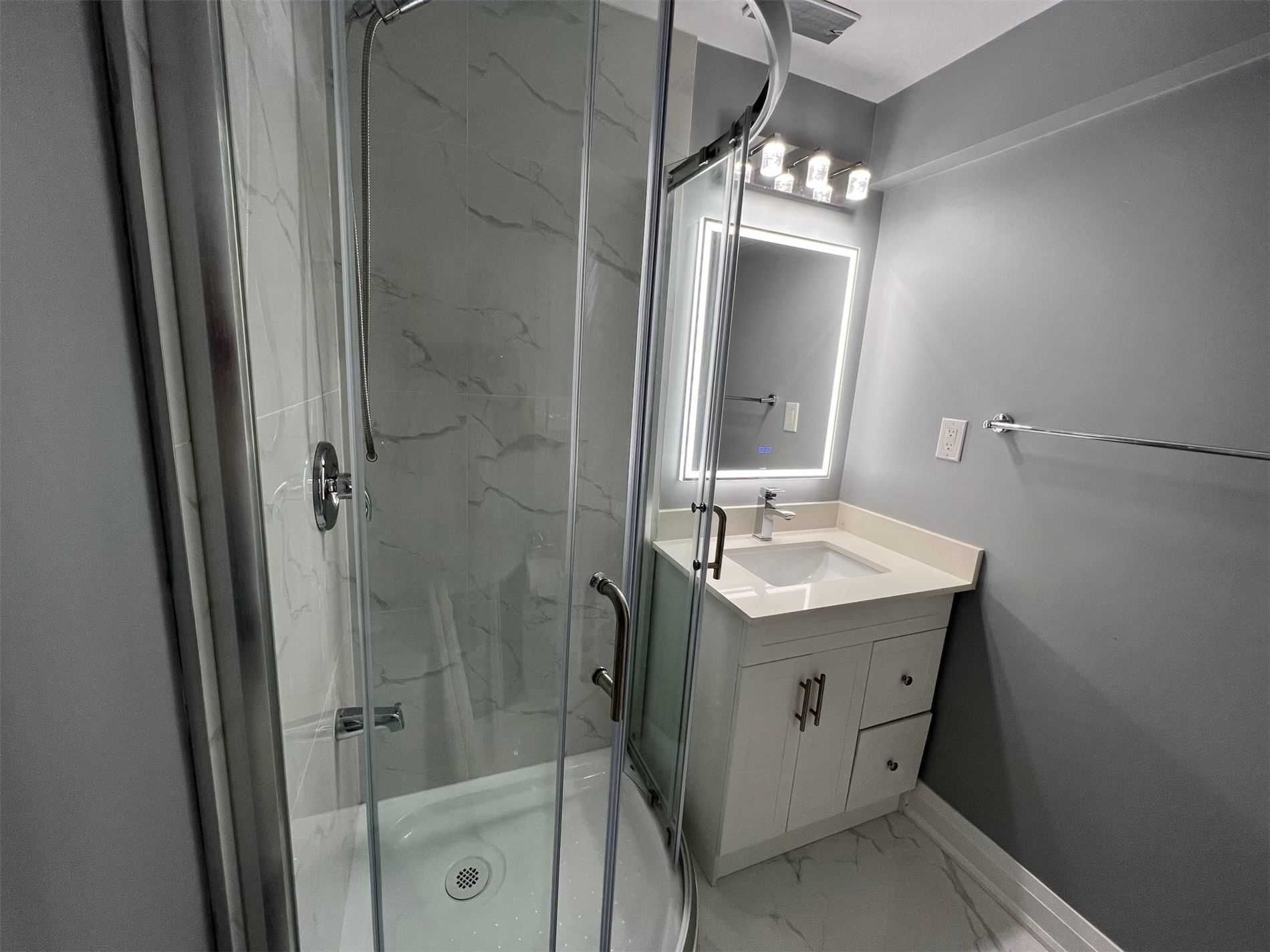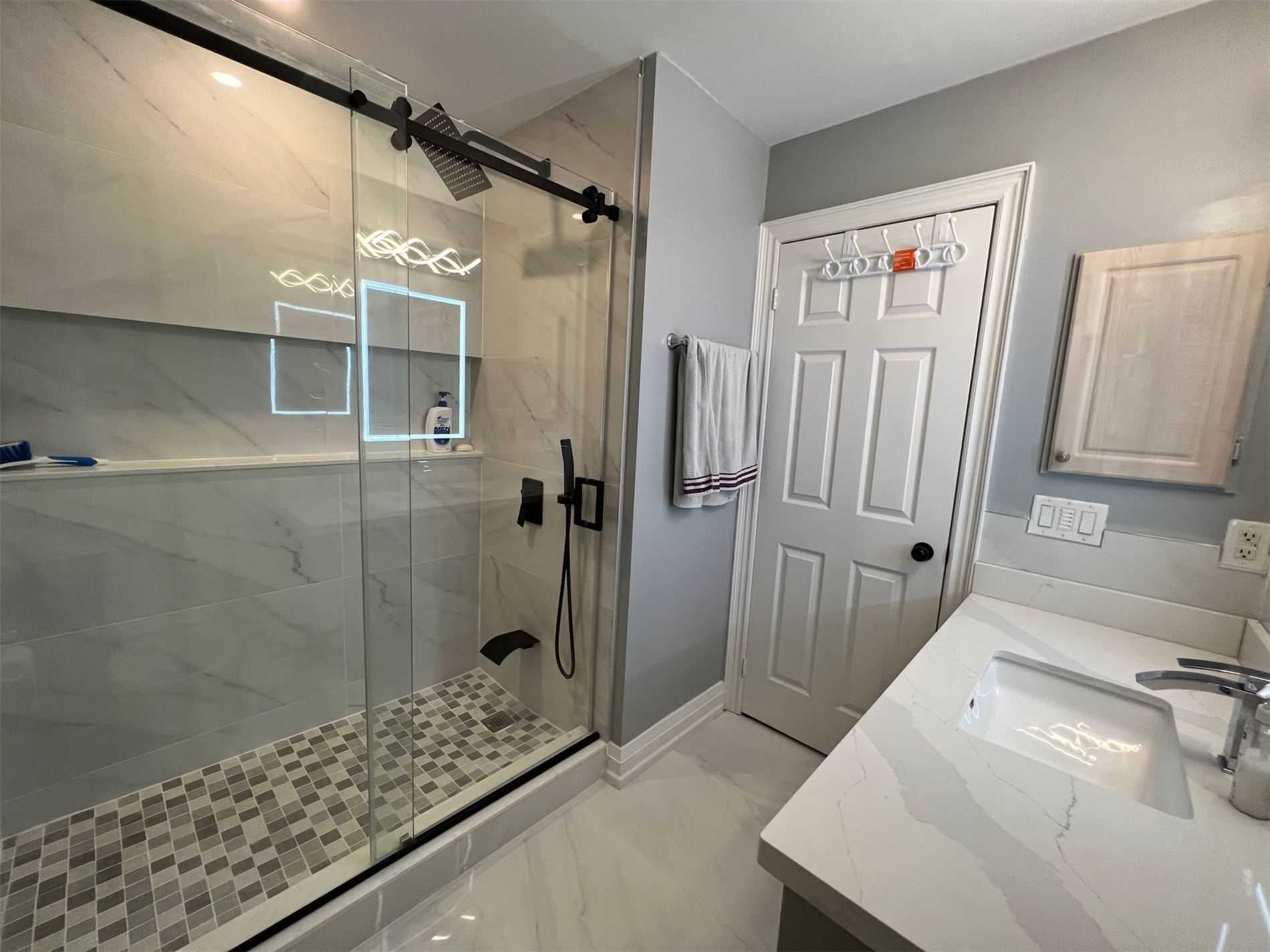 Porcelain Floor Quartz Counter Backsplash
