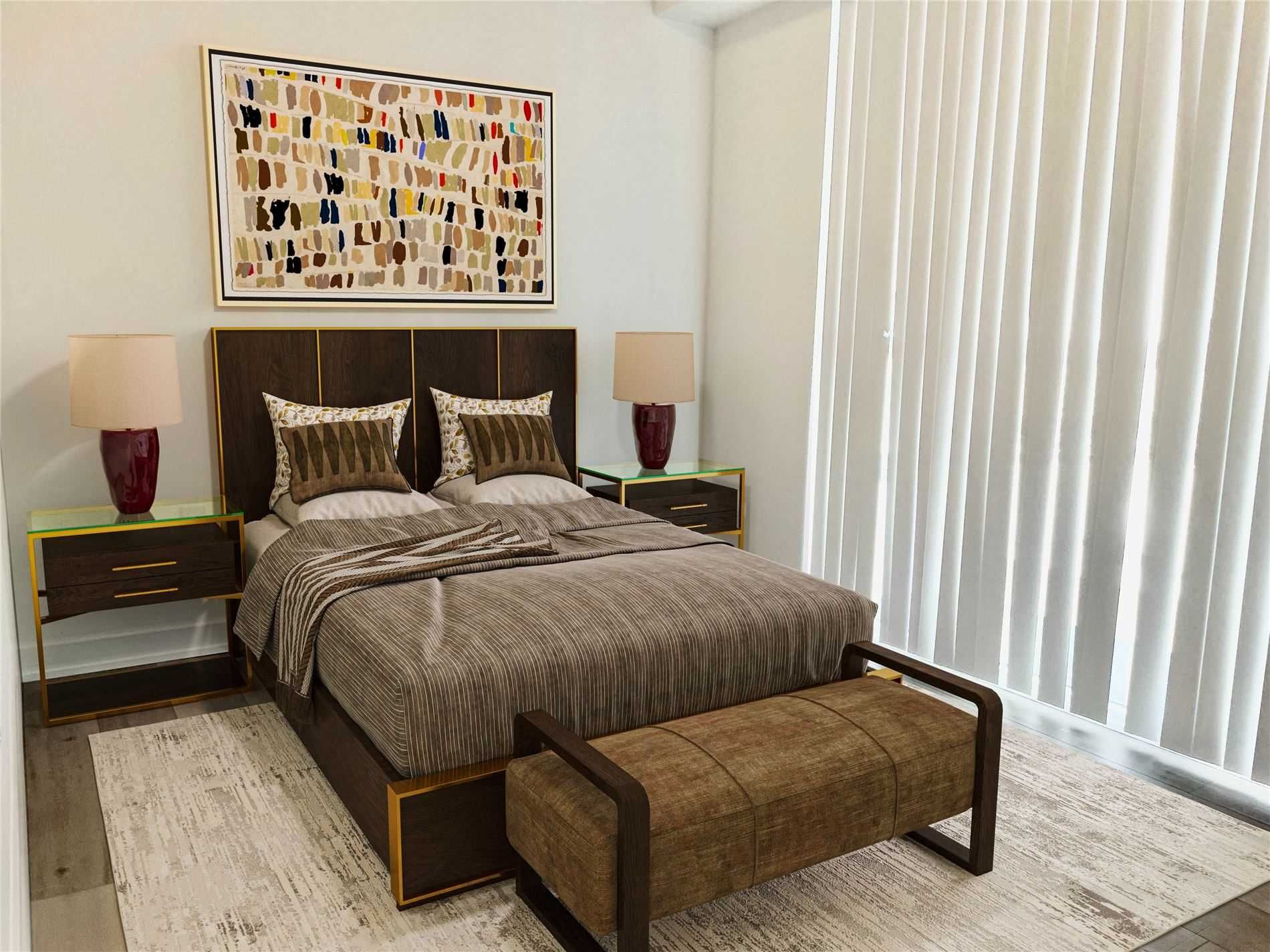 Welcome To Your New 2 Bdrm 2 Bath Condo Located In The Highly Sought After Vaughan Metropolitan Centre In Toronto's York Region. This Beautiful Condo, Built By Renowned Developer Menkes, Offers Modern Living W/ An Emphasis On Convenience & Luxury. Step Inside Your New Home & Be Greeted By The Spacious Open-Concept Living & Dining Area, Perfect For Entertaining Guests Or Enjoying A Quiet Night In. The Unit Boasts Large Windows That Fill The Space W/ Natural Light, Giving It A Bright & Airy Feel. The 739 Sq.Ft Layout Offers Ample Space For Comfortable Living, W/ The Primary Bdrm Offering A 4-Piece Ensuite & A Walk-In Closet, Spacious & Airy 2nd Bdrm Accompanied By A Full Common Bath For Added Comfort & Convenience. The Kitchen Is A Chef's Dream, Complete W/ Sleek S/S Appliances, Beautiful Quartz Countertops, & Plenty Of Storage Space. The Unit Also Features Modern Finishes Throughout, Including Hardwood Fls, Ceramic Tiles, & Contemporary Lighting Fixtures.One Of The Most Outstanding Features Of This Condo Is Its Location. Situated Within A 5-Minute Walk From The Subway, You Can Easily Access All That Toronto Has To Offer. The Building Is Also Conveniently Located Close To Major Highways.
