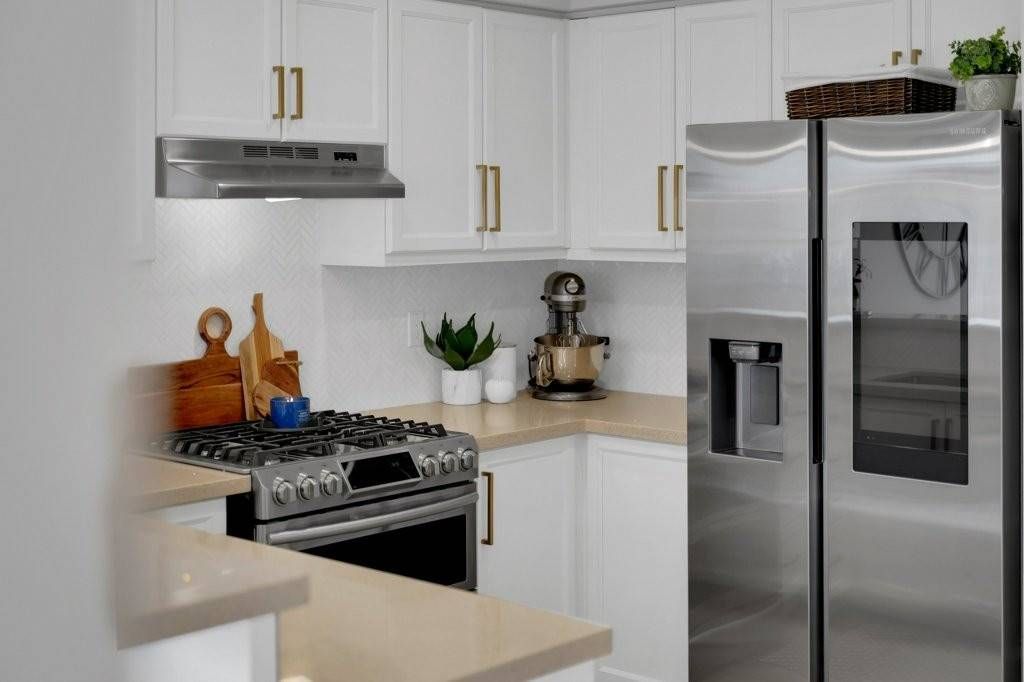Hardwood Floor Stainless Steel Appl Quartz Counter