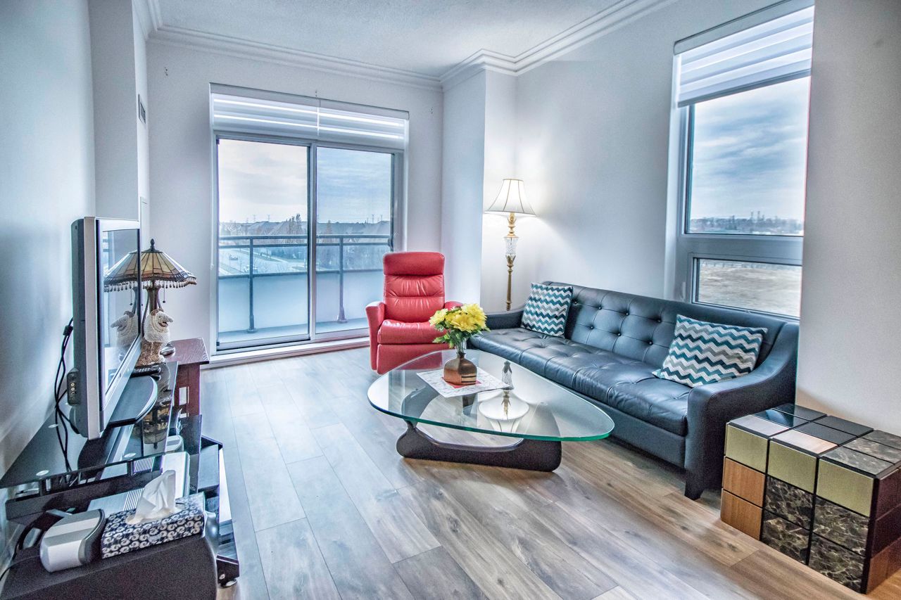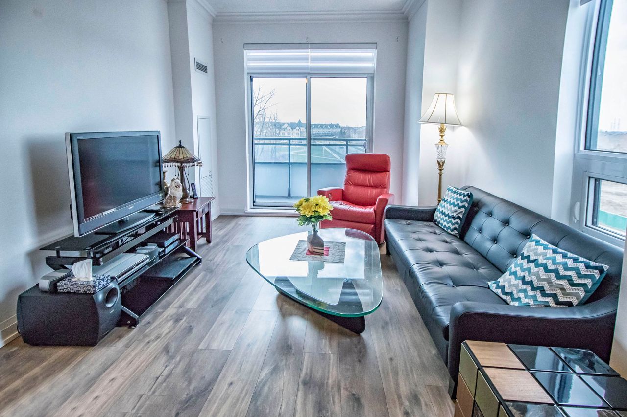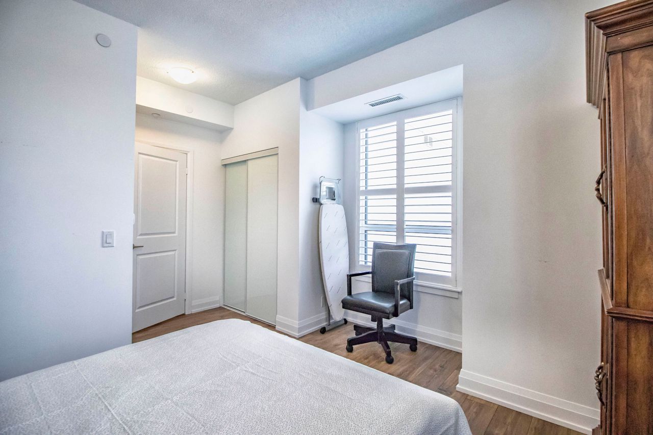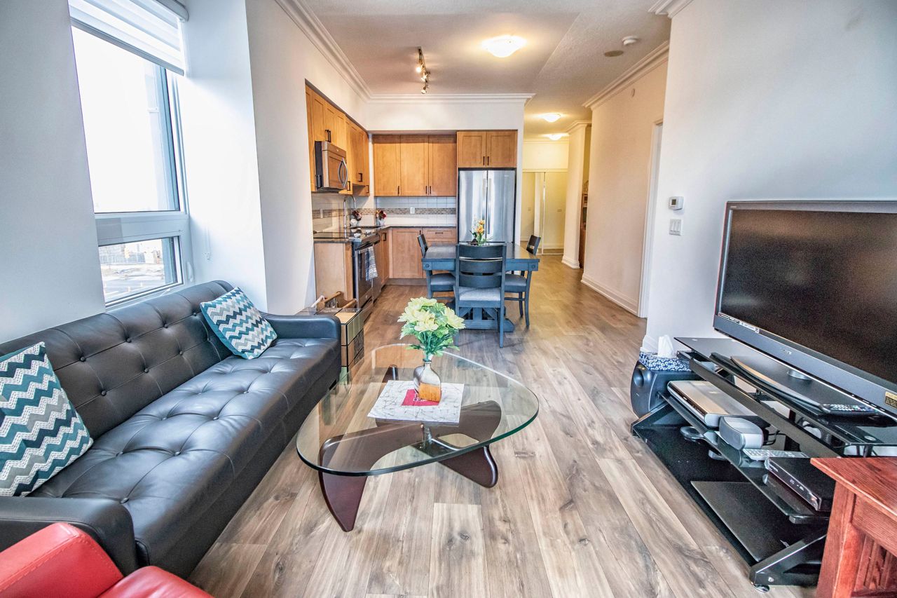 RARELY AVAILABLE 2+1 corner unit with a coveted northwest exposure. With 9ft ceilings and an open concept layout, this home offers a spacious and inviting atmosphere. The abundance of natural light enhances the elegant interior, complemented by stylish shutters throughout. Enjoy the convenience of a locker and parking space included. Immerse yourself in the array of amenities available, offering endless possibilities for relaxation and entertainment. With easy access to amenities, transit, and highways, this condo provides the perfect balance of convenience and comfort. This building boasts LOW CONDO FEES compared to other buildings, a superb condo management team which makes living here a pleasure and with a beautiful Northwest exposure, you can enjoy glorious sunset over the park views. Great location, conveniently located next to shopping and Hwy 407! Don't miss out on the opportunity to call this sophisticated condo your own.** LOW CONDO FEES $$ ** SUPERB CONDO MANAGEMENT TEAM *** PARK VIEWS *** CORNER UNIT WITH LOTS OF WINDOWS ***GREAT LOCATION