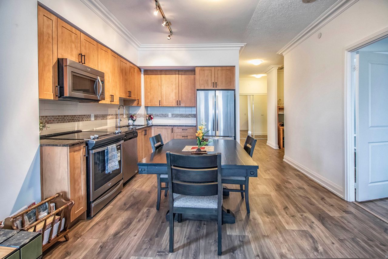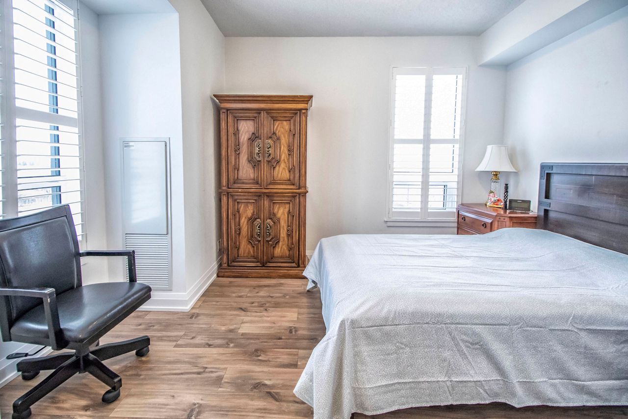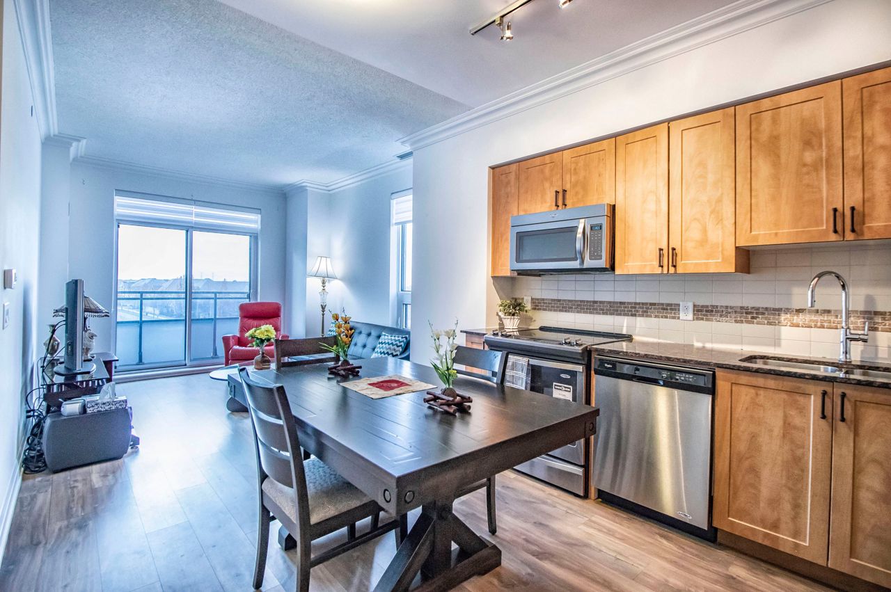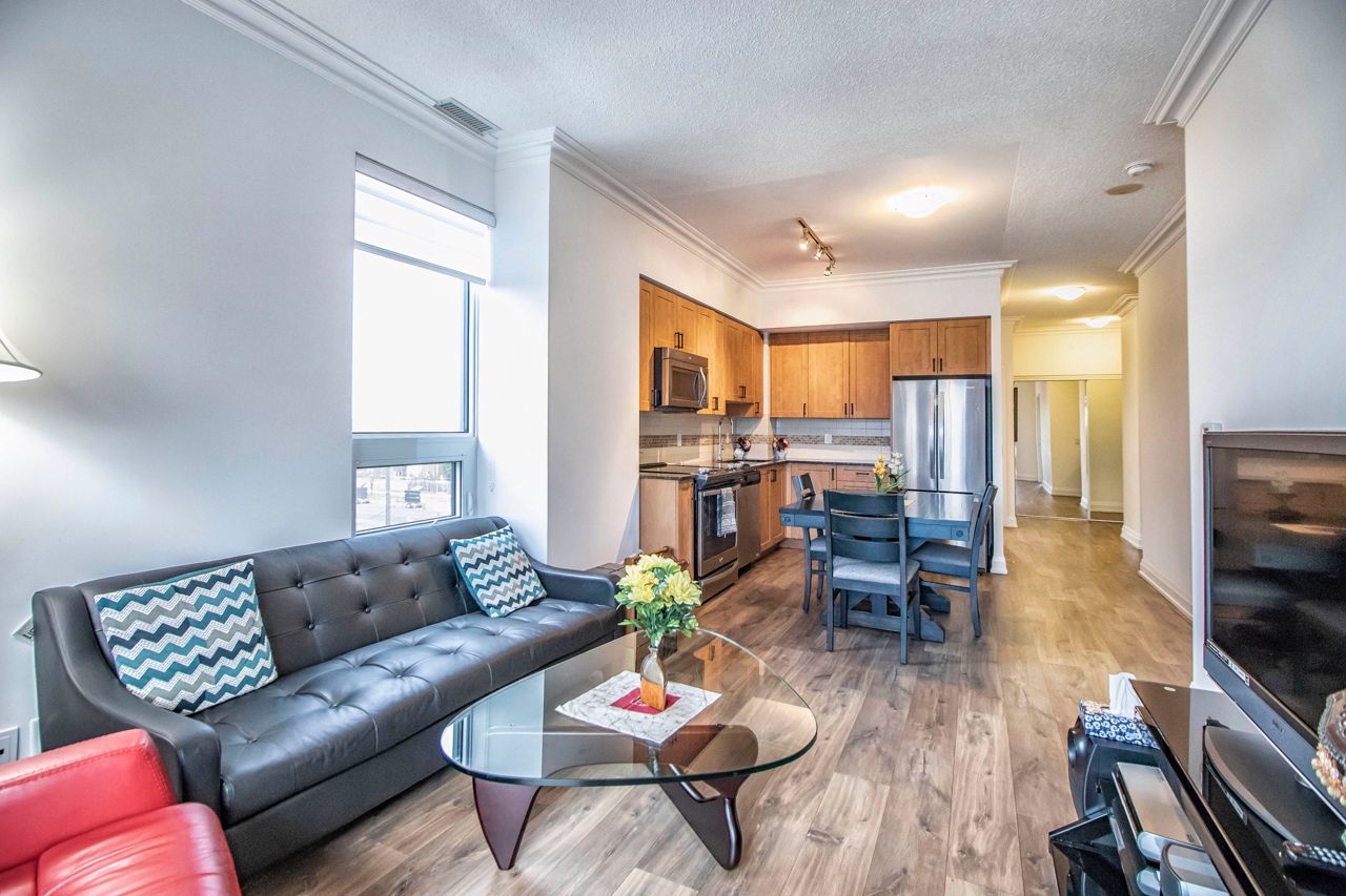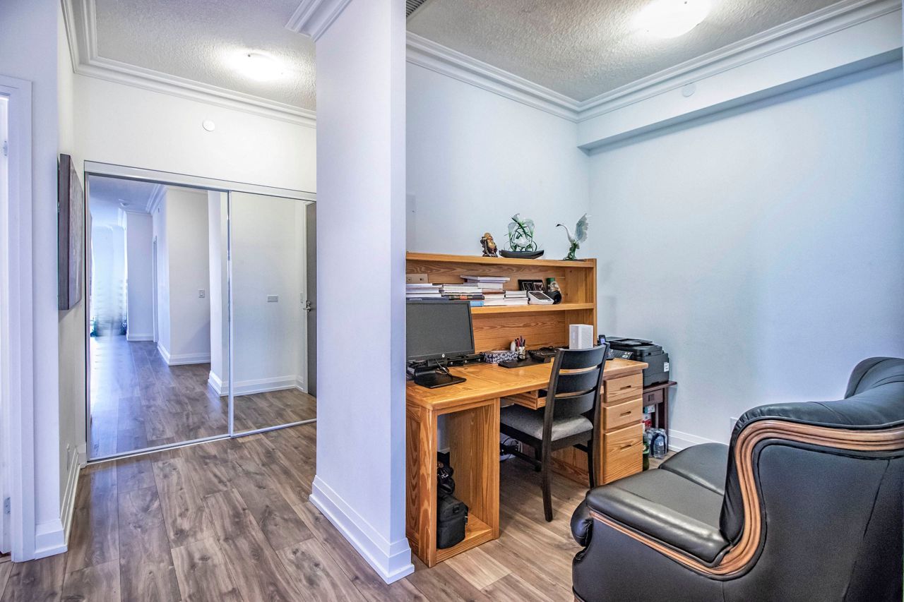 RARELY AVAILABLE 2+1 corner unit with a coveted northwest exposure. With 9ft ceilings and an open concept layout, this home offers a spacious and inviting atmosphere. The abundance of natural light enhances the elegant interior, complemented by stylish shutters throughout. Enjoy the convenience of a locker and parking space included. Immerse yourself in the array of amenities available, offering endless possibilities for relaxation and entertainment. With easy access to amenities, transit, and highways, this condo provides the perfect balance of convenience and comfort. This building boasts LOW CONDO FEES compared to other buildings, a superb condo management team which makes living here a pleasure and with a beautiful Northwest exposure, you can enjoy glorious sunset over the park views. Great location, conveniently located next to shopping and Hwy 407! Don't miss out on the opportunity to call this sophisticated condo your own.** LOW CONDO FEES $$ ** SUPERB CONDO MANAGEMENT TEAM *** PARK VIEWS *** CORNER UNIT WITH LOTS OF WINDOWS ***GREAT LOCATION