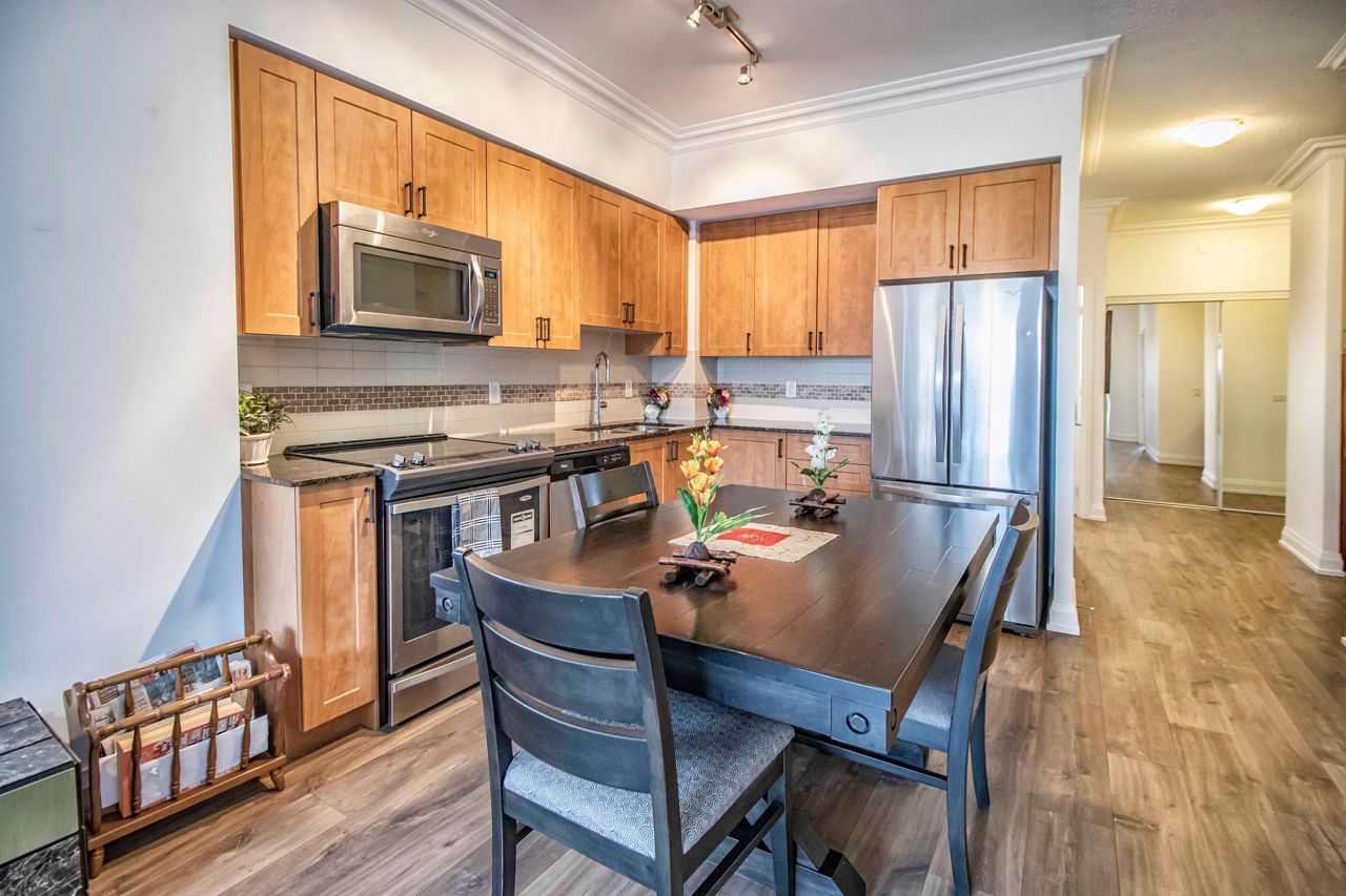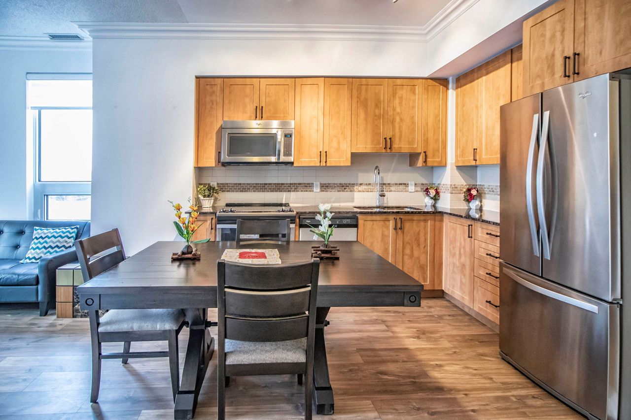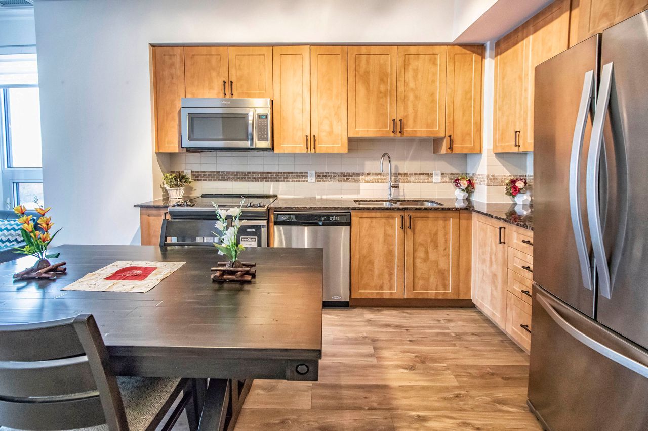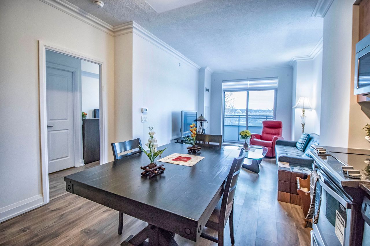 RARELY AVAILABLE 2+1 corner unit with a coveted northwest exposure. With 9ft ceilings and an open concept layout, this home offers a spacious and inviting atmosphere. The abundance of natural light enhances the elegant interior, complemented by stylish shutters throughout. Enjoy the convenience of a locker and parking space included. Immerse yourself in the array of amenities available, offering endless possibilities for relaxation and entertainment. With easy access to amenities, transit, and highways, this condo provides the perfect balance of convenience and comfort. This building boasts LOW CONDO FEES compared to other buildings, a superb condo management team which makes living here a pleasure and with a beautiful Northwest exposure, you can enjoy glorious sunset over the park views. Great location, conveniently located next to shopping and Hwy 407! Don't miss out on the opportunity to call this sophisticated condo your own.** LOW CONDO FEES $$ ** SUPERB CONDO MANAGEMENT TEAM *** PARK VIEWS *** CORNER UNIT WITH LOTS OF WINDOWS ***GREAT LOCATION
