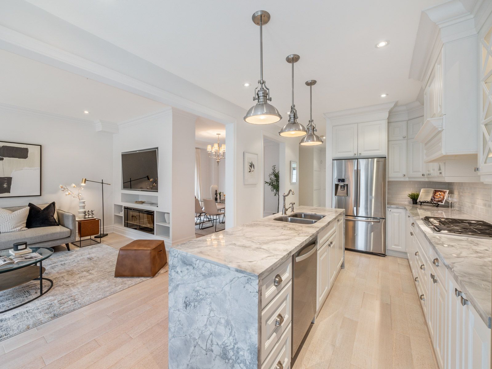 Located in the prestigious Thornhill Woods, this exquisite 4 bed 4 bath home has been completely renovated into the perfect family oasis. Approx. 3400 ft² of total living space. Completely renovated and meticulously designed with custom high-end finishes. Engineered hardwood floors and floor-to-ceiling custom panelling throughout. Exquisite open-concept kitchen is a culinary masterpiece, featuring custom cabinetry & quartzite countertops with stunning waterfall island. Custom washrooms with luxurious marble finishes create a spa-like ambiance. Fully finished basement with the potential for a separate apartment. Upgraded hardware, crown moulding and beautiful electrical fixtures. Pot lights throughout. Oversized primary is a retreat of its own, boasting an ensuite bathroom and a spacious walk-in closet. Situated minutes away from fantastic schools, major highways, premier shopping destinations and a thriving community center, you'll enjoy convenience and access to a range of amenities.
