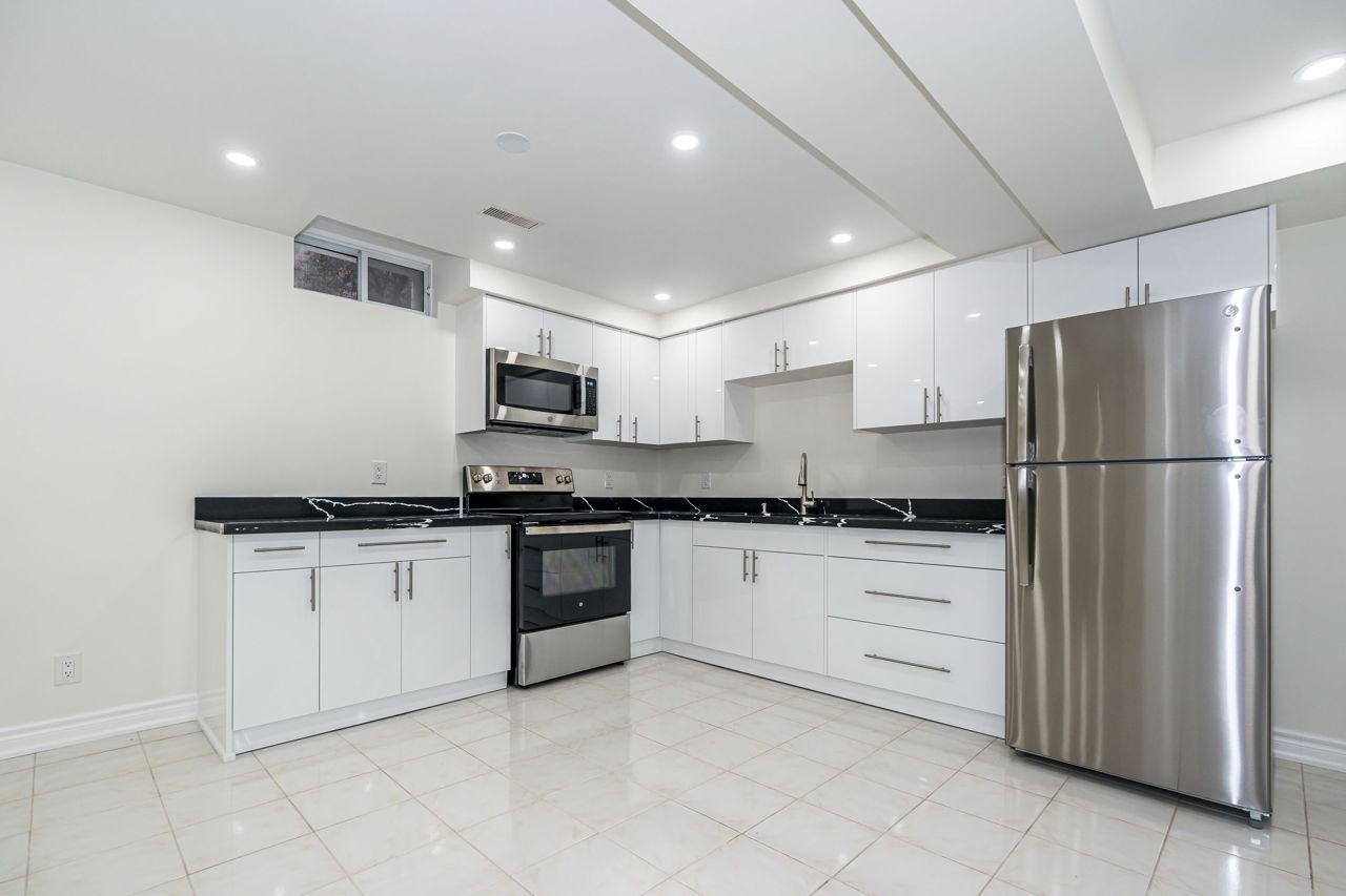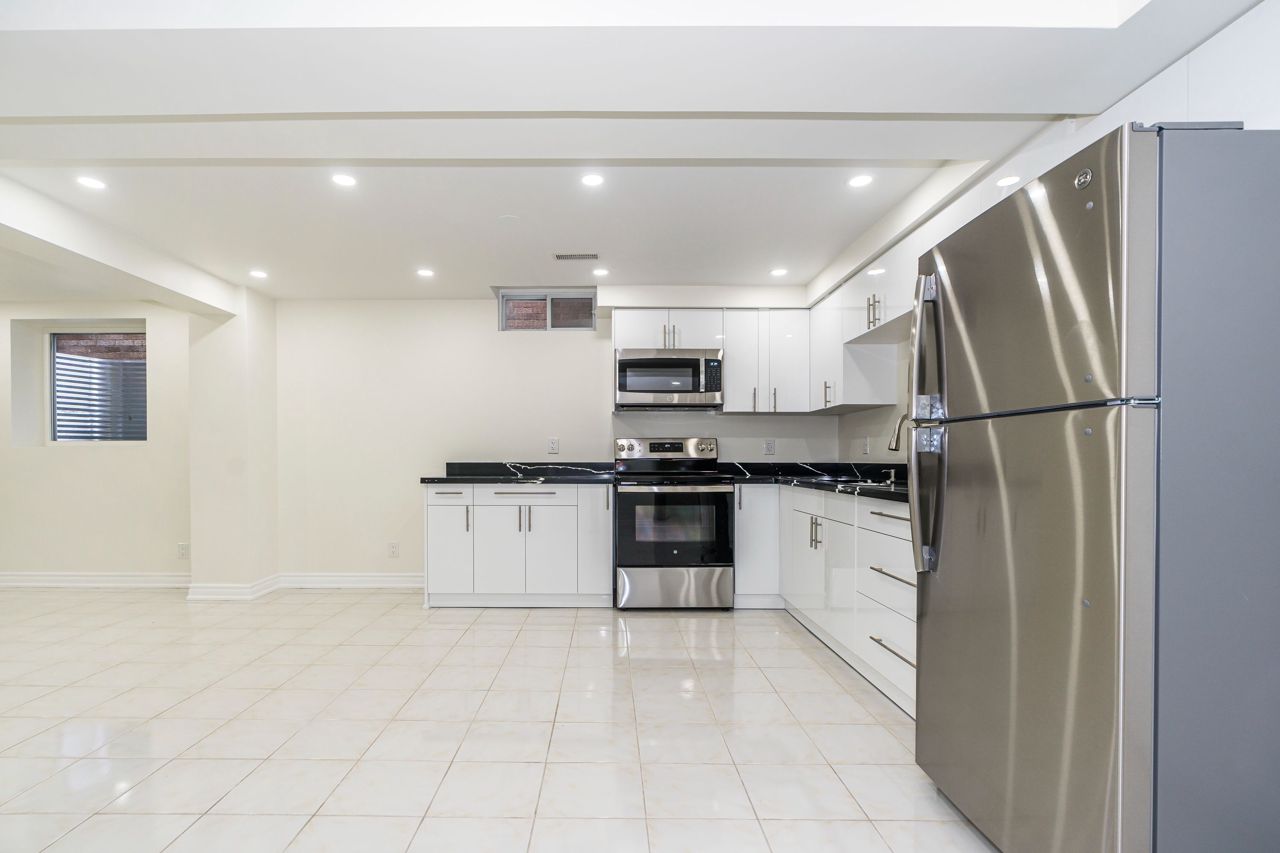 Wonderful family home nestled in great community, brand newly renovated LEGAL. basement apartment. Freshly painted with stunning recent modern kitchen. Great space with a parking space and bus route at your doorstep. Your family will love the full range of space inside. No carpet throughout. Large primary bedroom with generous closet, 2nd bedroom can double as small office. Paver walkway side yard.Tenant is responsible for 1/3 of expenses gas and hydro