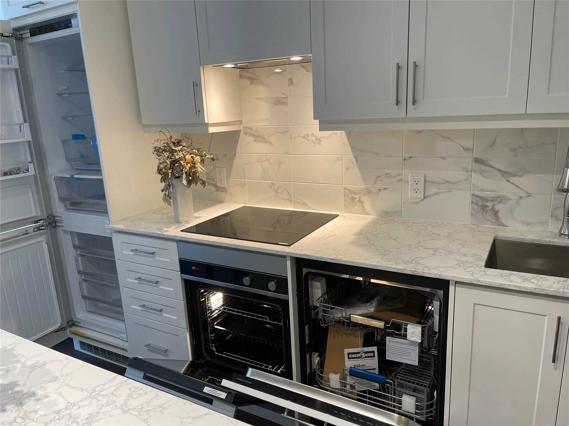 Welcome To Beautiful 1 Bedroom Condo Of Park Avenue Building With Lots Of Upgrades: Large Counter Top Island, Laminate; Pot Lights, Built In Appliances.All Elf's, B/I Fridge, B/I Dishwasher, B/I Oven, Fisher & Paykel Cooktop, Stacked Washer & Dryer.