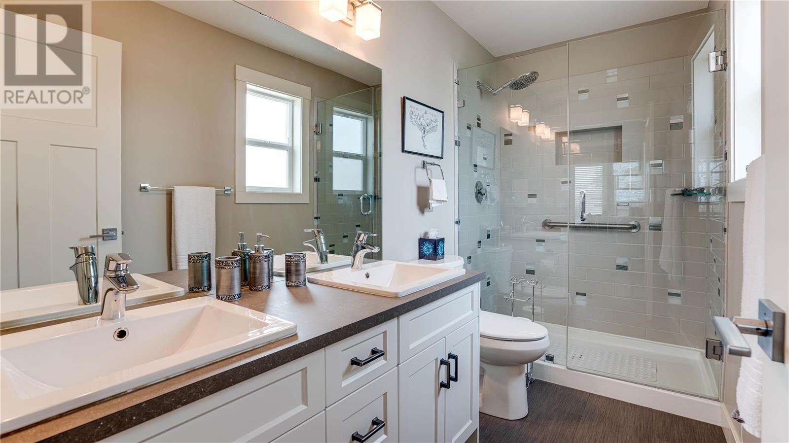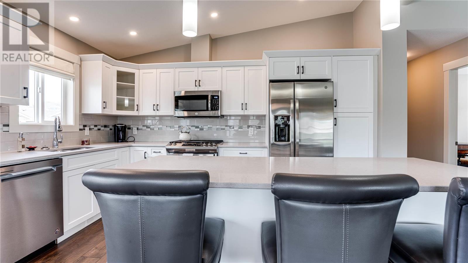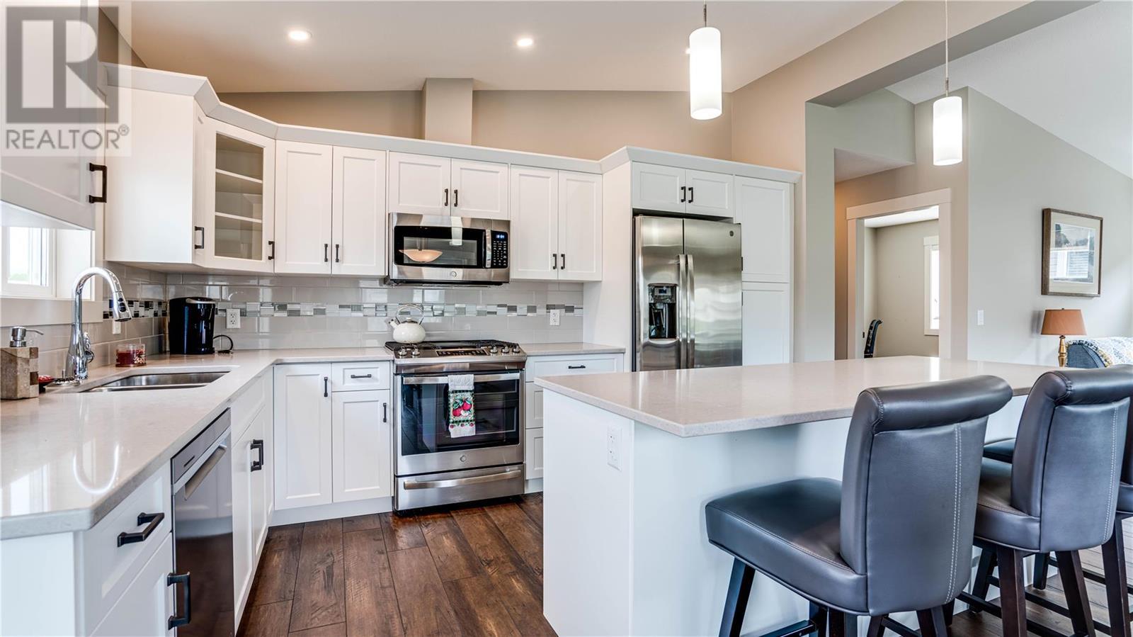 Welcome to Barnard Village! This stunning 2 Bed + Den, 2 Bath home is a gem that showcases high-quality finishings throughout. From the moment you step inside, you'll be greeted by an open layout and a vaulted ceiling, allowing an abundance of natural light to illuminate every corner of the home. Whether you're looking to retire or downsize, the main-floor living offered in this home makes it the perfect choice. The heart of this home lies in its spacious kitchen, which seamlessly blends with the dining and living room areas. It boasts high-end appliances, soft-close cabinetry, and an expansive island that serves as the focal point for hosting and entertaining. The living room is further enhanced by a sleek fireplace, creating a warm atmosphere for cozy evenings. The master bedroom is generously sized and features a convenient walk-in closet, along with an ensuite bathroom equipped with double sinks for added convenience. Additionally, there's a versatile den/office space that can easily be transformed into an additional bedroom to suit your needs. Built with an ICF foundation, this home provides excellent insulation, ensuring optimal comfort throughout the seasons. The 6' crawl space offers ample storage space for all your belongings. There's a double garage, and the driveway provides two additional parking spots, accommodating both your personal needs and guests. The location of this home is truly fantastic, as it is mere steps away from shopping centers and all amenities. (id:22211)
