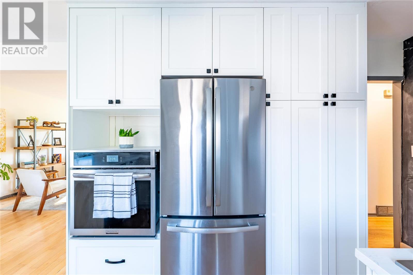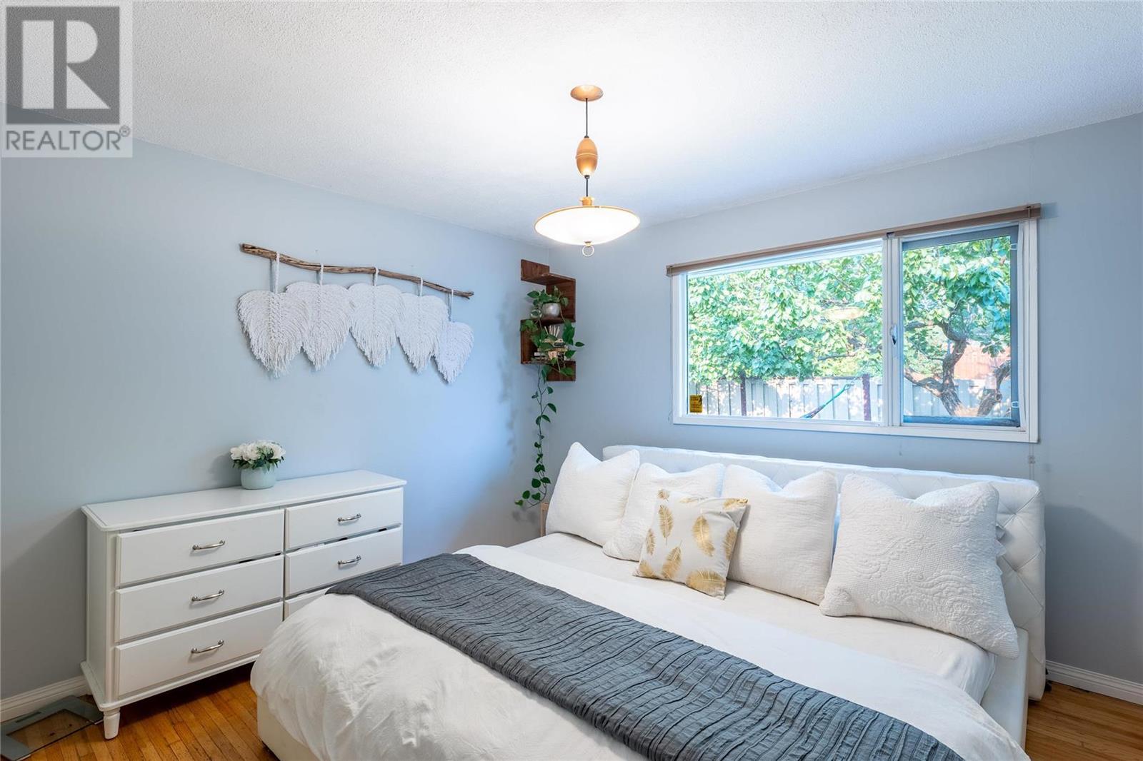 Nestled in central East Hill, this delightful 5-bedroom home offers modern comfort, vintage charm and a welcoming atmosphere. Original hardwood floors add character to the newly designed kitchen and cozy living area, making it an ideal space for families. The fenced backyard features a charming brick patio, perfect for enjoying the morning sun and hosting bbqs. With ample storage, a mix of vintage and modern light fixtures, and a newly added basement bathroom with heated floors and stylish tile, this residence combines convenience and style with charm and quaintness. Updated windows and air conditioning ensure your comfort. The attached workshop offers a spot for storage or tinkering and the quiet street, has wonderful neighbours. Located near many schools and walking distance to downtown, this cheerful family home presents a great spot to put down roots. (id:22211)