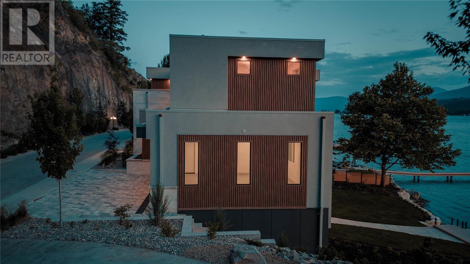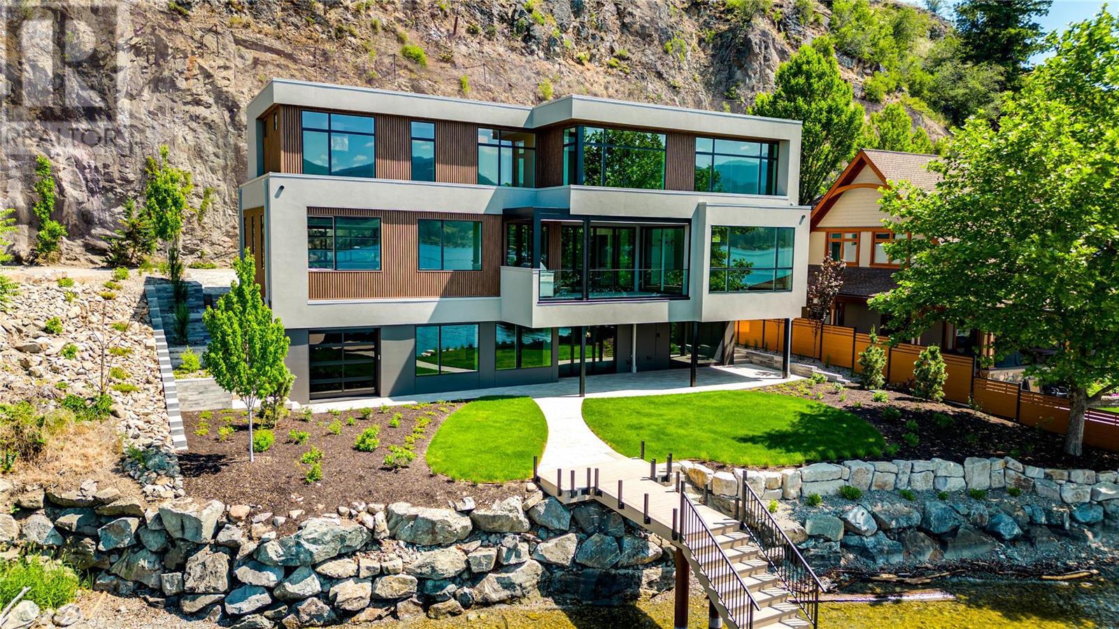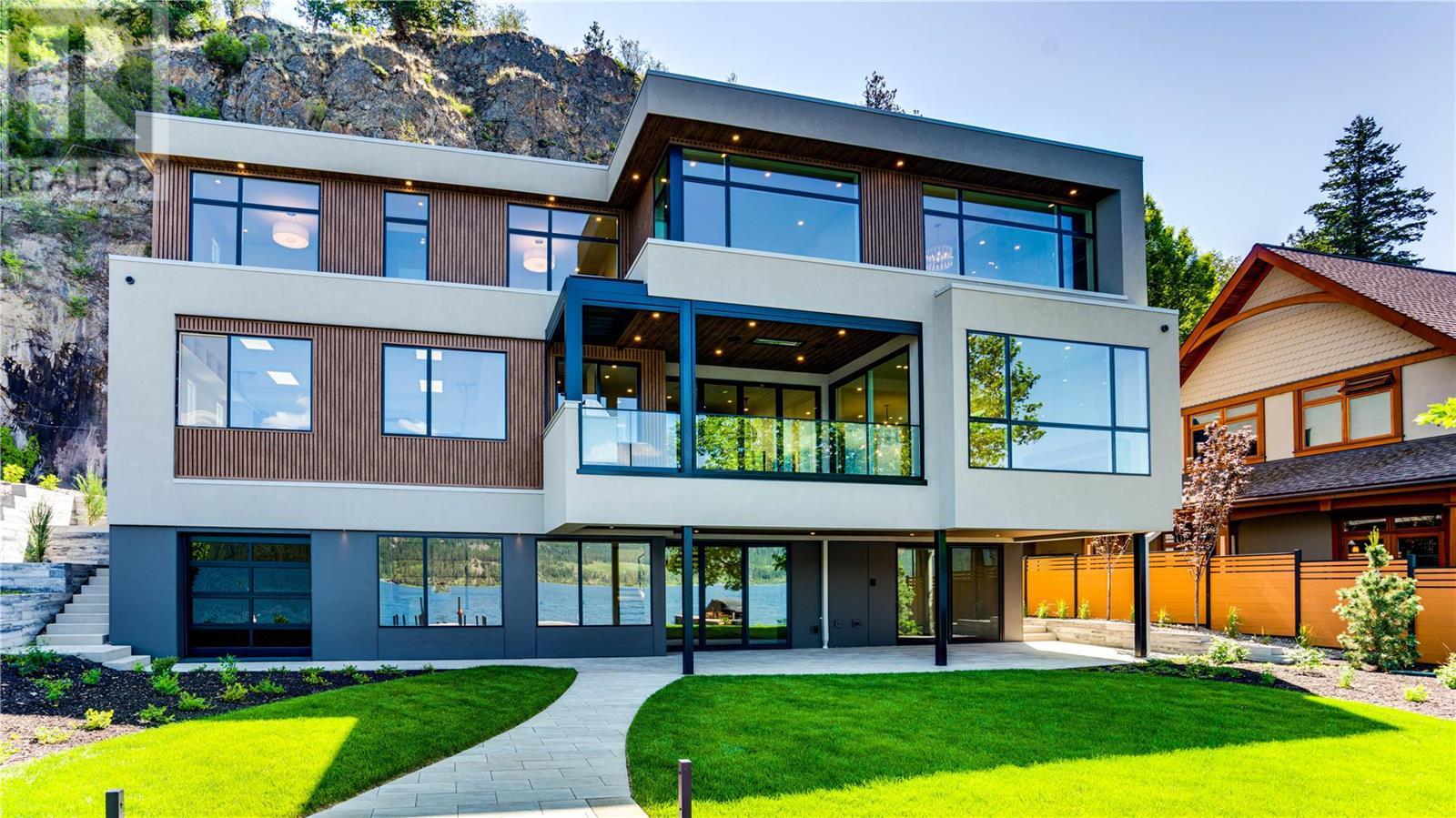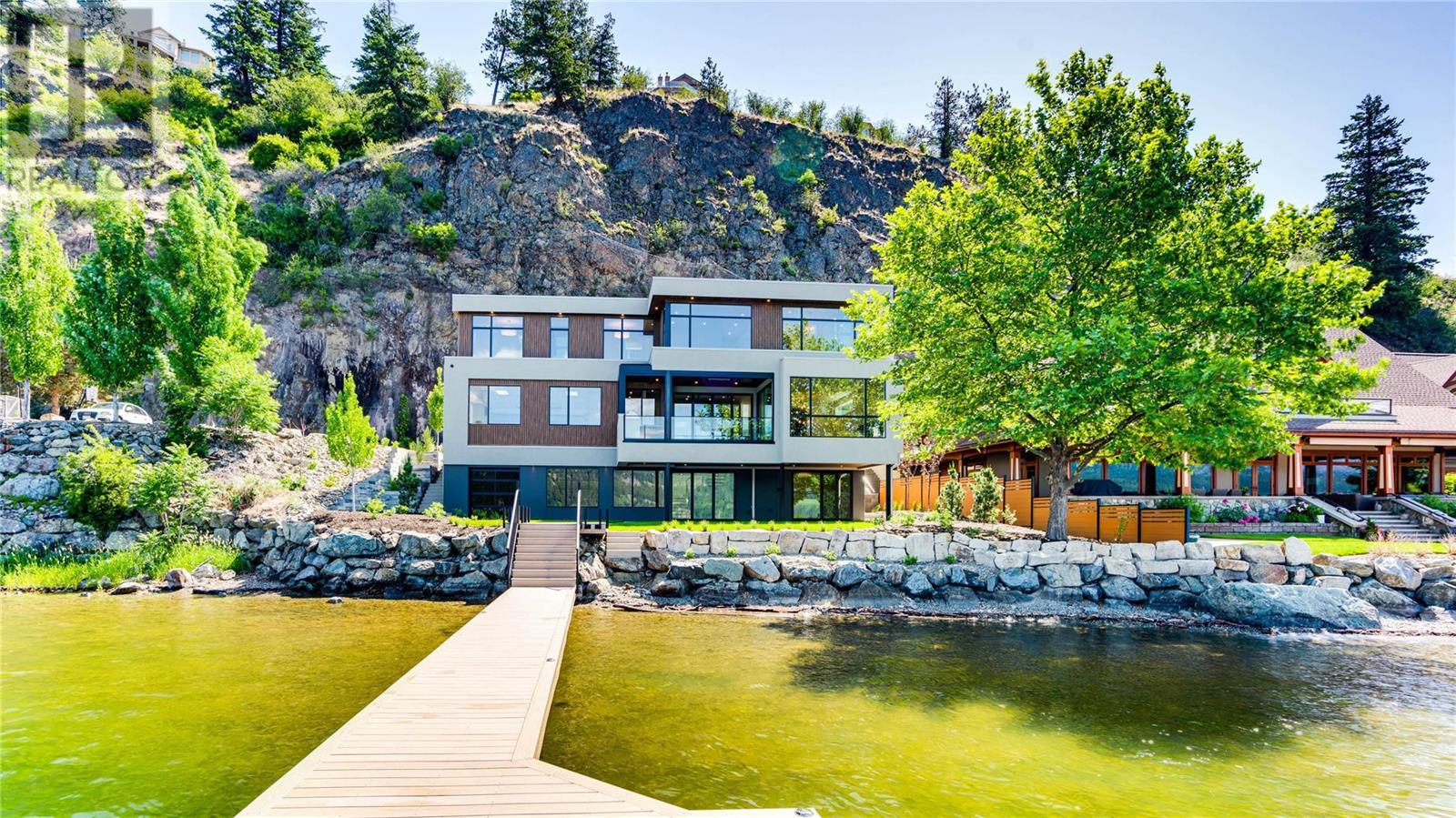 It’s not hard to imagine the breathtaking life on the lakefront that this new-construction Okanagan Lake gated estate promises. The impressive property by Rockwood Custom Homes offers an incredible attention to detail, with high-end finishes, top-of-the-line construction, and state of the art technology. Inside and out, a pleasing fusion of contemporary design and natural material combine to create a serene environment. Upon entry, the expansive main floor awaits with lofty ceilings, floor to ceiling glass, and engineered h/w flooring. The gourmet kitchen with high-end appliances and custom cabinetry flows seamlessly into the dining and living areas with 3-sided fireplace. Unified indoor/outdoor living awaits with direct access to the covered deck via the great room. Above the main floor, three separate bdrm suites await. Included is the primary, complete with a large dressing room and spa-like ensuite bath. Below the main floor, the fully developed lower level awaits, complete with a gym, media and games area, and a fourth bedroom suite. With direct access to the covered patio and waterfront, this space offers wonderful for entertaining on the Lake. Guests will love strolling down the lengthy dock complete with composite decking and automated lighting. This spectacular property will also include an entire landscape package. Take a look today and imagine the possibilities. (id:22211)