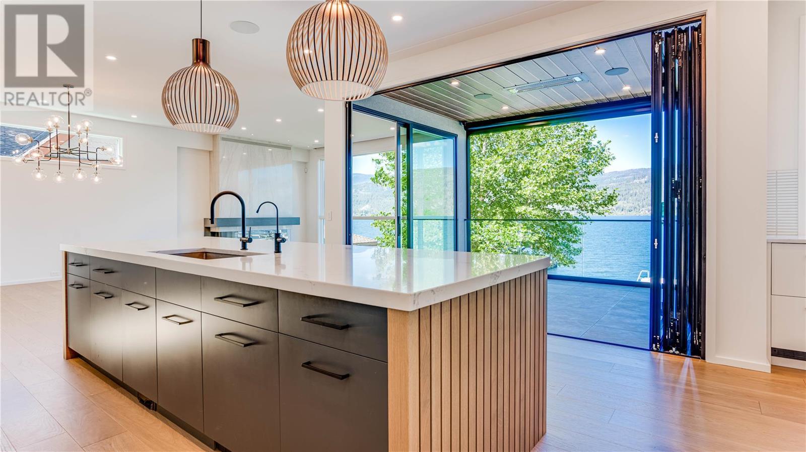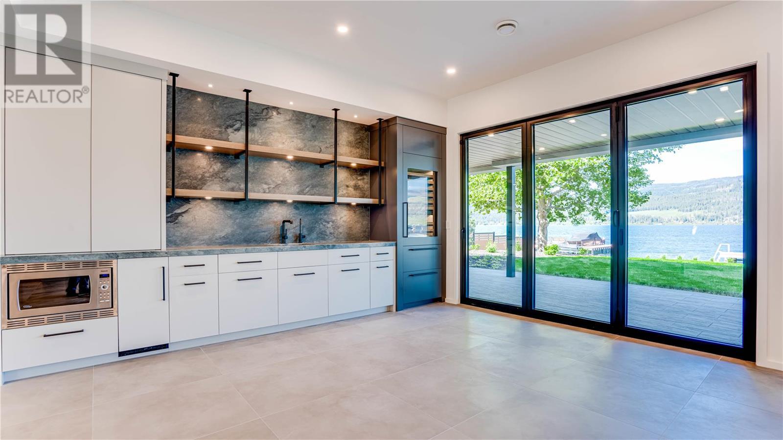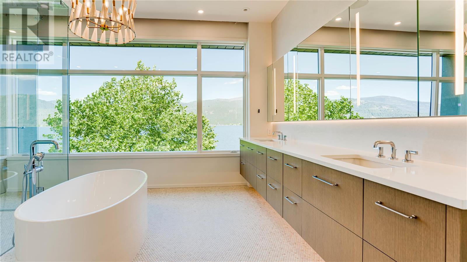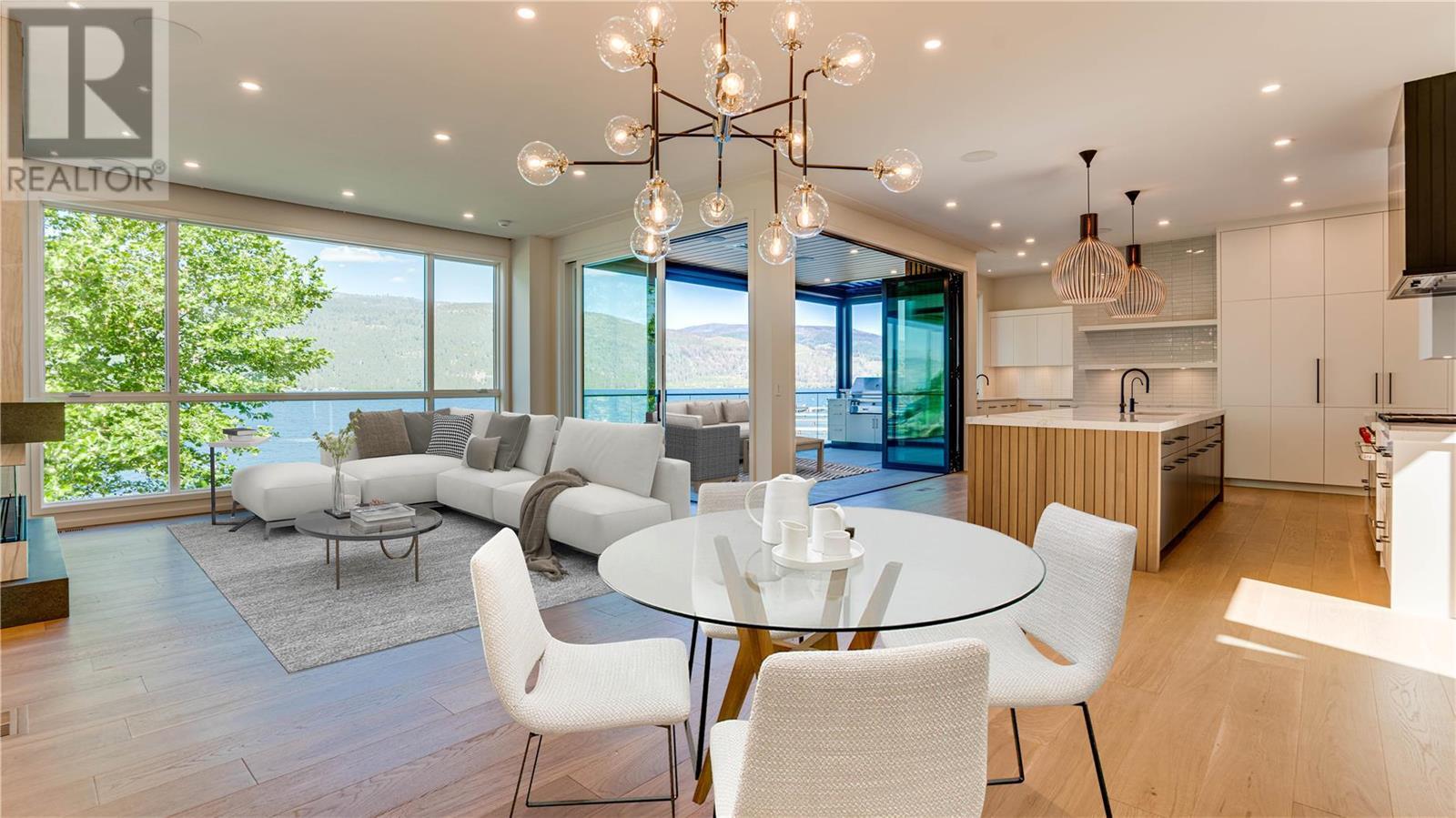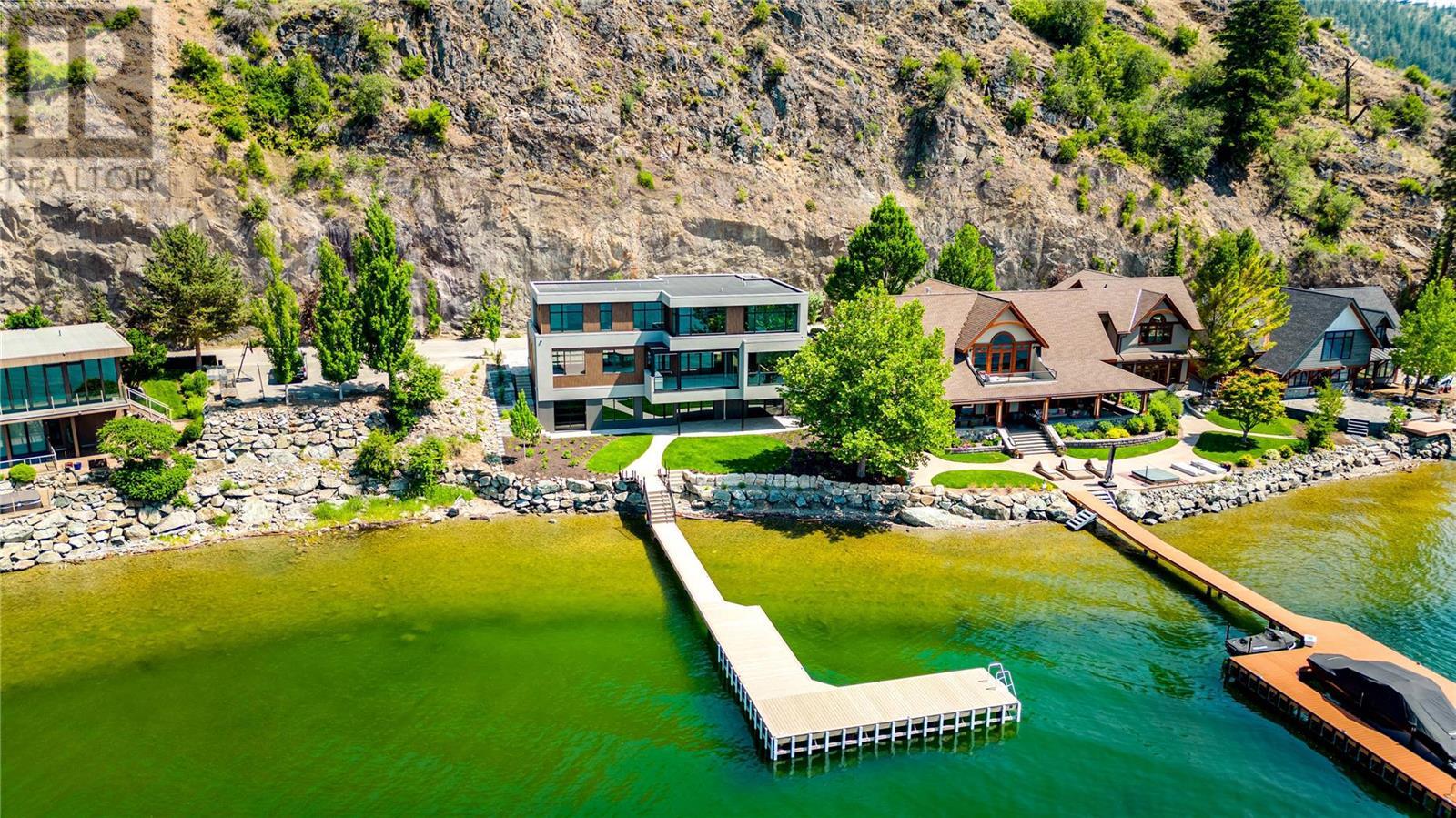 It’s not hard to imagine the breathtaking life on the lakefront that this new-construction Okanagan Lake gated estate promises. The impressive property by Rockwood Custom Homes offers an incredible attention to detail, with high-end finishes, top-of-the-line construction, and state of the art technology. Inside and out, a pleasing fusion of contemporary design and natural material combine to create a serene environment. Upon entry, the expansive main floor awaits with lofty ceilings, floor to ceiling glass, and engineered h/w flooring. The gourmet kitchen with high-end appliances and custom cabinetry flows seamlessly into the dining and living areas with 3-sided fireplace. Unified indoor/outdoor living awaits with direct access to the covered deck via the great room. Above the main floor, three separate bdrm suites await. Included is the primary, complete with a large dressing room and spa-like ensuite bath. Below the main floor, the fully developed lower level awaits, complete with a gym, media and games area, and a fourth bedroom suite. With direct access to the covered patio and waterfront, this space offers wonderful for entertaining on the Lake. Guests will love strolling down the lengthy dock complete with composite decking and automated lighting. This spectacular property will also include an entire landscape package. Take a look today and imagine the possibilities. (id:22211)