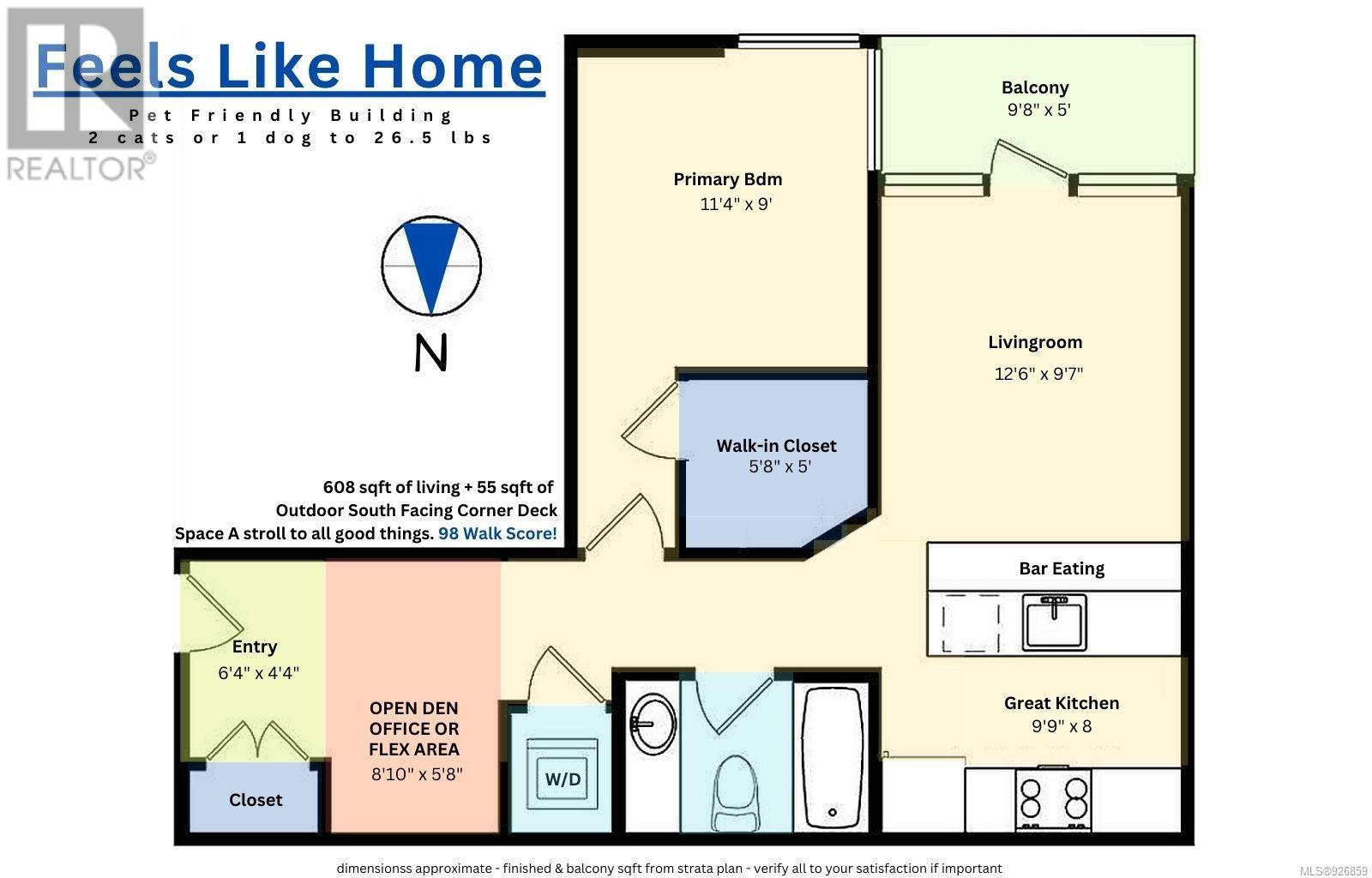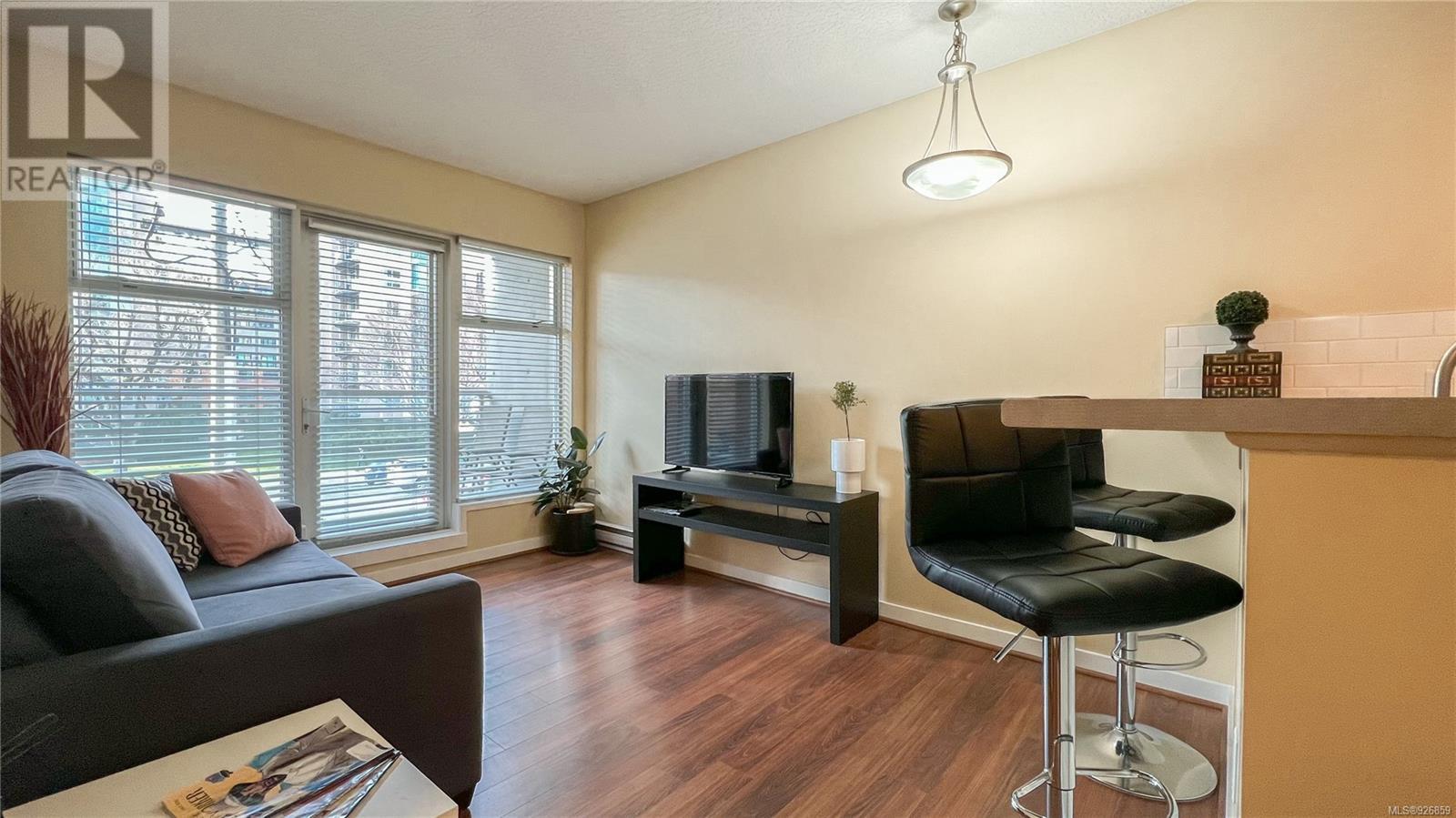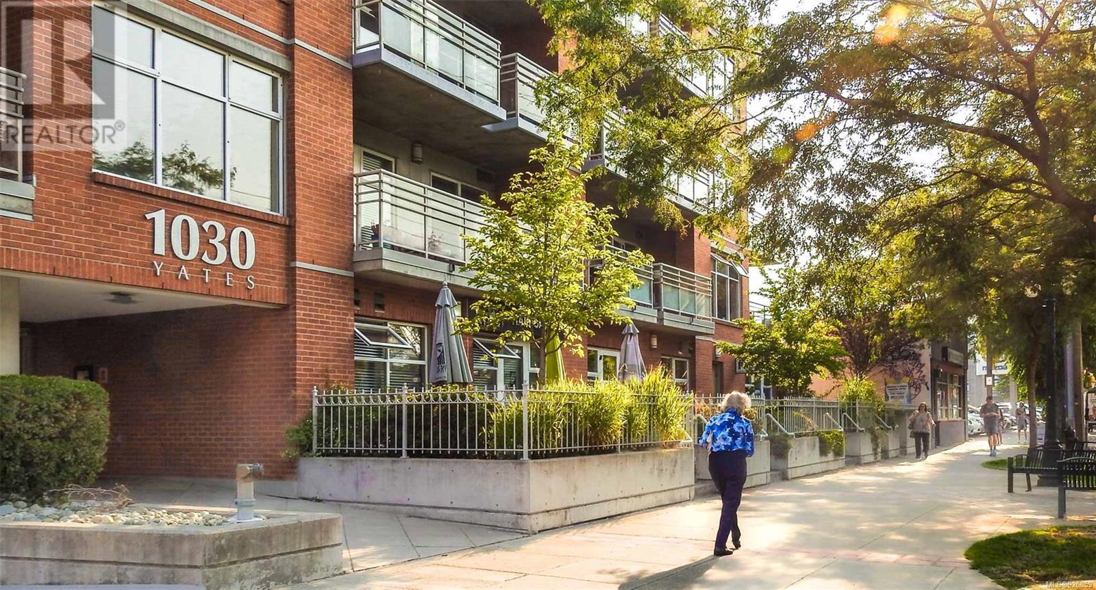Well designed, live/work one bedroom with Walk-in Closet in a Steel & Concrete corner condo with an area for a separate open Den or Office space may just be what you're looking for:-). This Upscale property and convenient area lends itself well for easy walk-abouts with Moxies/London Drugs/ Bin4/Orange Theory/ Market on Yates & Save-On Foods and coffee shops & restaurants all aroud you! Good-sized balcony PLUS a fabulous, common area rooftop deck with nice views of Victoria. Great location / super building and next to the Community Garden and easy walking access to all good things and entertainment events. Move in ready & A Great Value in today's market! 98 Walk Score - Walkers Paradise!!! Call 250-744-8506 now to view (id:22211)