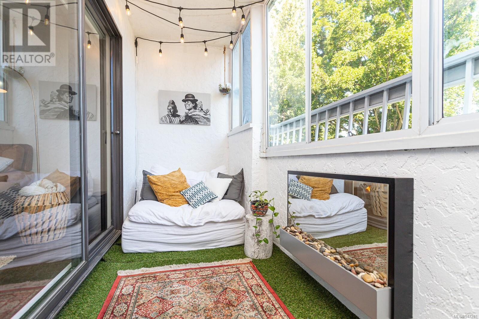 Immedaiate Possession! Amazing Cook Street Village location, directly across from Beacon Hill Park! This beautifully updated 2 bed, 1 bath condo has it all. Step inside and be delighted by a bright, open concept floorplan which is perfect for entertaining, and accommodates large furniture. From the living room, there is direct access to your private sunroom, fitted with cozy electric fireplace perfect for year round enjoyment. Moving into the large primary suite, you will find a good sized closet and cheater door to the 4 piece bathroom with deep soaker tub. A tasteful kitchen and generous sized second bedroom finish this beautiful suite. Recent upgrades include laminate flooring, a chic new bathroom, paint and more! Secure underground parking and storage locker included! Other amenities include workshop, games room and even car wash station in this well maintained building. Just steps to Dallas Rd, The Root Cellar, The Beagle Pub and more; you will not find better value in today's market! (id:22211)