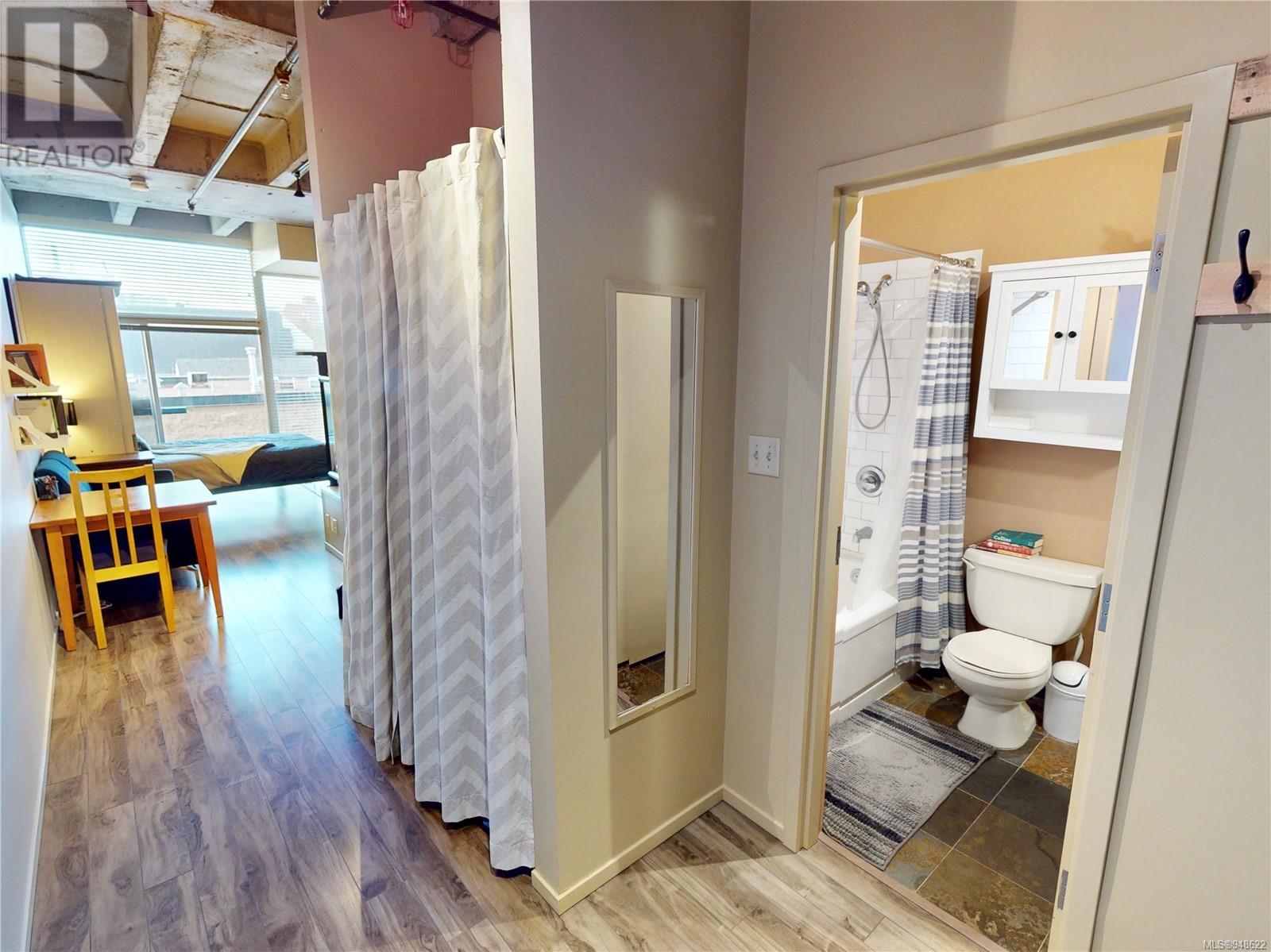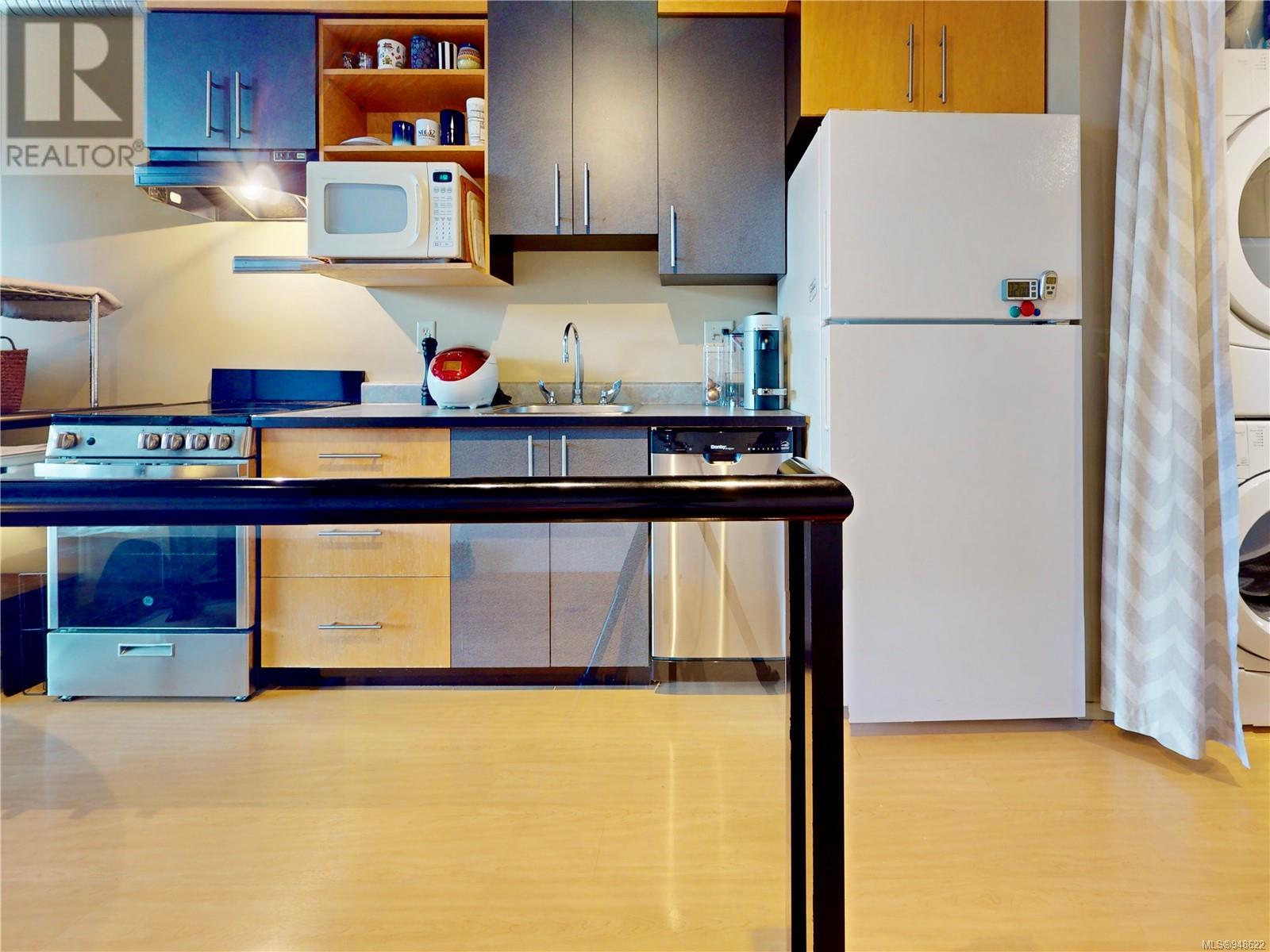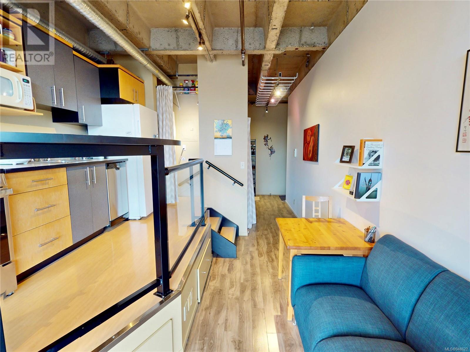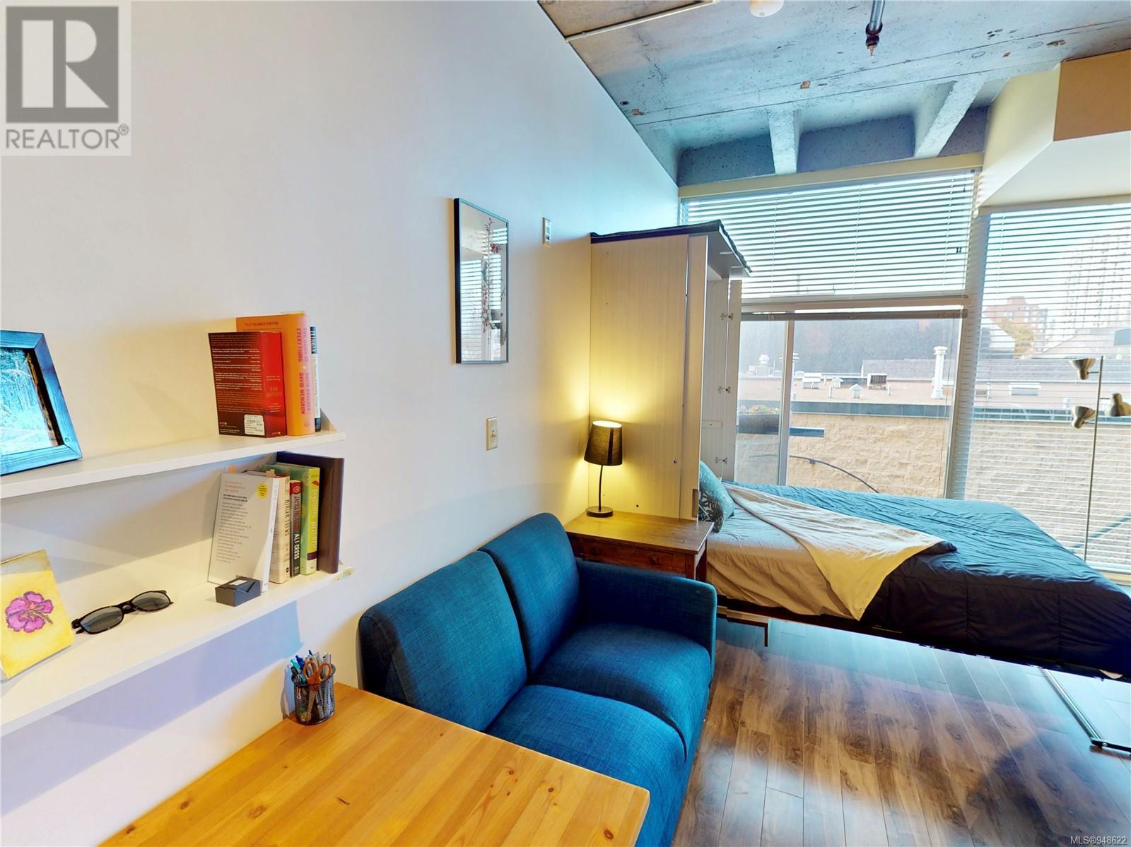'City Chic'! The Mosaic is a landmark steel/concrete building, in an unbeatable location. Explore affordable downtown living at its best in this 3rd floor, sunny west-facing bachelor studio on Antique Row. This unit offers modern living with a cozy gas fireplace, elevated kitchen with a breakfast bar, open floor plan, full 4-piece bath & in-suite laundry. Laminate flooring & 10 ft ceilings create an open, chic space ideal for professionals, students, investors, or those seeking a minimalist lifestyle. This live/work zoned property is pet-friendly allowing for 2 dogs or cats with no size restriction & rentable, minimum 6 months. The heart of city amenities are at your doorstep. Cook St. Village, Beacon Hill Park & the Dallas Rd waterfront are a stroll or bike ride away. The Mosaic provides a simple, modern lifestyle with low strata fees. Conveniently located on bus routes & a short walk to downtown. Don't miss out – view this home today and embrace the Mosaic lifestyle! (id:22211)