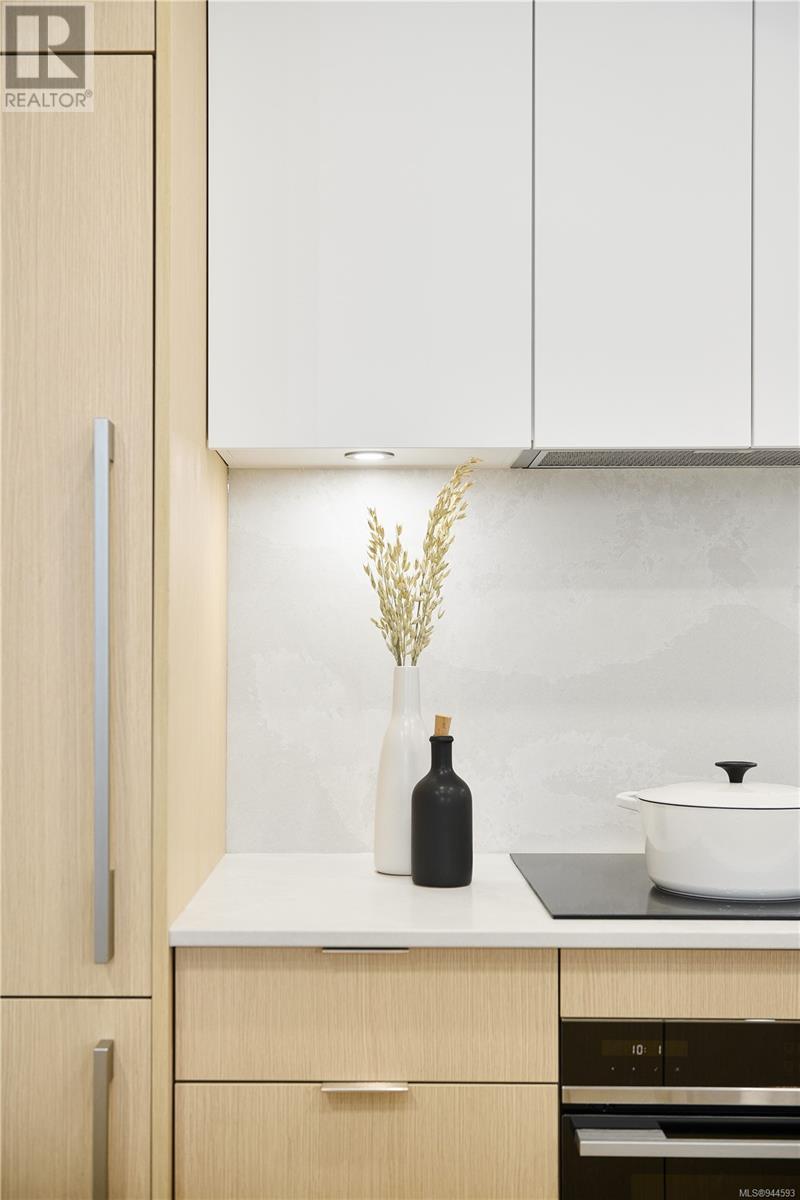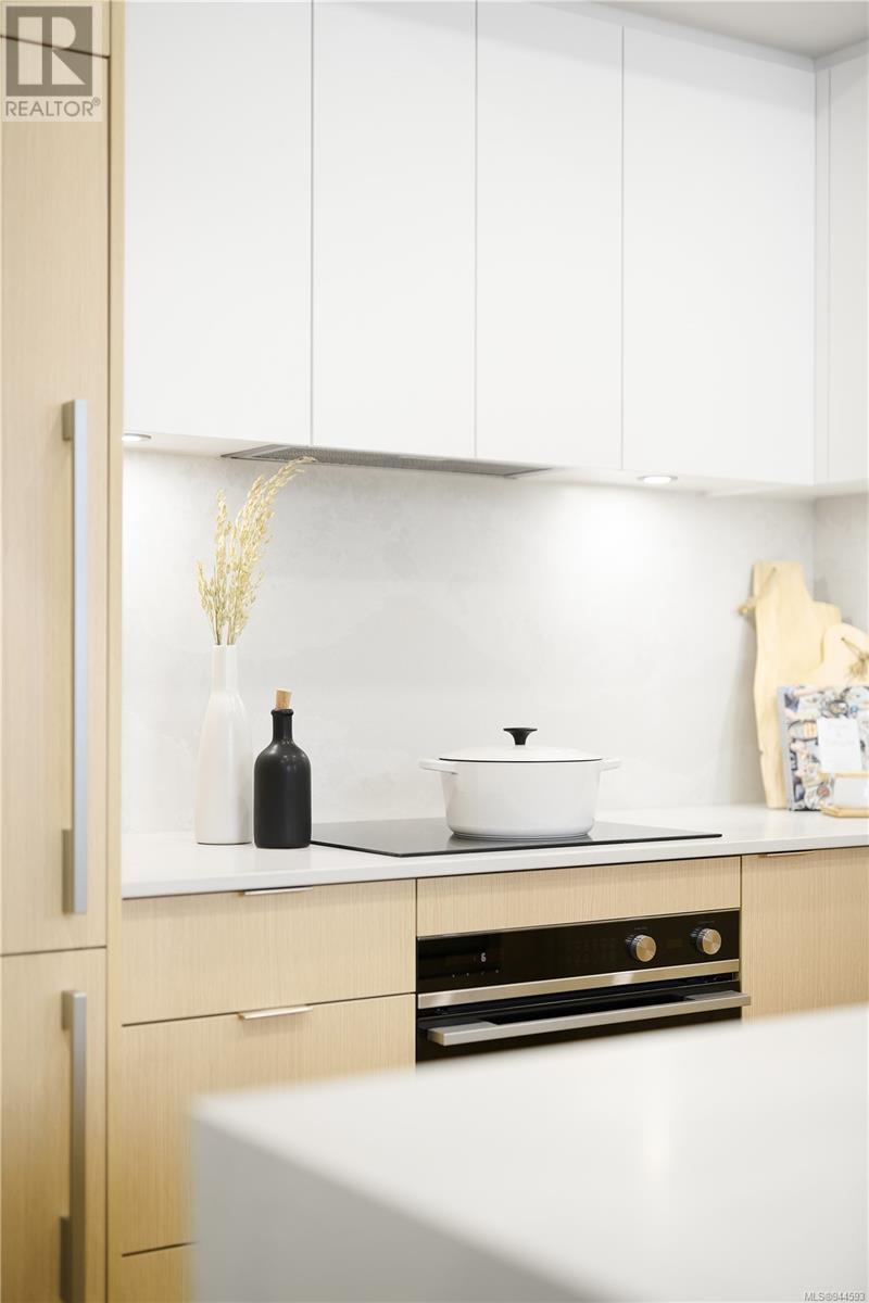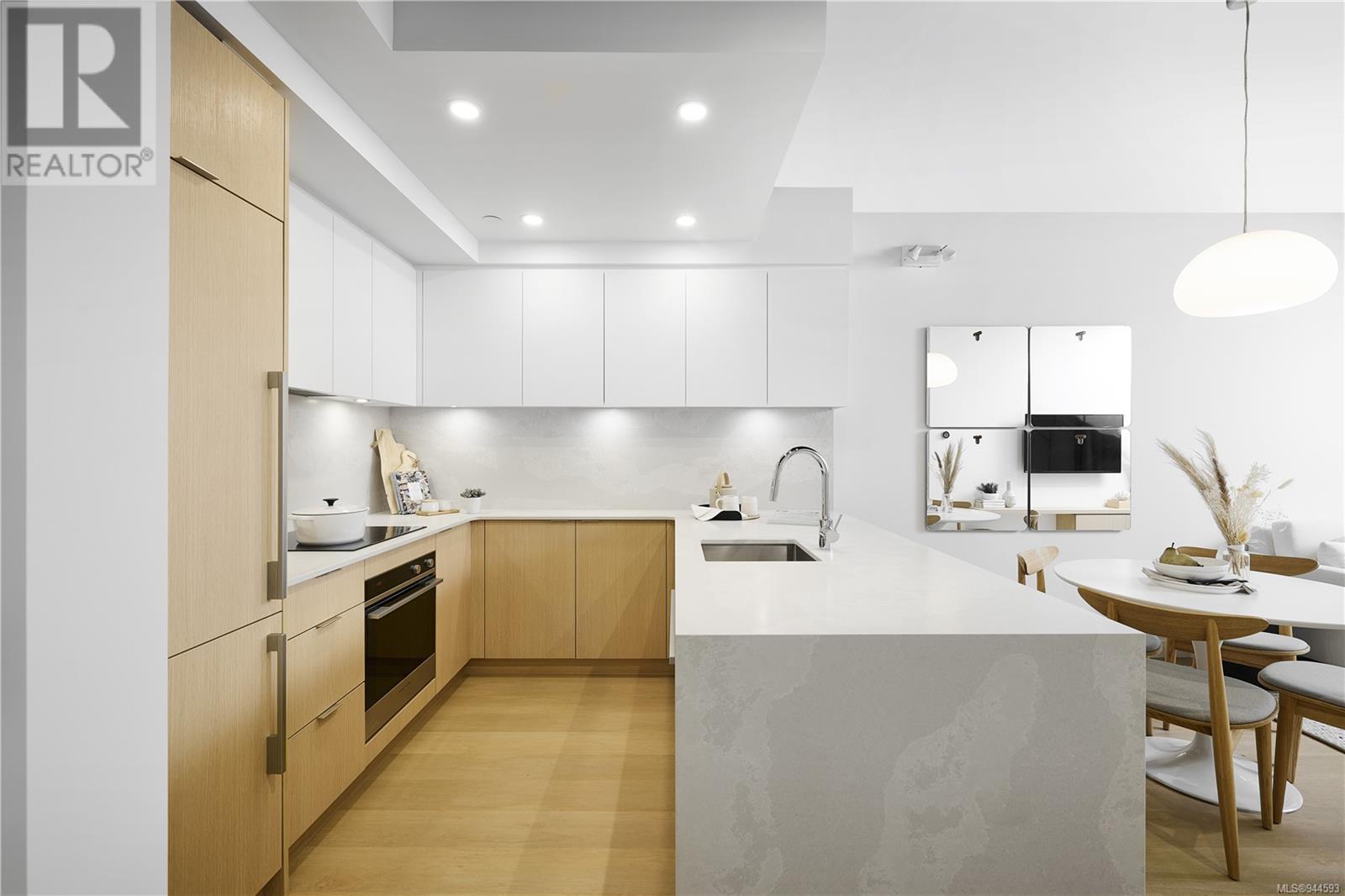 Now under construction, NEST by Chard is a boutique-sized midrise scheduled for completion in 2024. This south facing, two-bed, two-bath home features a smart interior layout designed with families or roommates in mind. Separated bedrooms maximize privacy, while an oversized balcony extends living space outdoors. A large, central kitchen includes an oversized pantry and boasts sophisticated finishes that include an integrated Fisher & Paykel appliance package and solid surface quartz countertops with waterfall edge. The bathroom features heated tile floors, tile feature wall, motion activated under cabinet lighting and a large medicine cabinet. Generous closets and a side-by-side washer and dryer area maximize livability. This home is comfortable year-round thanks to in suite air conditioning and a continuous fresh air supply system. Tucked into Fernwood’s southwest corner, NEST is just a stone’s throw from Downtown and everything central. Parking, storage & bike lockup included. Price + GST. Call 250-589-7779 for more information. (id:22211)