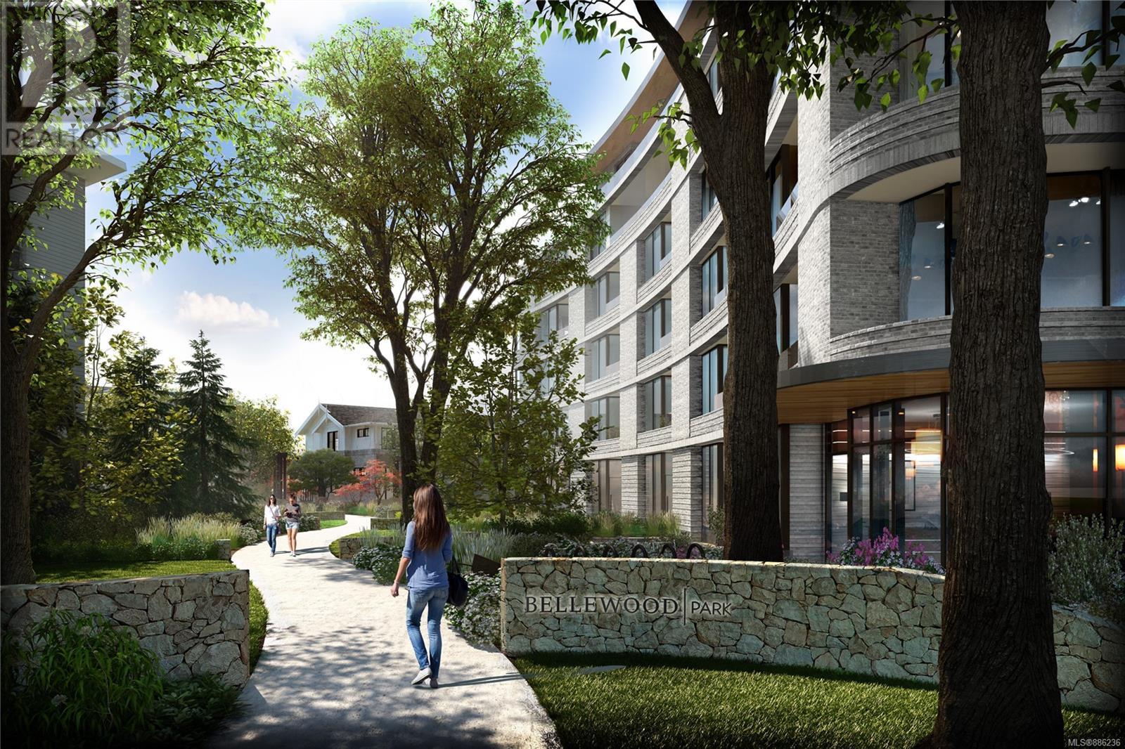 Be at home in nature at Bellewood Park by award-winning Abstract. This rare collection of homes is thoughtfully-oriented in a truly natural setting, nestled amongst large heritage Garry oaks on two acres of parkland in historic Rockland. This sophisticated 2 bedroom, 2 bath & den home offers 1,122 sq. ft. of living space and a 284 sq. ft. east facing terrace to soak up the morning sun. A highly functional plan with an open concept main living area and generous storage throughout. Gourmet kitchen boasts a European appliance package, featuring deluxe Wolf gas range and Fisher & Paykel French door refrigerator and double-drawer dishwasher. Includes underground parking space, storage locker, bicycle lock-up and access to concierge service and all amenities. Extra parking available to purchase. Steps to Upper Fort and minutes to downtown, Cook Street Village and the Dallas Road Waterfront, living at Bellewood Park means youre always at the centre of it all. (id:22211)