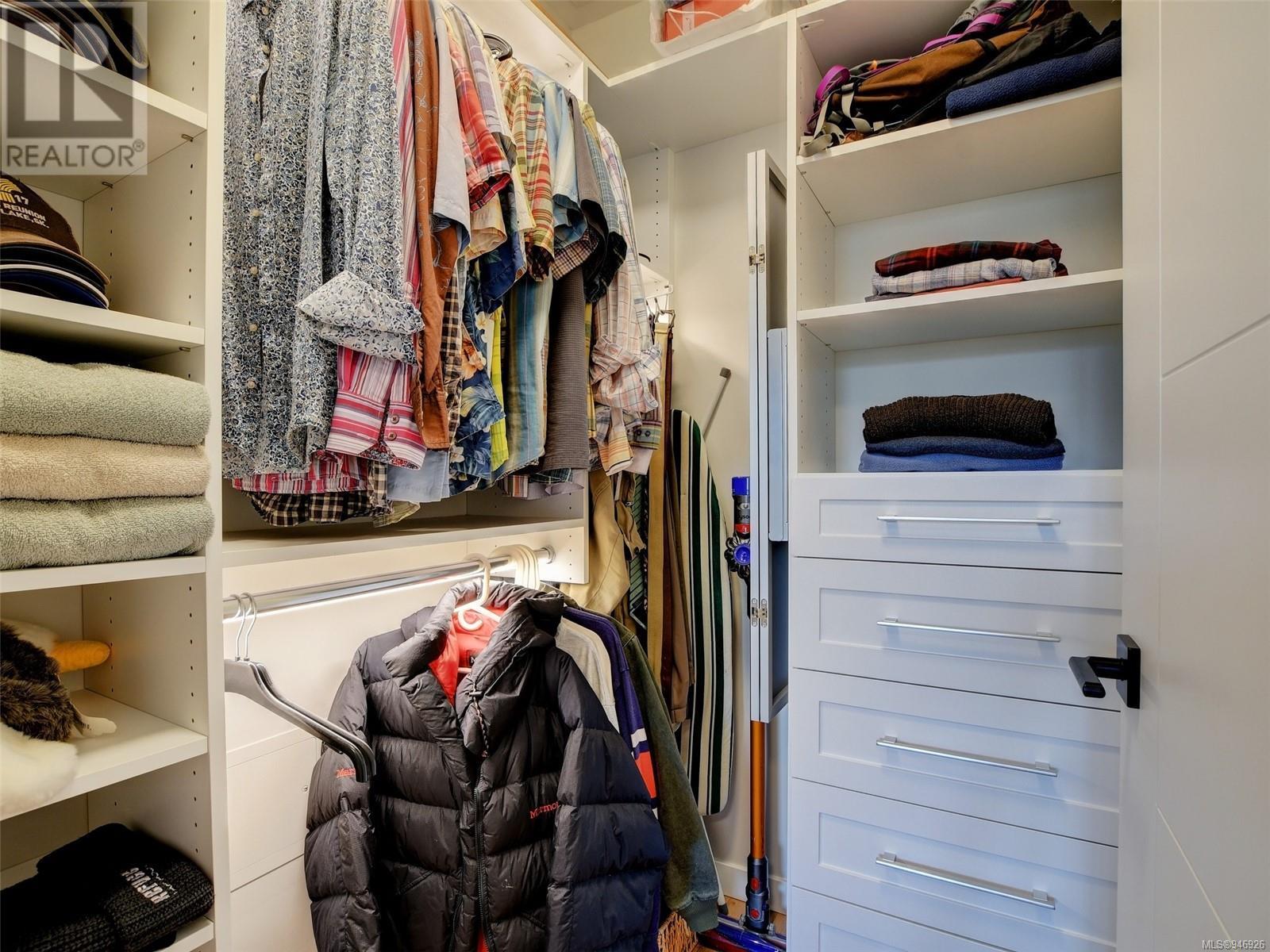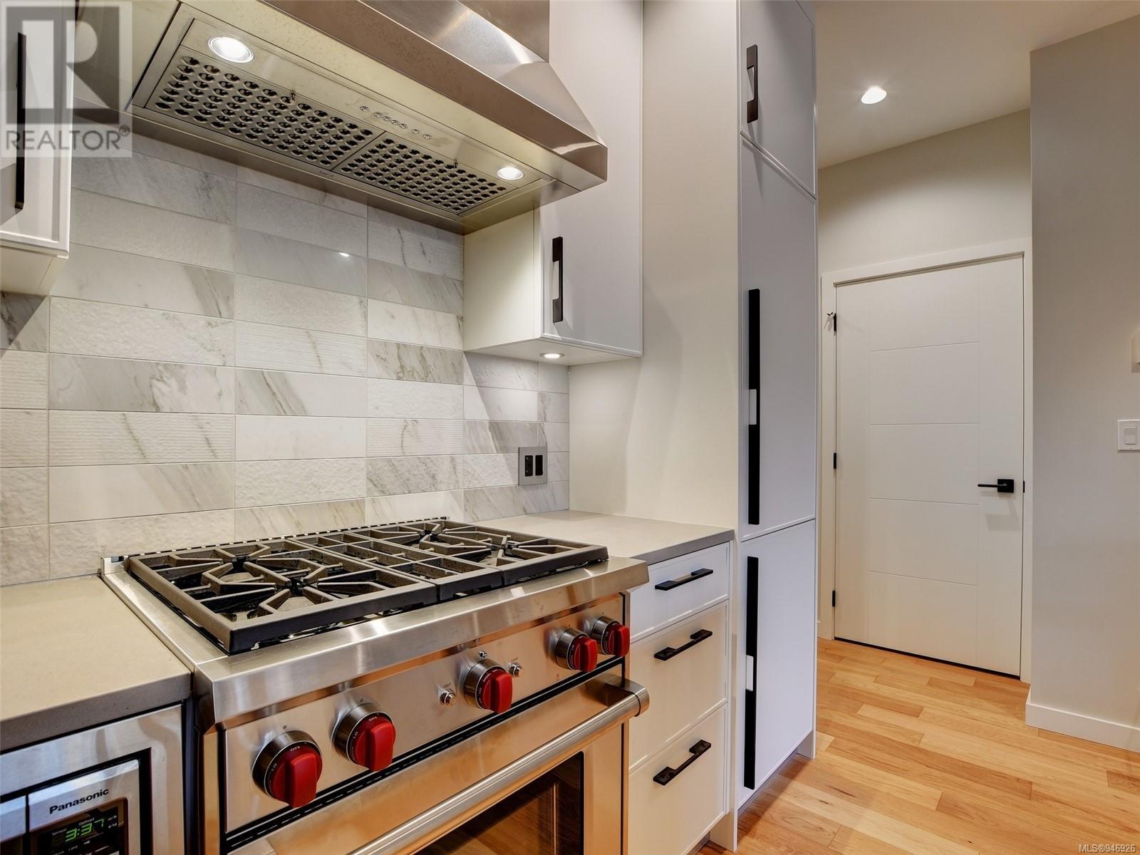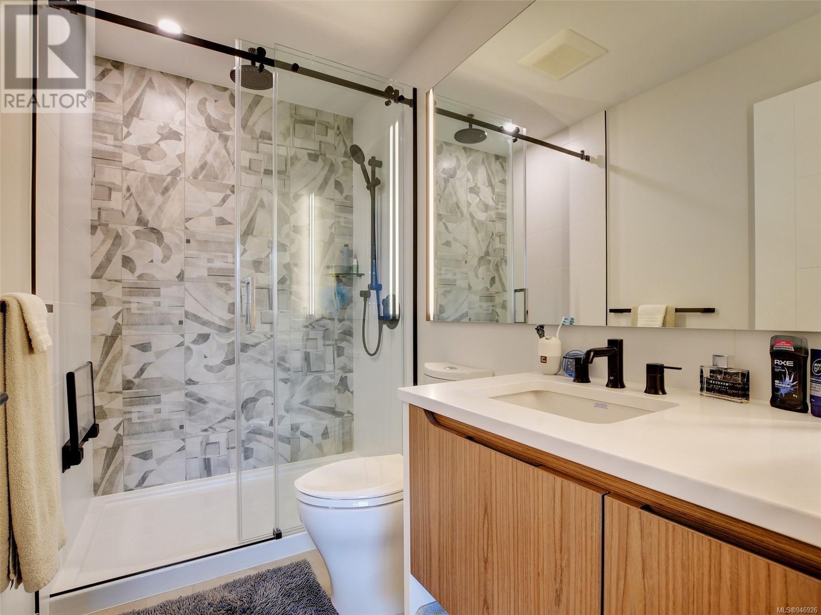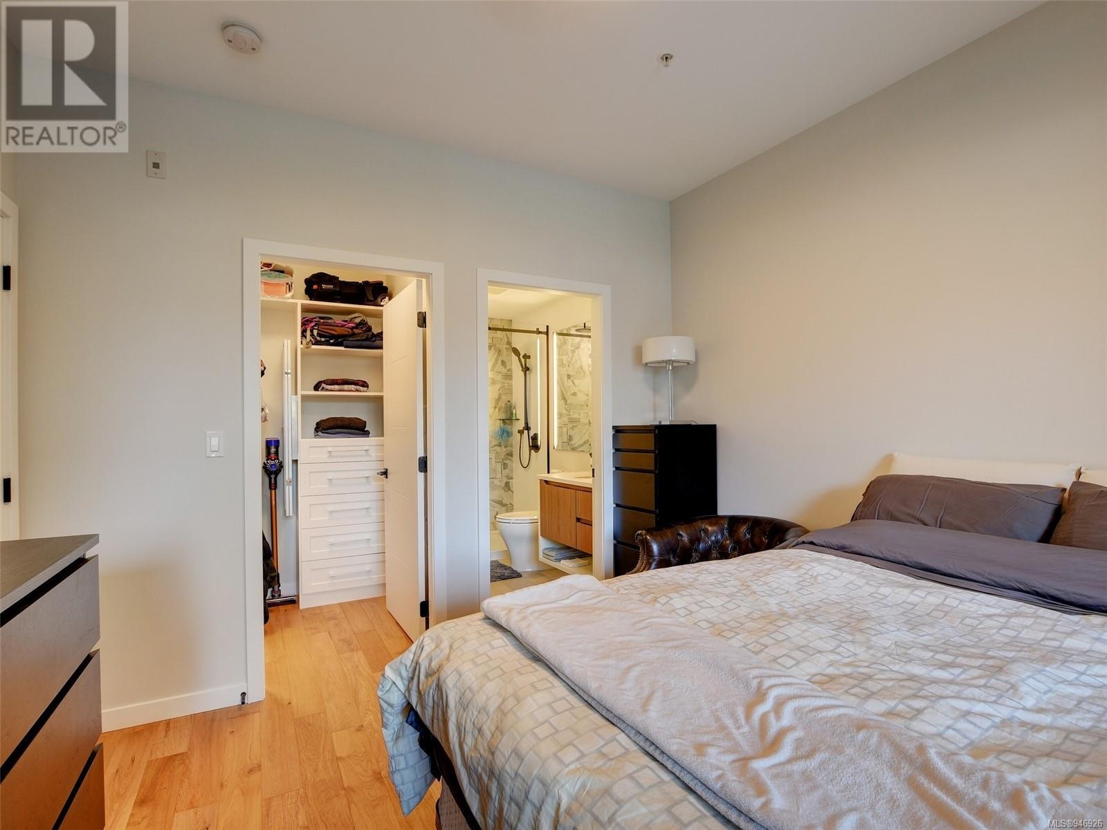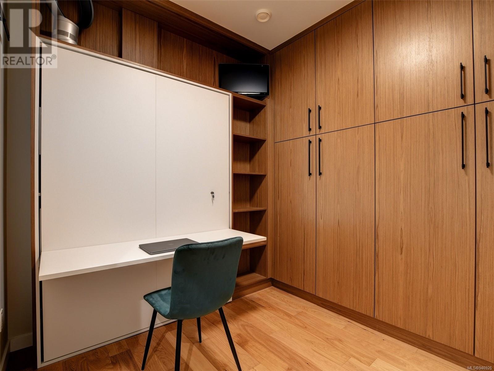 Beautiful 2 bed/2 Bath condo in the coveted Oaks building of Bellewood Park which was just named the Best condo and multifamily project in this years CARE awards. Hardwood floors through out create a warm and modern feel in this large and well appointed condo which has a great functional layout and plenty of built in storage. The stunning kitchen has high-end appliances including a Wolf gas range and Fisher and Paykel double drawer dishwasher. The large quartz kitchen island provides seating for 3 and plenty of counter space and the open plan living and dining room is centred around the electric fireplace and has room for large couches and dining room table. With 9 ft ceilings throughout and large windows overlooking mature oak trees and gardens provide this unit with a great outlook. The covered balcony has a BBQ hook up and a built in heater enabling year round use. The principle bedroom has a large walk in closet with built-ins and the ensuite bathroom has heated floors and a beautifully tiled walk-in shower. The secondary bedroom is a multi-use space with built in cabinetry and a Murphy bed. When folded away it creates a very useable office style space with mounted desk top. The unit benefits from a full size in-suite washer and dryer. Other upgrades include a dedicated EV charger in directly in the parking stall ($10k upgrade) and heating, cooling and ventilation. All this in a premium built concrete building with concierge and close to amenities. (id:22211)