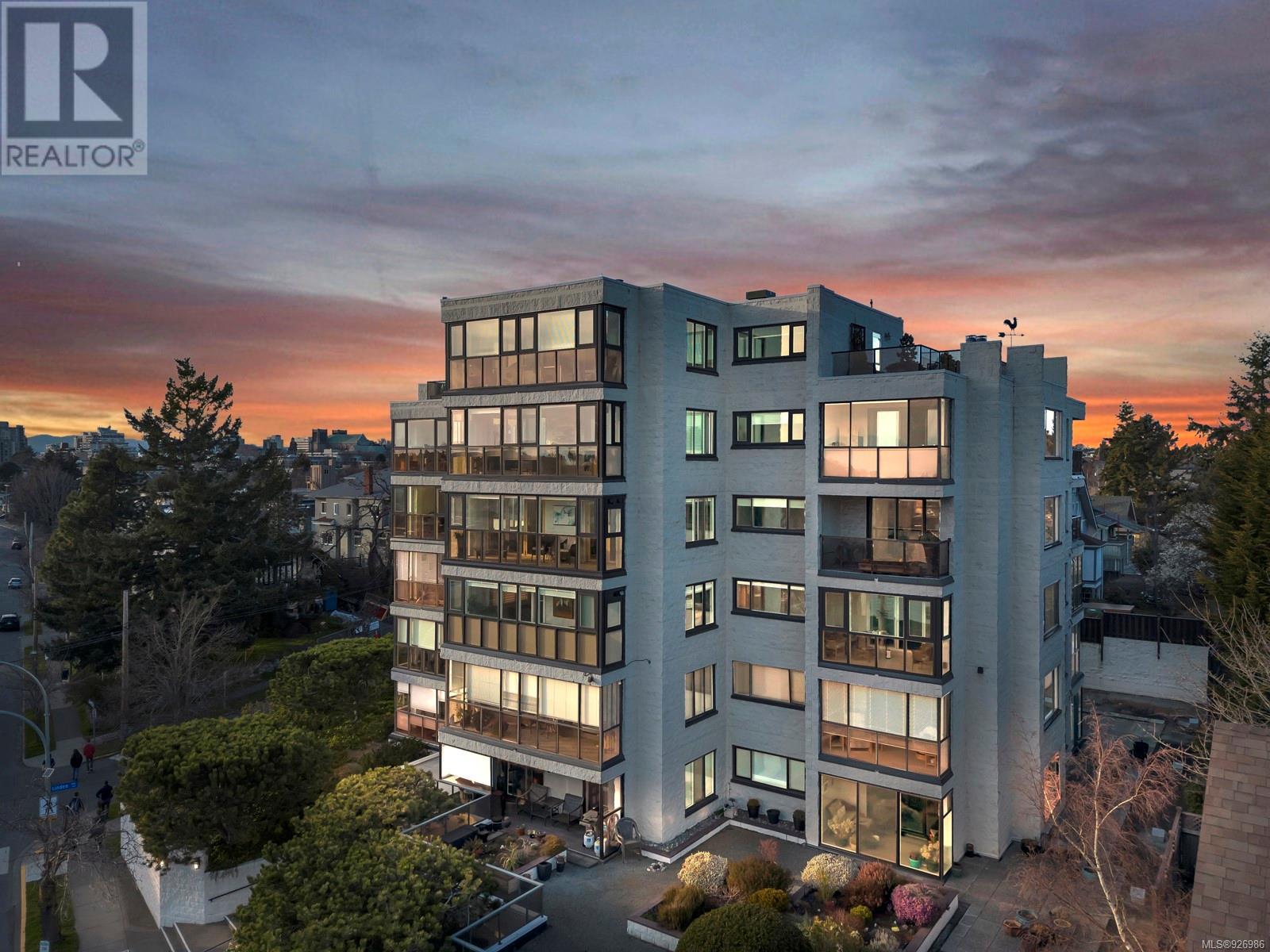 -Welcome to 1204 Fairfield Rd- An amazing opportunity to own the sub-penthouse suite in Linfield House, a steel and concrete building in the desirable Fairfield neighborhood. This bright and updated 2 bed 2 bath unit is an expansive 1840sqft. Stunning East and South facing views of the Olympic Mountains, ocean views across the Strait of Juan De Fuca, and several landmarks including Government House. This 55+ building is very well run and community oriented. The unit comes with one secure underground parking stall, roughed in for EV charger; an additional stall can be rented for $10 a month. Also included is a storage locker and workshop. Features includes a newer kitchen, bathroom in-floor heating, automatic blinds, Hunter Douglas window coverings, hardwood flooring, excellent sound and heat insulation, and in-suite laundry. Walk to Cook Street Village, Dallas Road waterfront, Beacon Hill Park and downtown Victoria . Transit is right outside the building. (id:22211)