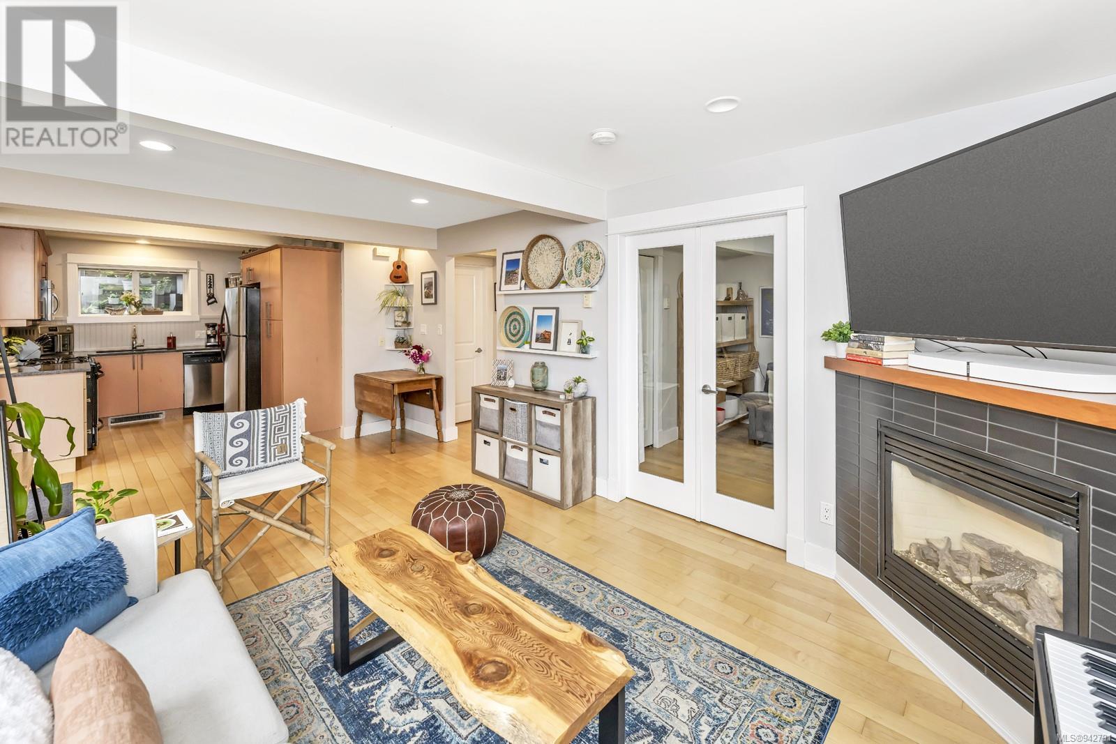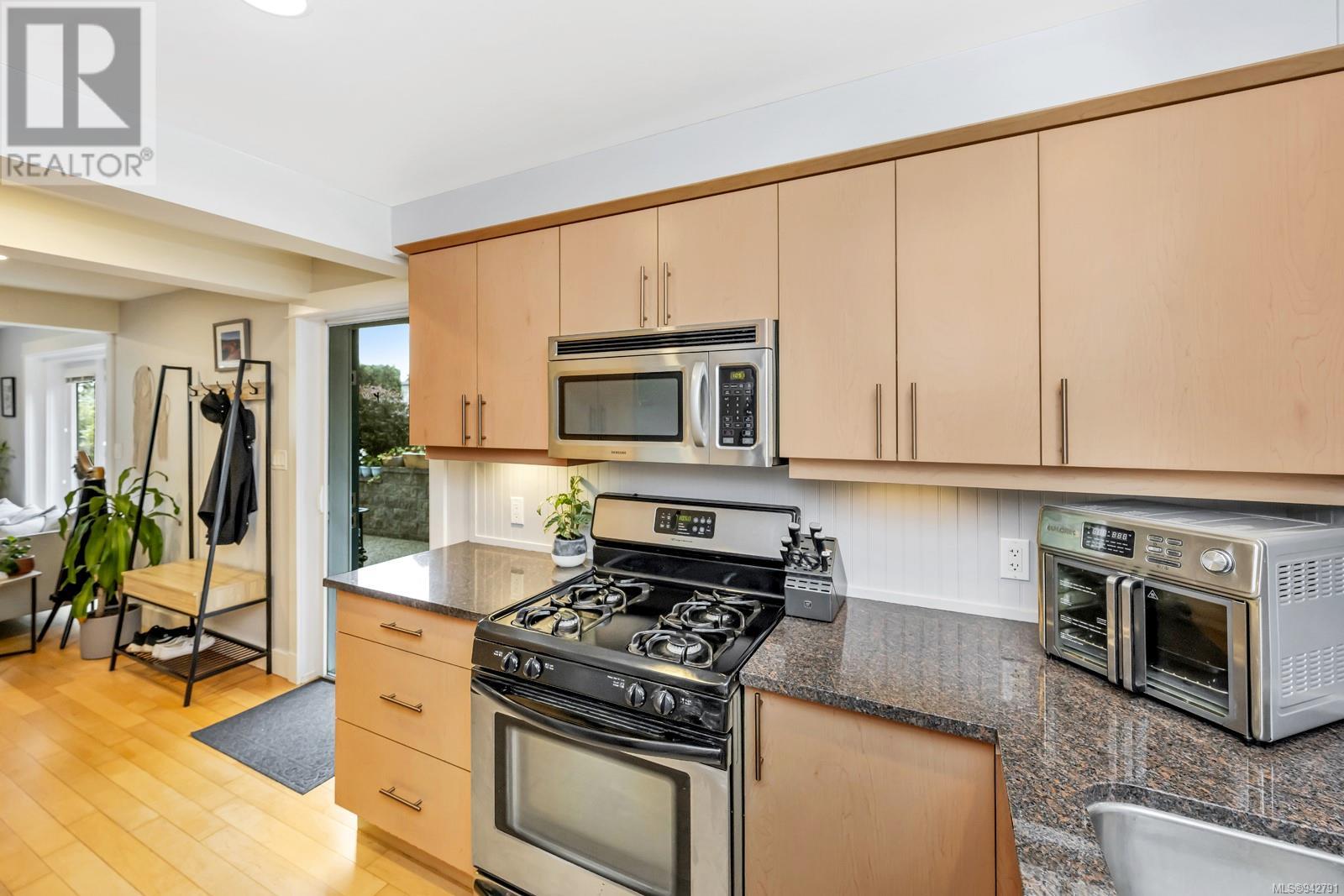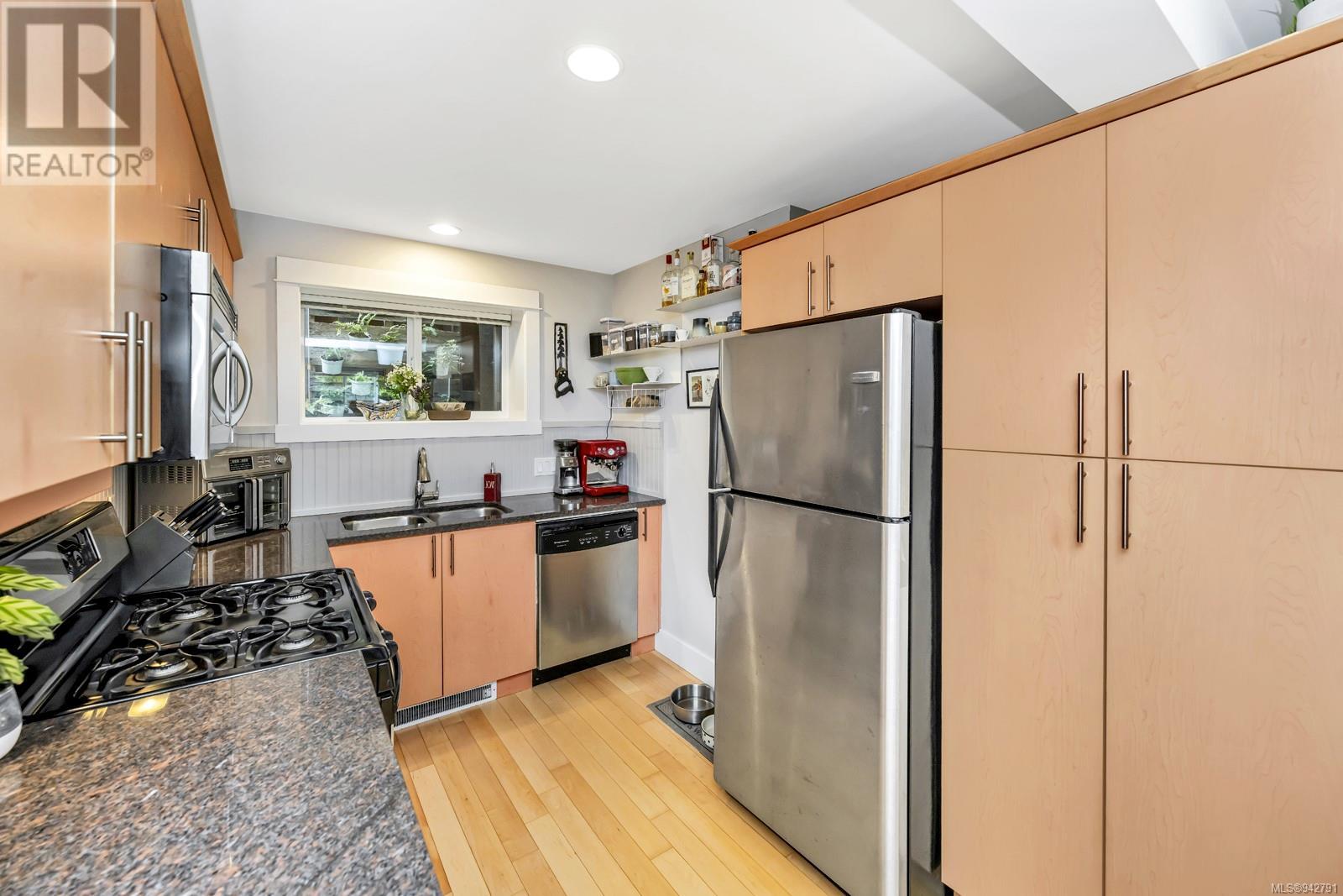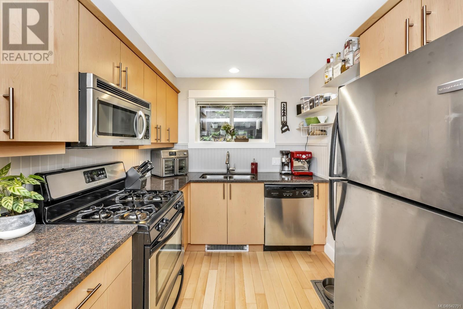 Imagine strolling literally just a few doors down to access the gorgeous waterfront setting where you can kayak, enjoy a swim or just lounge on the dock! This absolutely immaculate & well laid out character conversion condo has so much to offer! 2bdrm/1bath home has a great open concept floorplan...where if you don't need a 2nd bdrm it also works well as an extension to your living space/home office. Located in desirable Vic West area where the community centre, Banfield Park & main strip are at your doorstep. Features you’ll love… beautiful kitchen w/granite counters & Stainless appliances; open concept living/dining that opens onto a tranquil/private patio area, great for entertaining or simply relaxing. Wood floors throughout, gas fireplace. In the rear yard you will find a private storage locker & 1 parking space. Conveniently located close to Galloping Goose trail, bus routes & just minutes to downtown! All sqft approx- buyer verify if important. (id:22211)