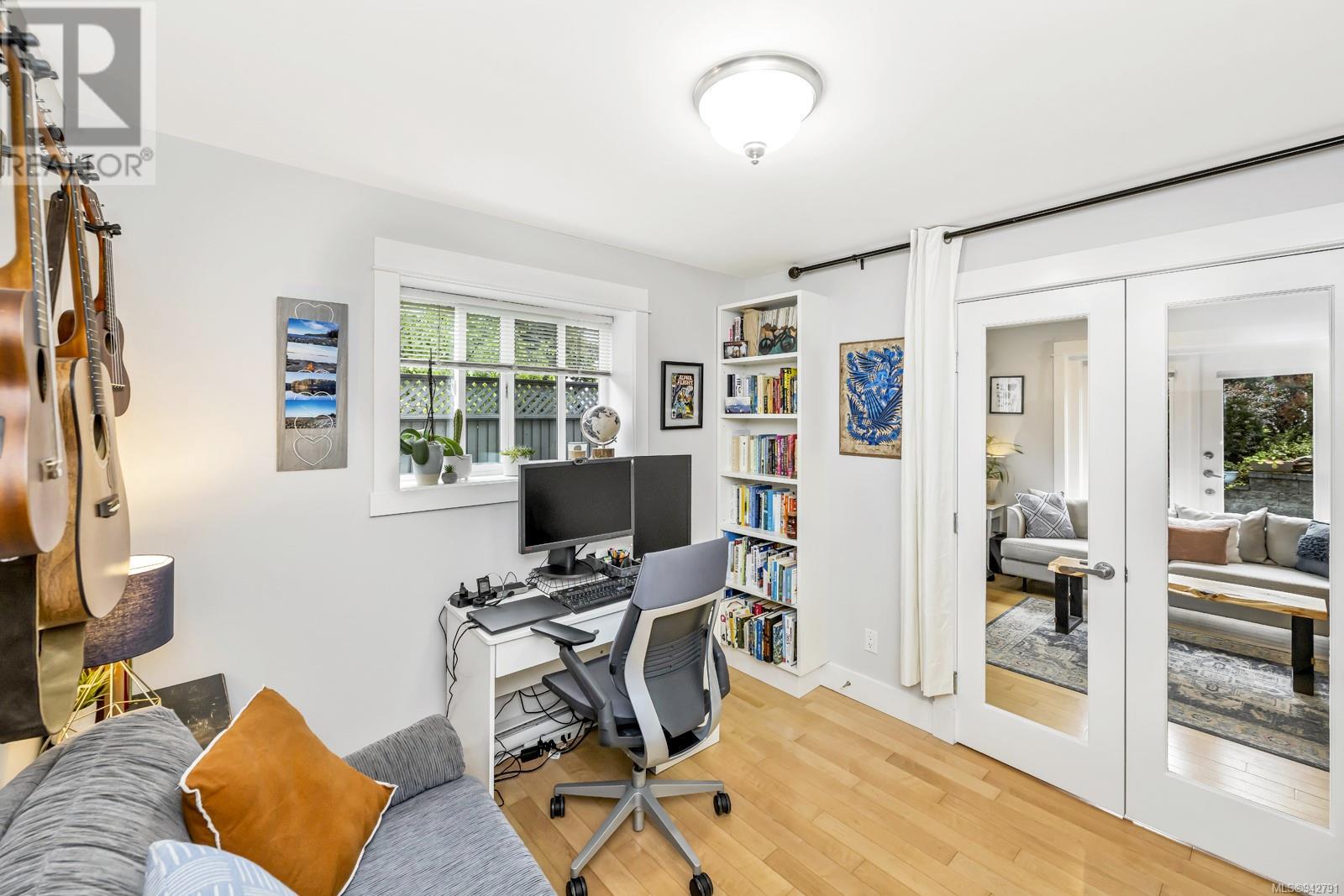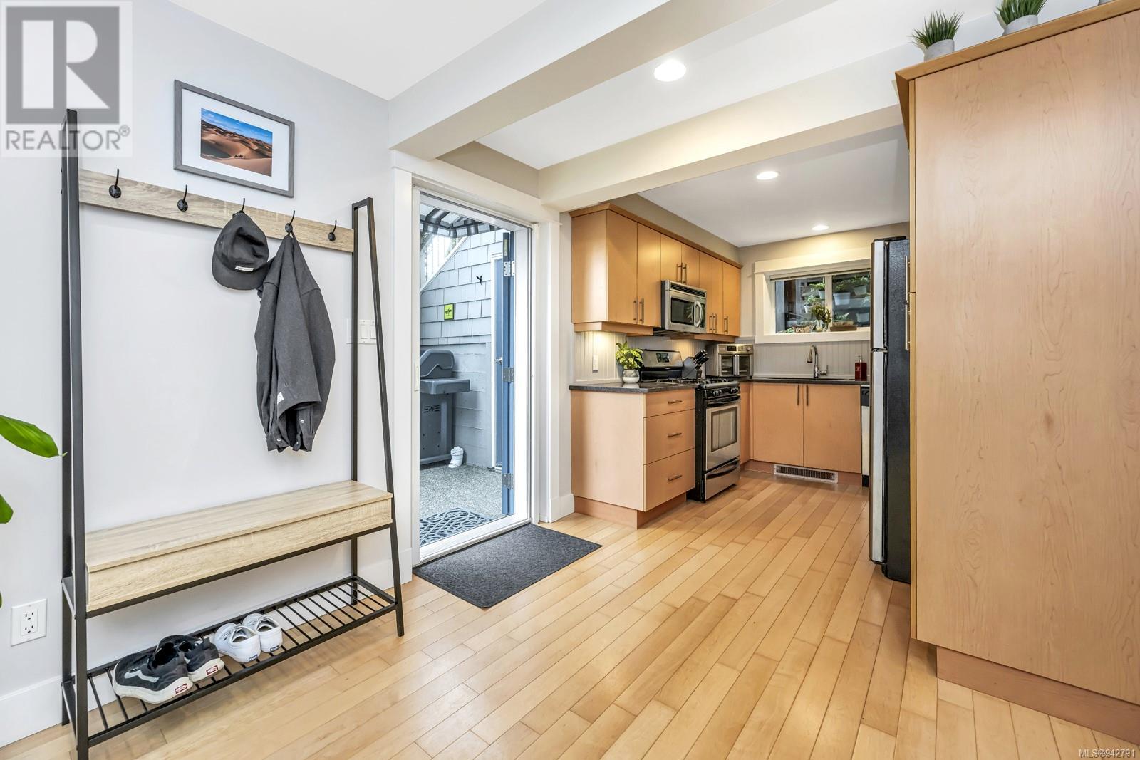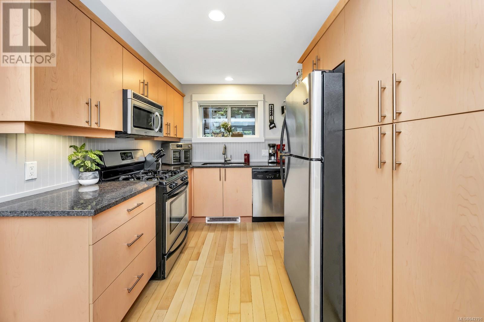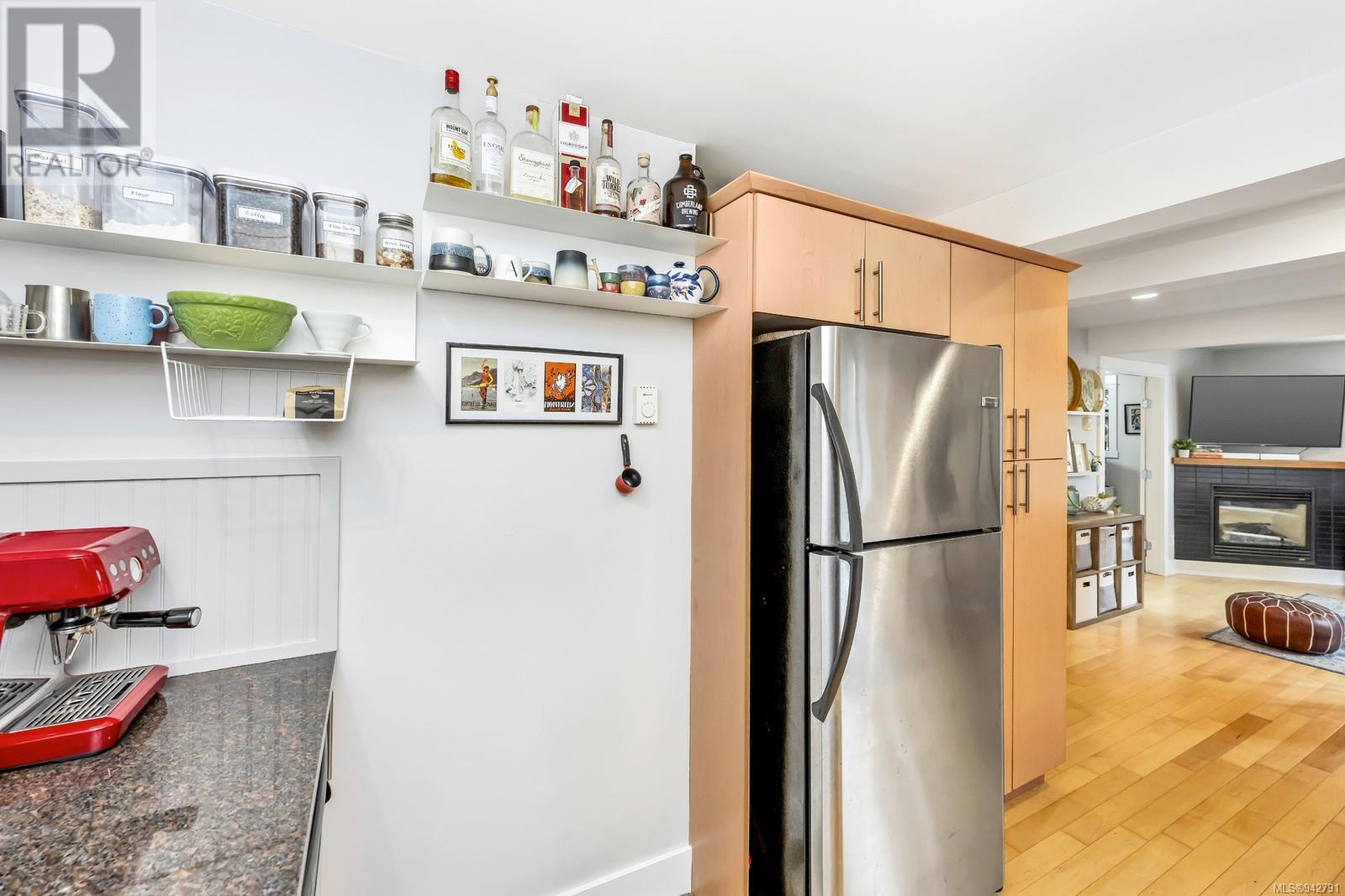 Imagine strolling literally just a few doors down to access the gorgeous waterfront setting where you can kayak, enjoy a swim or just lounge on the dock! This absolutely immaculate & well laid out character conversion condo has so much to offer! 2bdrm/1bath home has a great open concept floorplan...where if you don't need a 2nd bdrm it also works well as an extension to your living space/home office. Located in desirable Vic West area where the community centre, Banfield Park & main strip are at your doorstep. Features you’ll love… beautiful kitchen w/granite counters & Stainless appliances; open concept living/dining that opens onto a tranquil/private patio area, great for entertaining or simply relaxing. Wood floors throughout, gas fireplace. In the rear yard you will find a private storage locker & 1 parking space. Conveniently located close to Galloping Goose trail, bus routes & just minutes to downtown! All sqft approx- buyer verify if important. (id:22211)