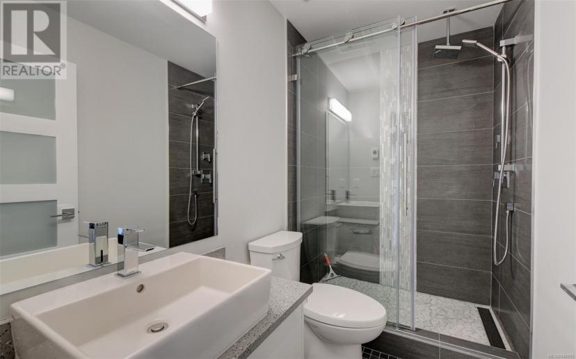 Top of the line studio in today’s market! The Wade is sure to impress. This bustling neighbourhood is extremely dynamic with the new Save-On Foods and a wide variety of amenities. Sustainability and health in mind with the unique amenities integrated in this design. Be your own beekeeper with the common beehive, fruit trees, fresh air exchange, dedicated garden plots, and Alkaline water treatment. This junior 1 bedroom is south facing with loads of natural light. Impressive high-end integrated appliances, gas cook top, in-suite washer/dryer, and radiant in-floor heating in the spa-like bathroom. Great layout with dedicated sleeping space with sliders for privacy. Large sunny balcony with rare features such as gas BBQ and water hook-ups. Building features multiple common amenities from the rooftop deck with extensive garden, bike storage, quiet courtyard, and a generous secure storage locker. Blocks from a variety of restaurants, tons of bus routes, and the inner harbour. (id:22211)
