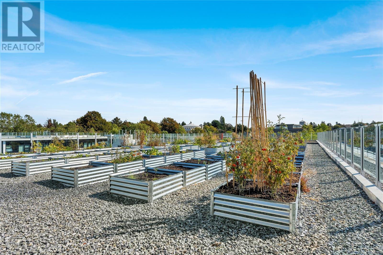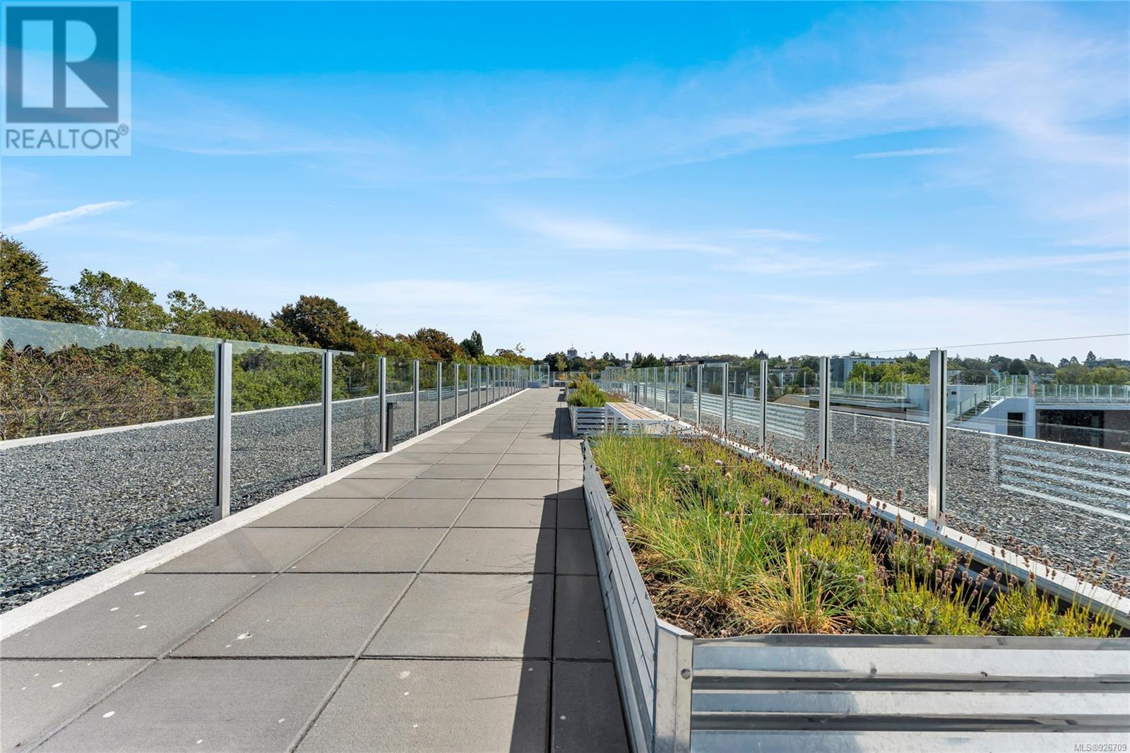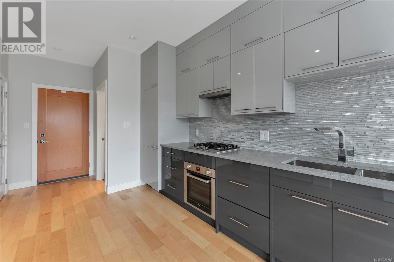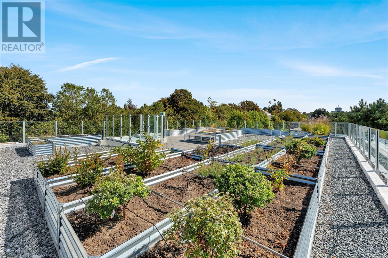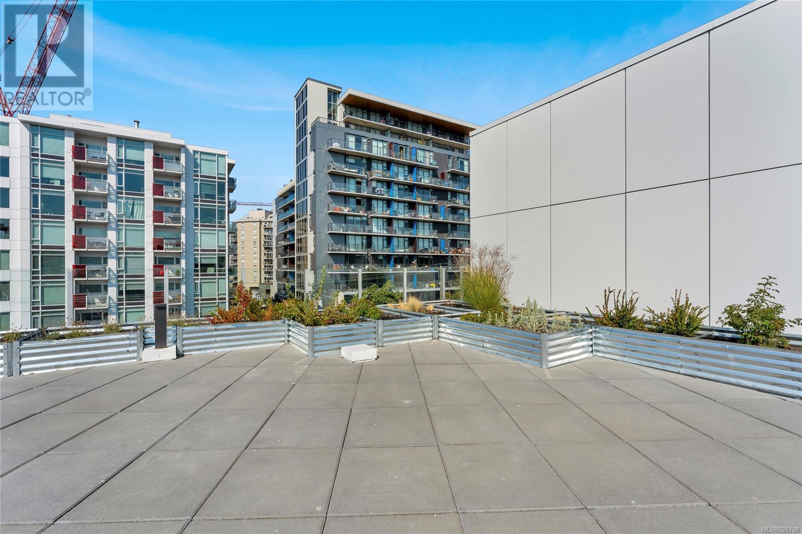 Modern junior 2 bedroom condo steps to the heart of Downtown Victoria! Enjoy the ideal west-coast/urban lifestyle in this boutique multi-dwelling building, complete with a modern kitchen equipped with Bosch stainless steel appliances, gas range, integrated dishwasher and fridge, quartz countertops, and dual-tone cabinetry. As well, this suite features engineered hardwood floors throughout and a beautiful walk-in shower with a rainfall shower head in the bathroom. The sun soaked balcony overlooks the quiet common courtyard and large windows allow for ample natural lighting to flood in. This pet-friendly suite includes parking, in-unit laundry, a separate storage locker and access to a private, secure courtyard and rooftop garden plot with a nearly 360-degree perspective of views of mountains and the Victoria cityscape. (id:22211)