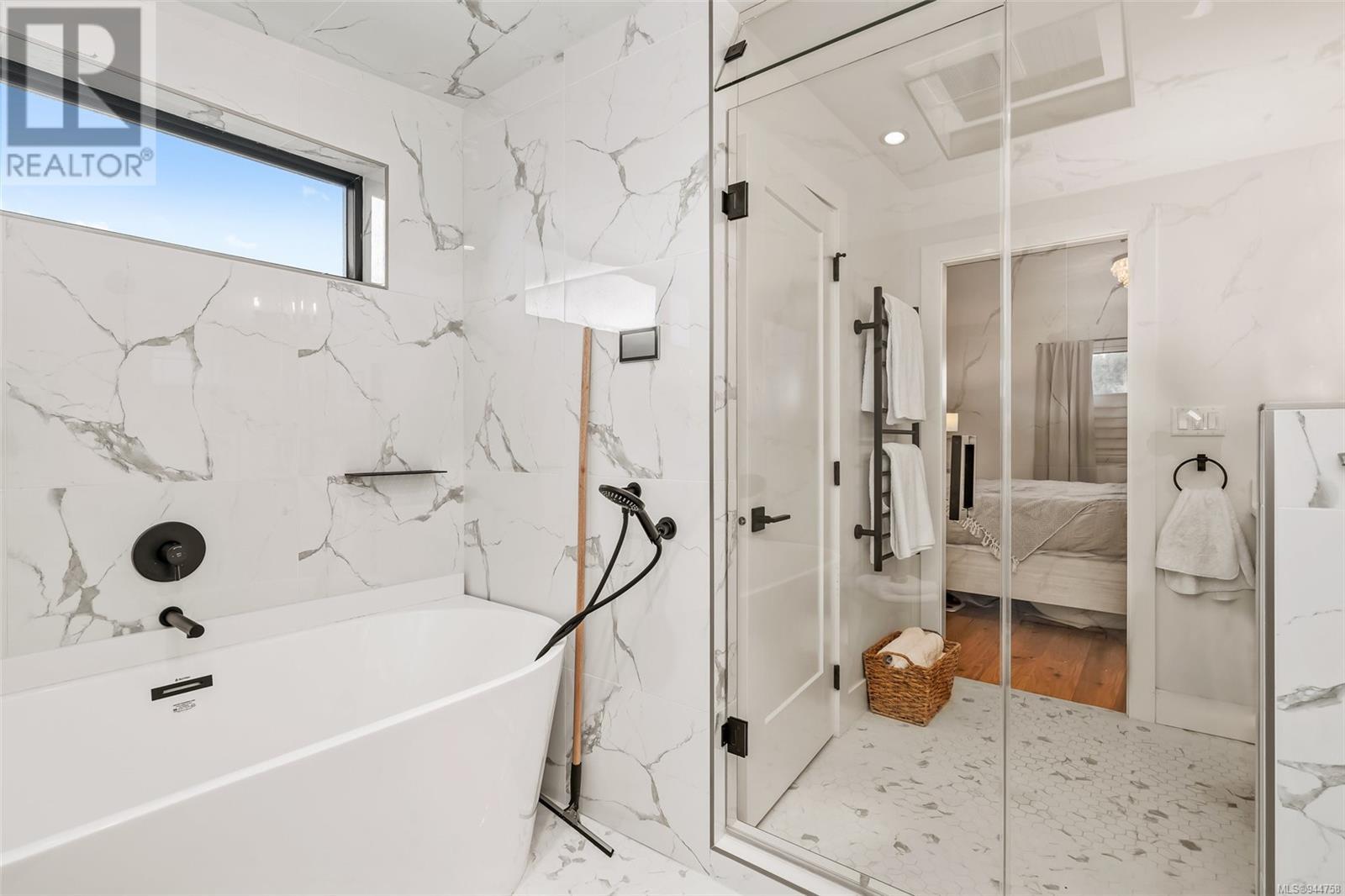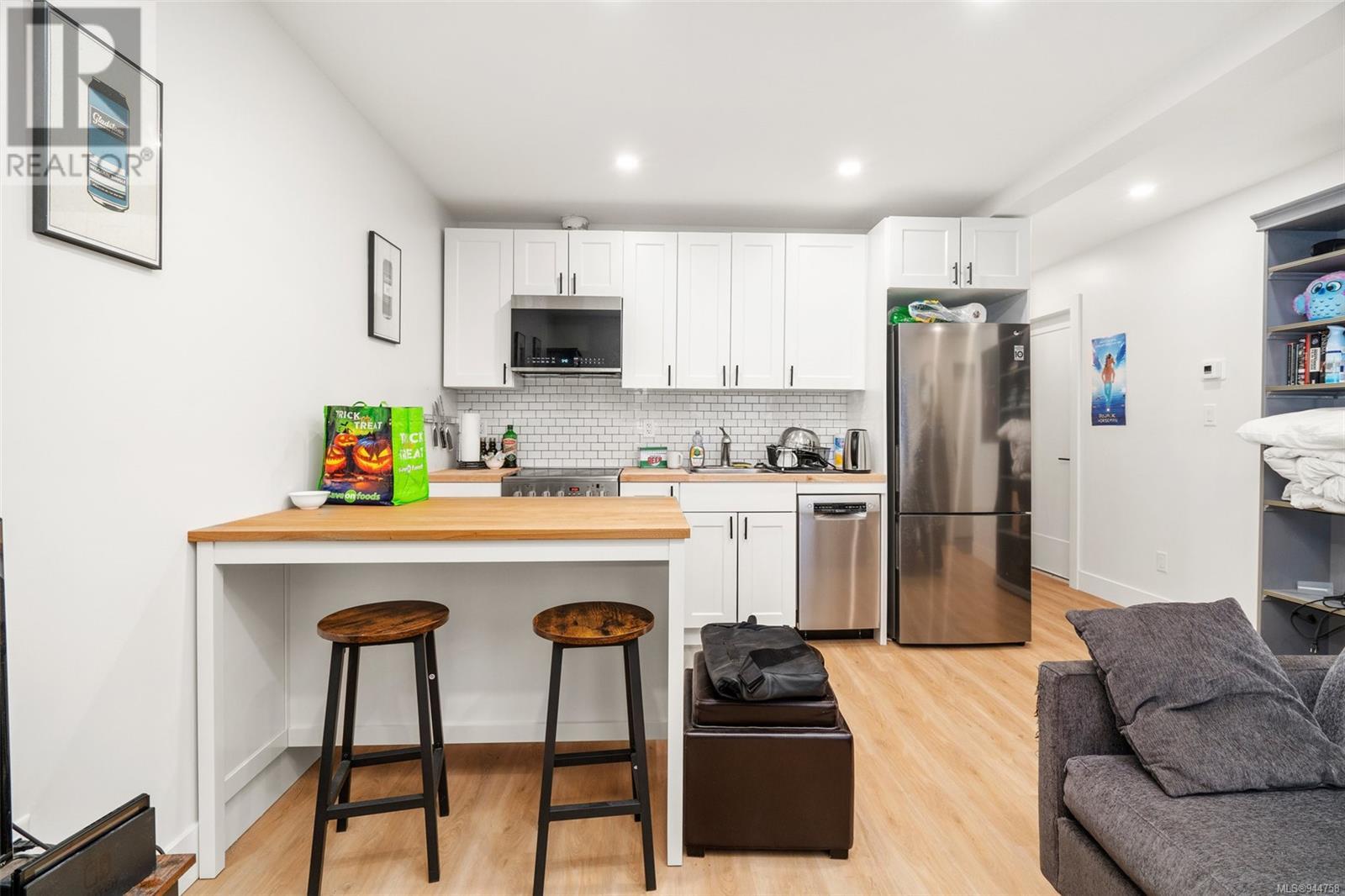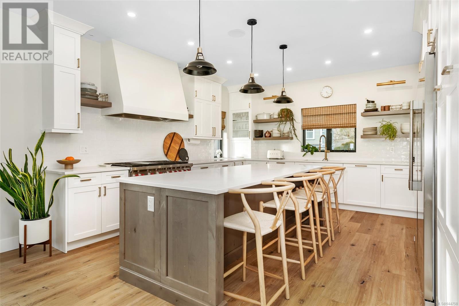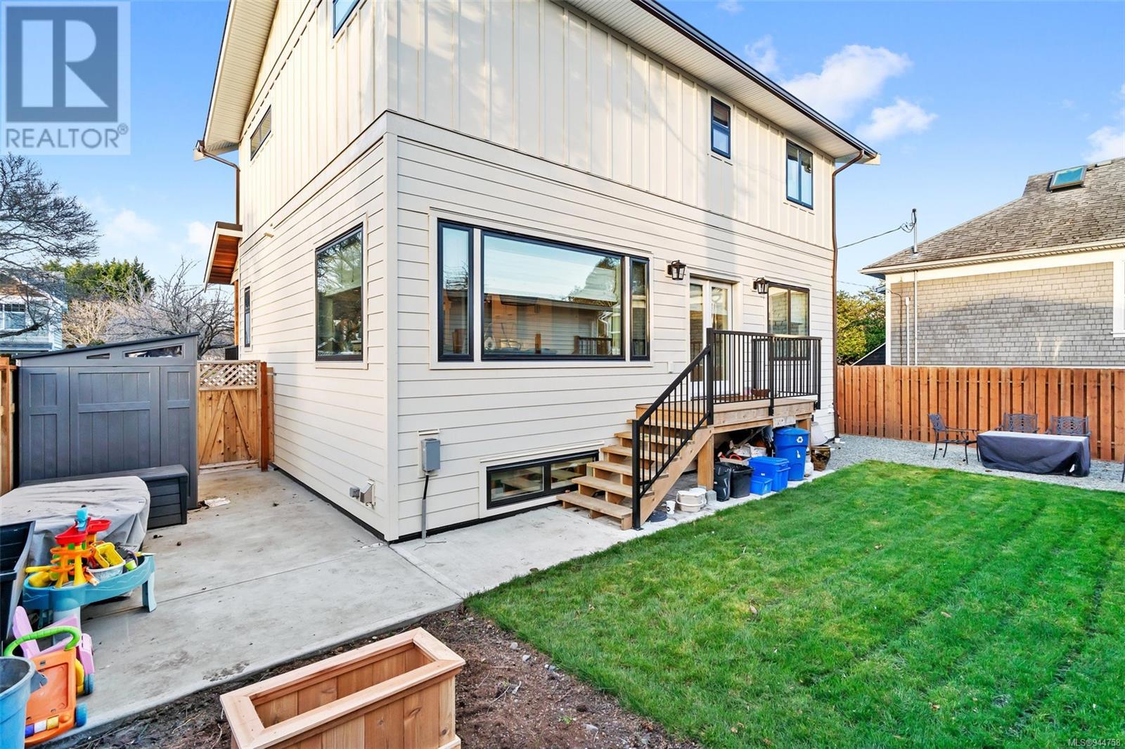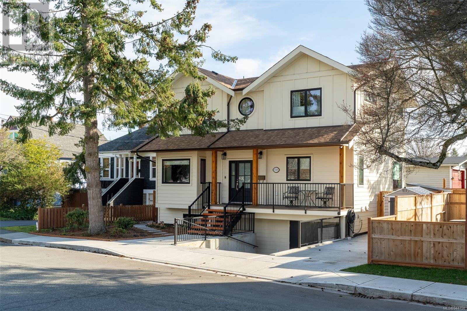 Nestled on a sunny south facing lot in Fernwood sits a custom built 4 bedroom, 4 bathroom home with designer details. Upon entry, the wow factor welcomes you as you walk into a desirable open concept floorplan flooded with natural light. A stunning high end dream kitchen greets you on the main level which flows nicely into the large dining area and cozy family room. If you work from home, the main level also offers an office w/ custom built-ins & a powder room. As you head upstairs, the primary bedroom boasts a bright walk-in closet & a jaw dropping 6 pc ensuite with a steam shower room, a free standing tub, & a double vanity. Two add'l beds sit adjacent as well as a full bath & laundry room. Your family will love the lower media room & gym. Bonus 1 bedroom add'l accommodation (furnished). Lovely bright backyard, perfect for kids or your furry friends. Located just a short distance to Fernwood Village, 5 mins to the beach, and mere minutes to downtown, this location can't be beat. (id:22211)