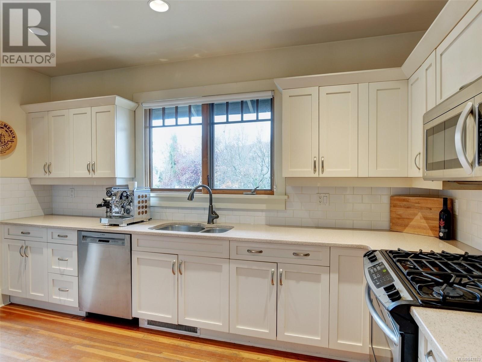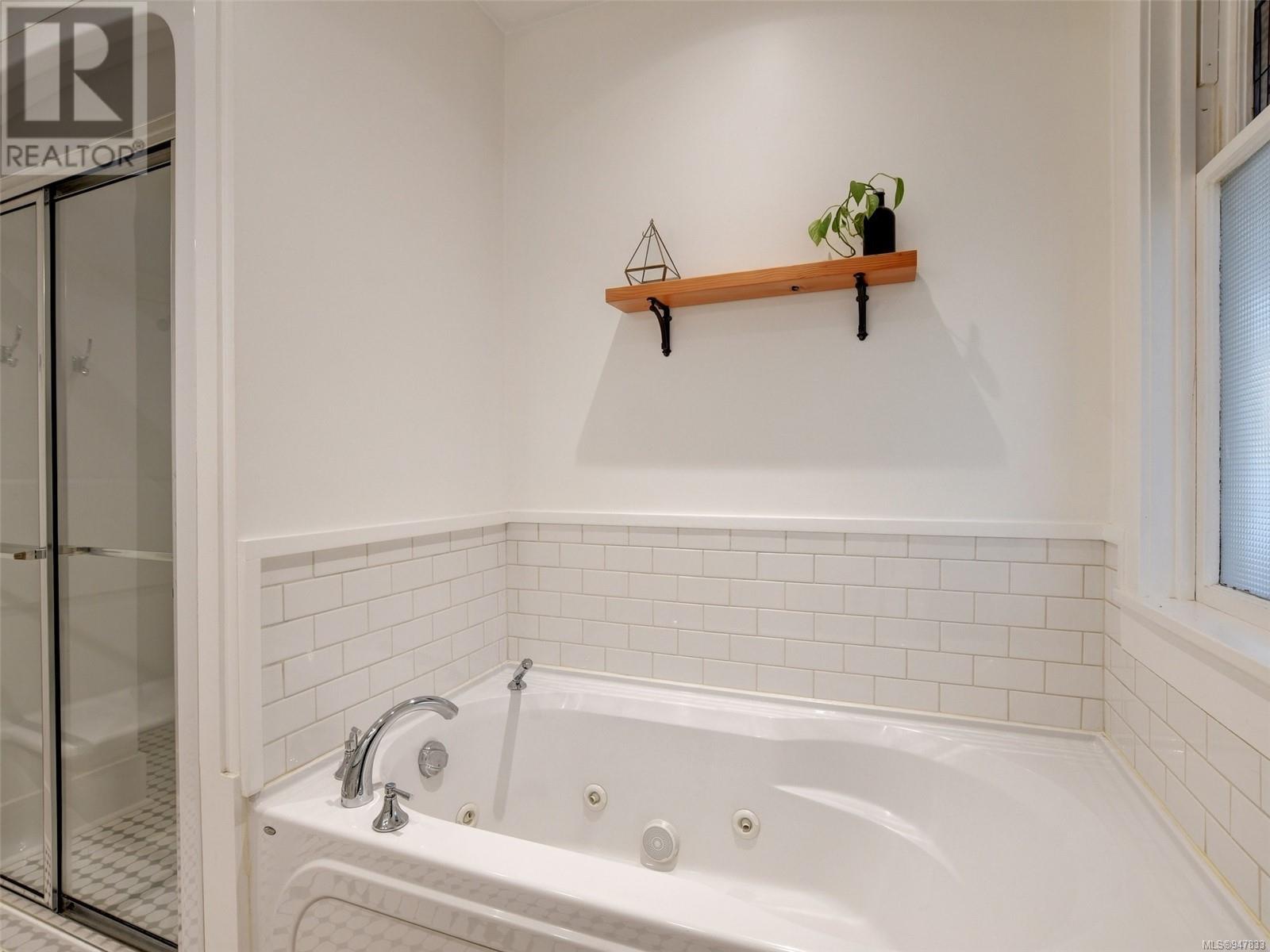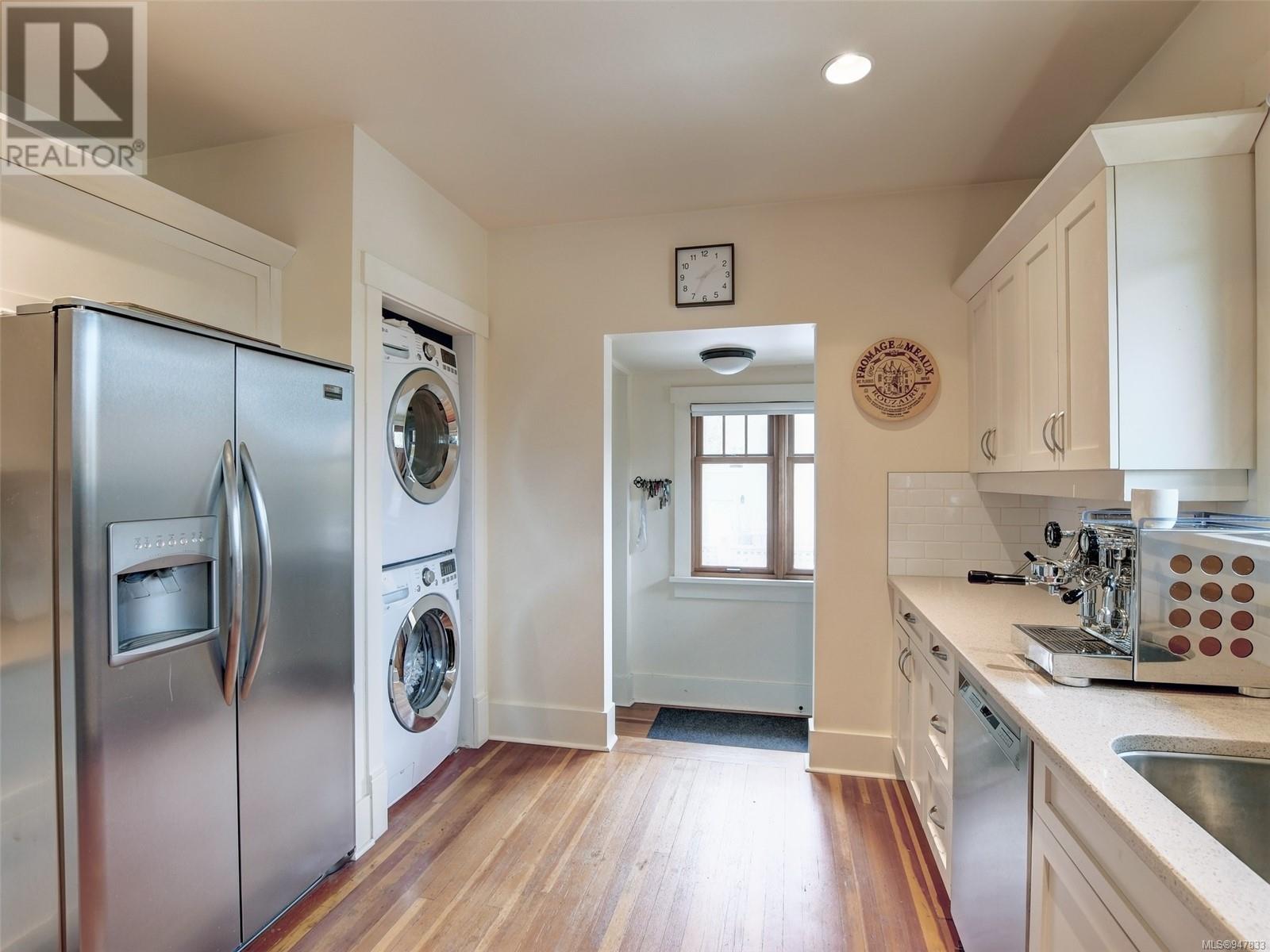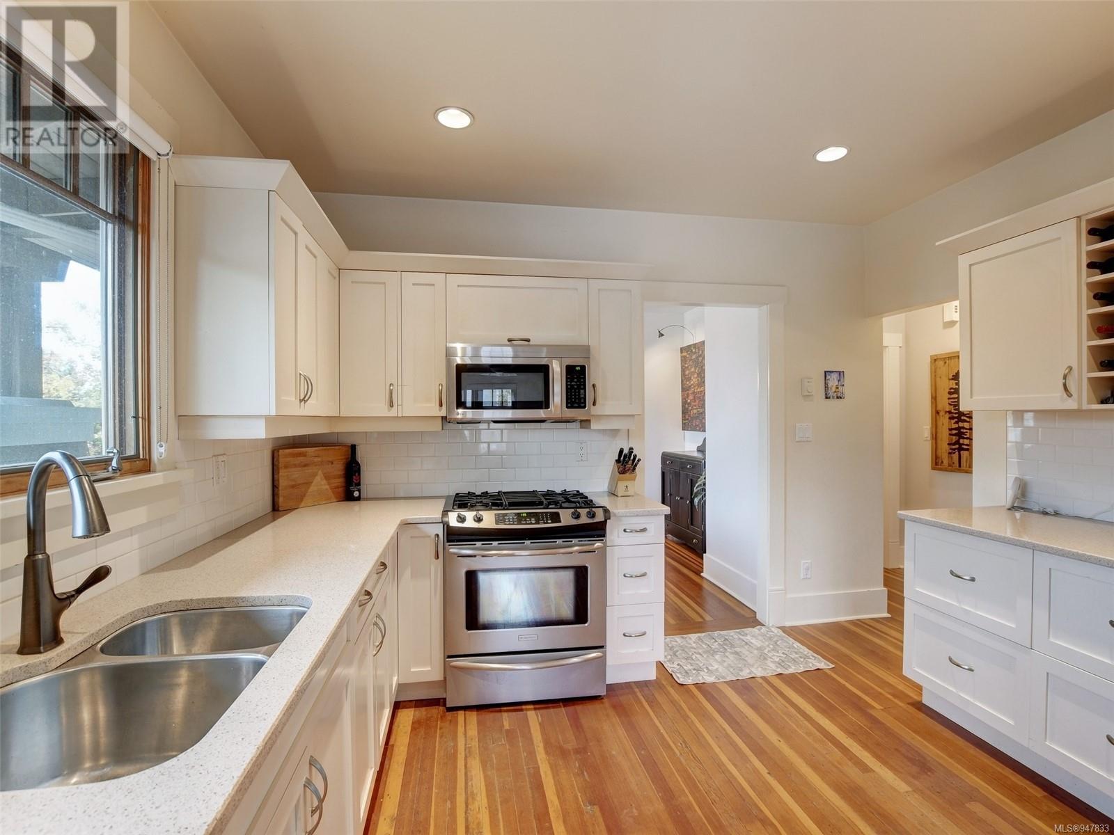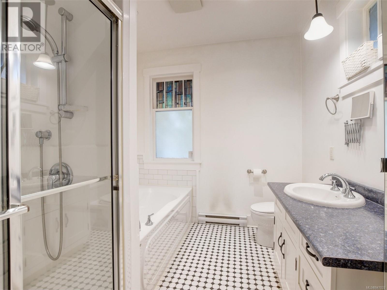 Mortgage helper with primary bedroom on main level...Great retirement home with income. Come see this grand 1913 home. Completely lifted - renovated. Old world charm and new fused together in this 5 bedroom 4 bathroom home. 9ft ceilings on main level give a wonderful airy feeling. Centrally located one block from Jubilee Hospital on a quiet street. This beauty has an incredibly flexible floor plan: Upstairs old world charm with fir flooring & custom fir trim windows invite you in. Cozy living room with gas fireplace for cold winter evenings. Large front porch allows for BBQ outdoor patio furniture for those summer nights. Primary bedroom with ensuite on main level..heated flooring in the ensuite and main bath. 2nd bedroom on main as well. Large formal dining room with access to small balcony. Here you can entertain to your hearts content. Kitchen has quartz counter tops and upgraded appliances-if you love cooking this is a great layout/efficiency for the chef & sous chef. Full height basement has fully self contained suite 2/3 bedrooms and 2 bathrooms with heated flooring. The floor plan allows for the 3rd bedroom & bath as a flex space..use for the suite or main house. Easy care lot...room for gardens. A wonderful little park right in the neighbourhood. Walk to all amenities..coffee shops, shopping and a loads of restaurants. Separate garage 16x10. 3 crawl space storage areas. Easy care lot. A fantastic offering with a wonderful inlaw or mortgage helper suite. (id:22211)