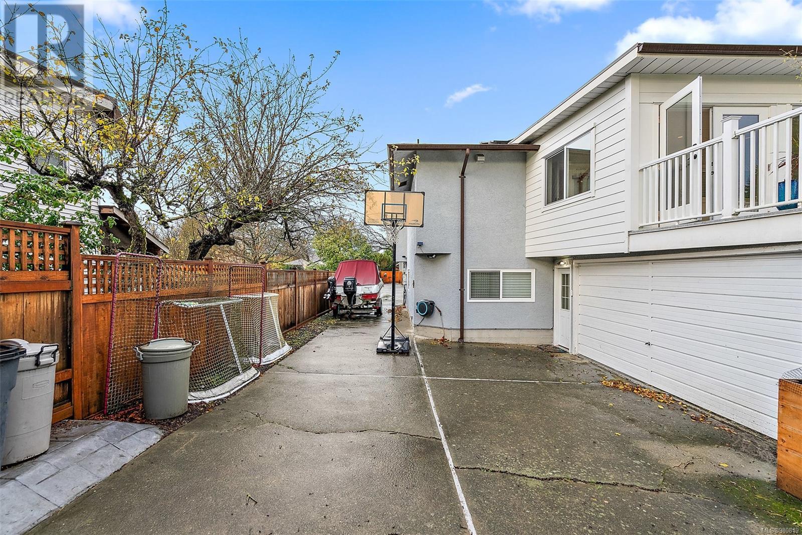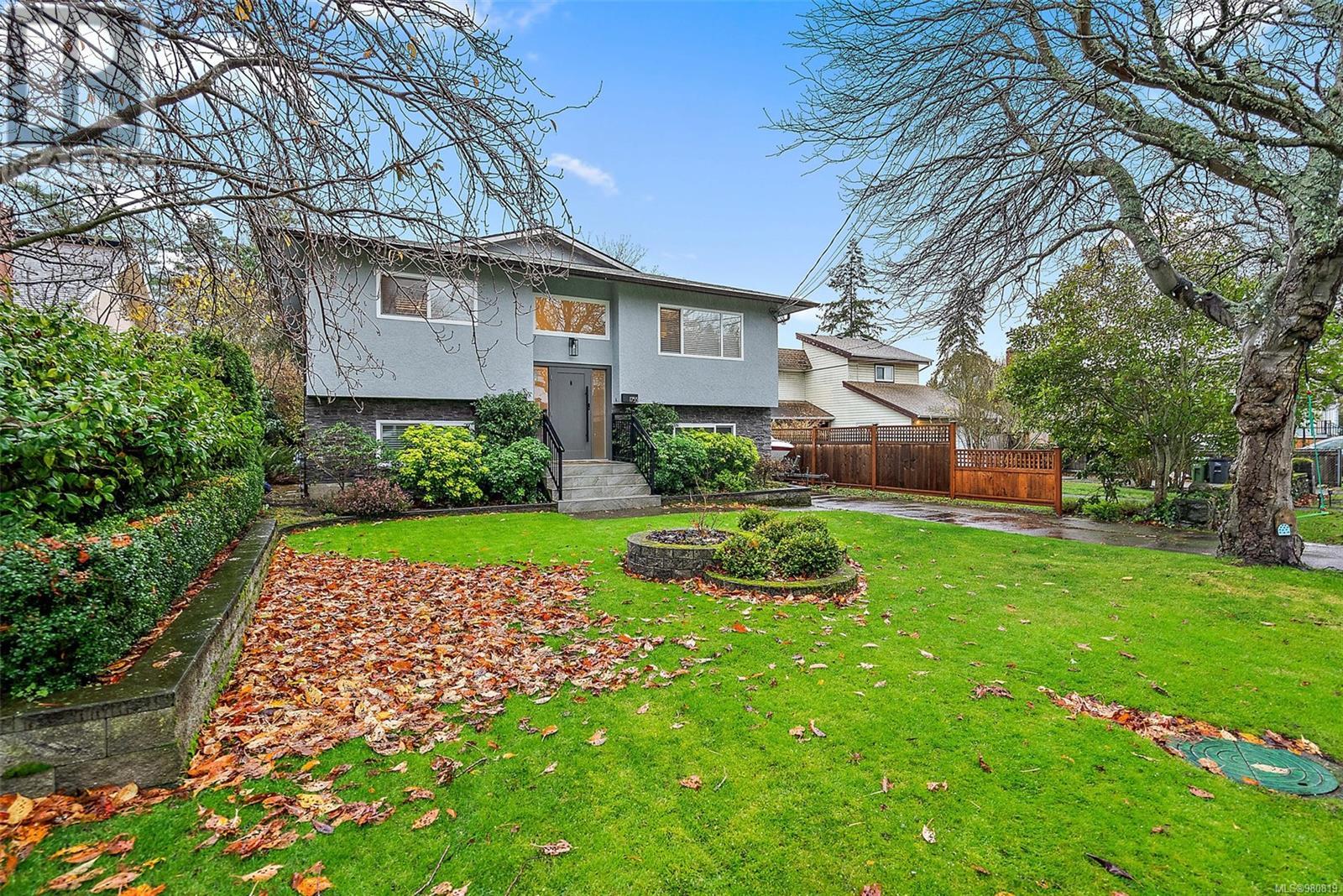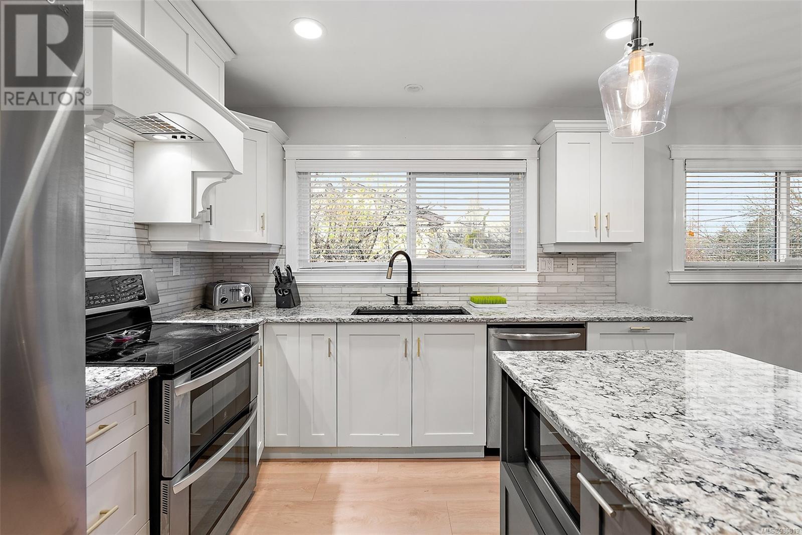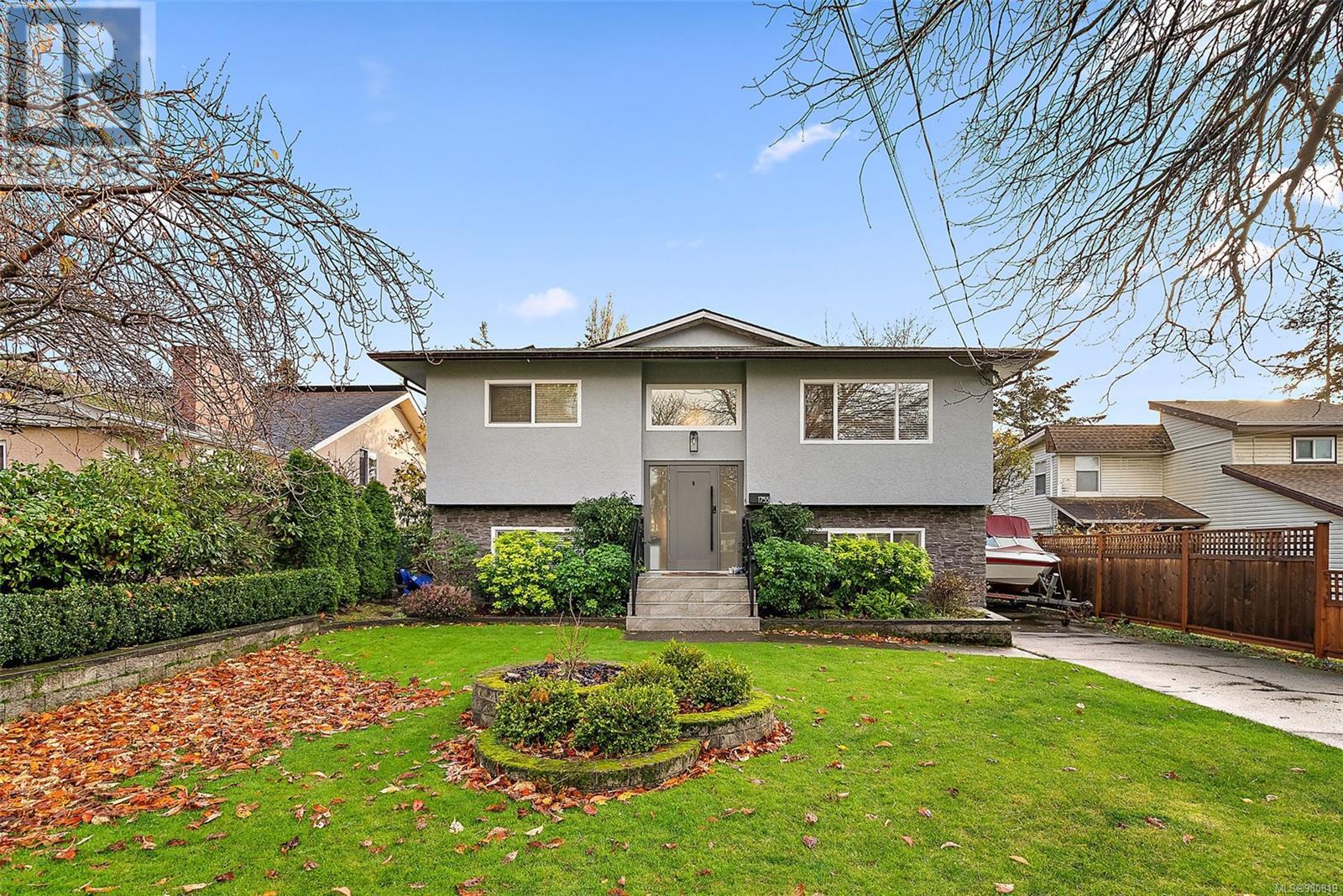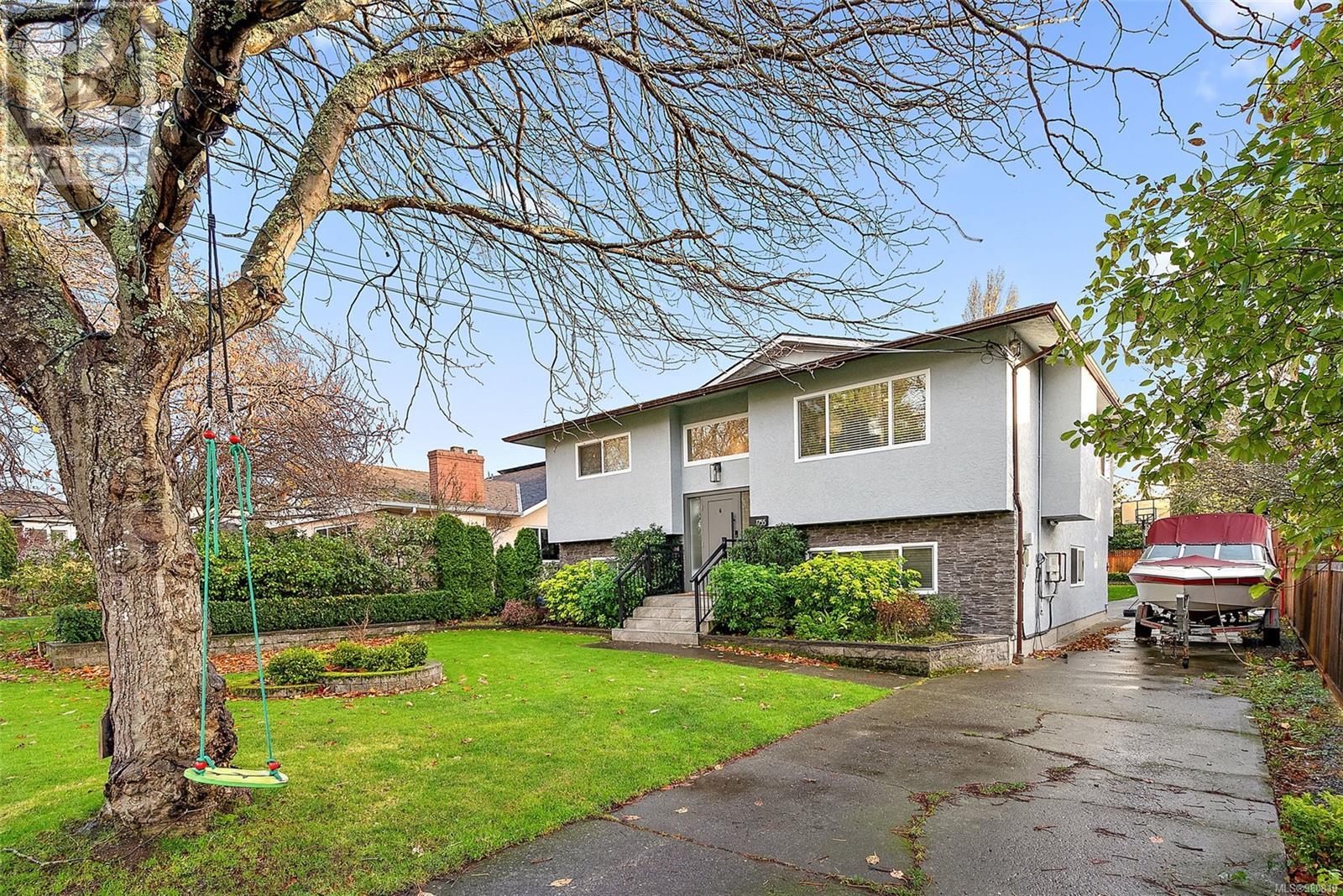 Welcome to your dream home located on Oak Bay border. Open floor plan with living room, dining room, and a beautiful kitchen. This home features a solar roof that offsets 60% of your hydro costs, saving you money and reducing your carbon footprint. Enjoy the south-facing spacious backyard, perfect for relaxing, children, pets or entertaining guests. Be drenched in sun on the back deck or sunroom which could be another bedroom. Irrigation system to keep your yard looking lush and green. Updates to the home include new windows, front door and railings, bathrooms, and laminate flooring throughout for easy maintenance. Primary bedroom offers an ensuite with a double sink vanity. Downstairs, you'll find a bedroom, workout room plus a 1 bedroom suite. Speckled flooring in the double car garage, providing a space for your vehicles and storage needs. Don't miss out on the opportunity to own this incredible home with plenty of upgrades and features. The friendly neighbourhood is popular with young families with a dead-end location. Walk to Hillside Mall, Oakland's Park, Save-On-Foods, bus routes, and the Jubilee hospital. (id:22211)
