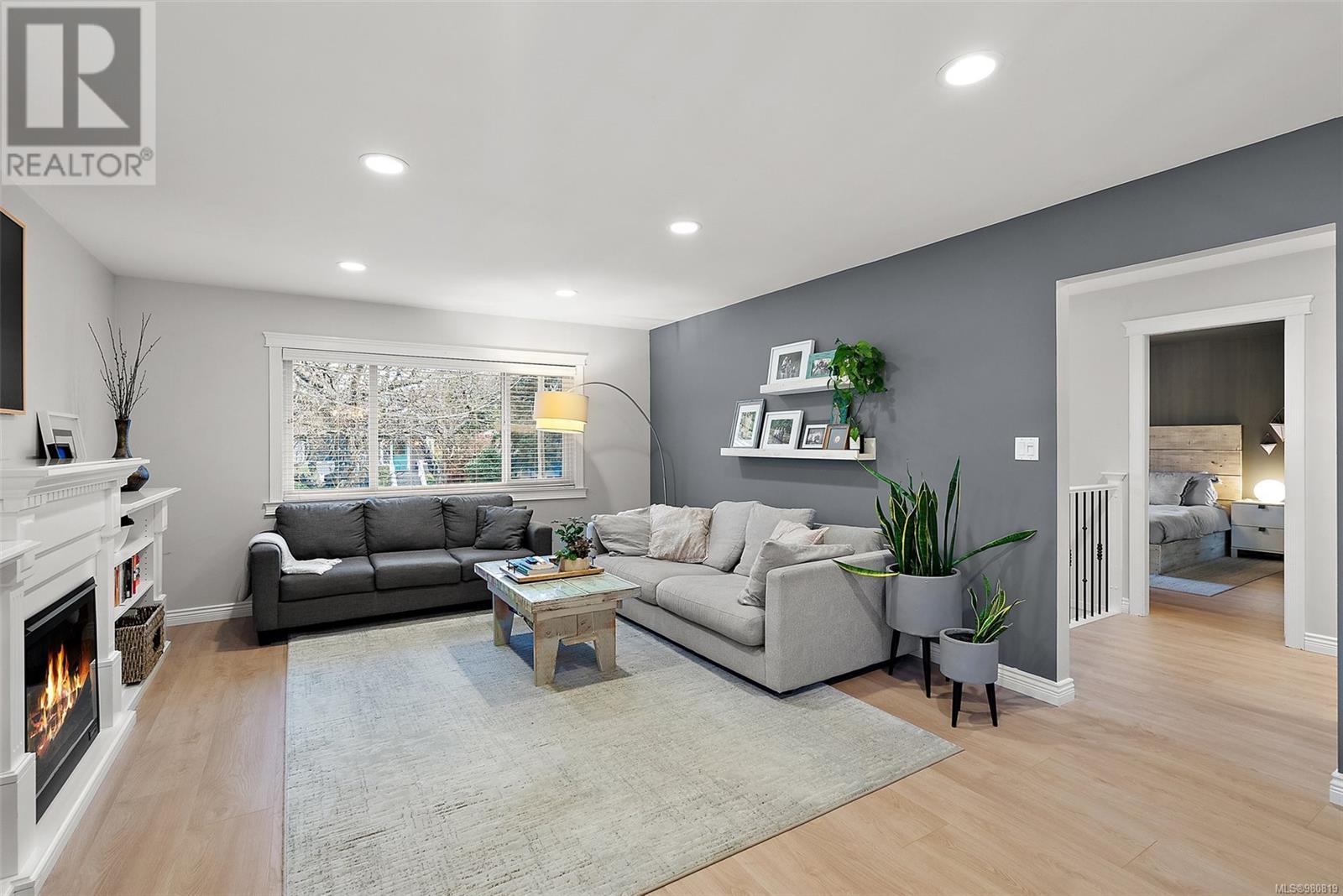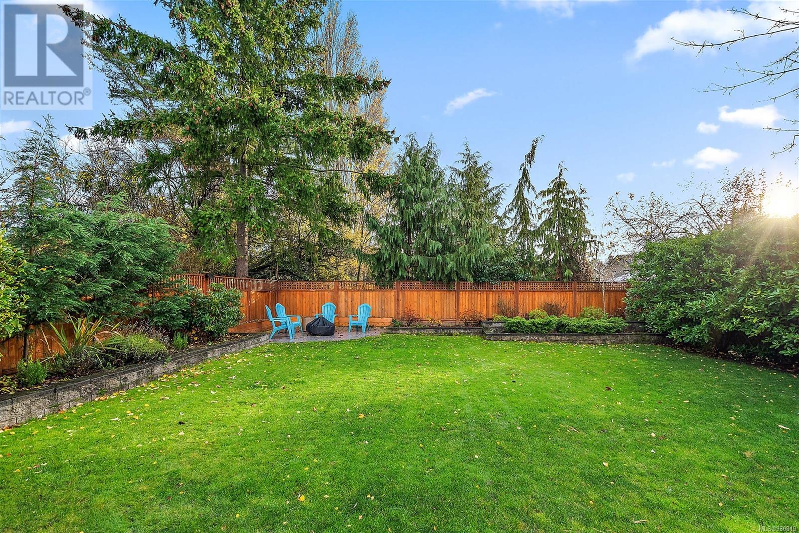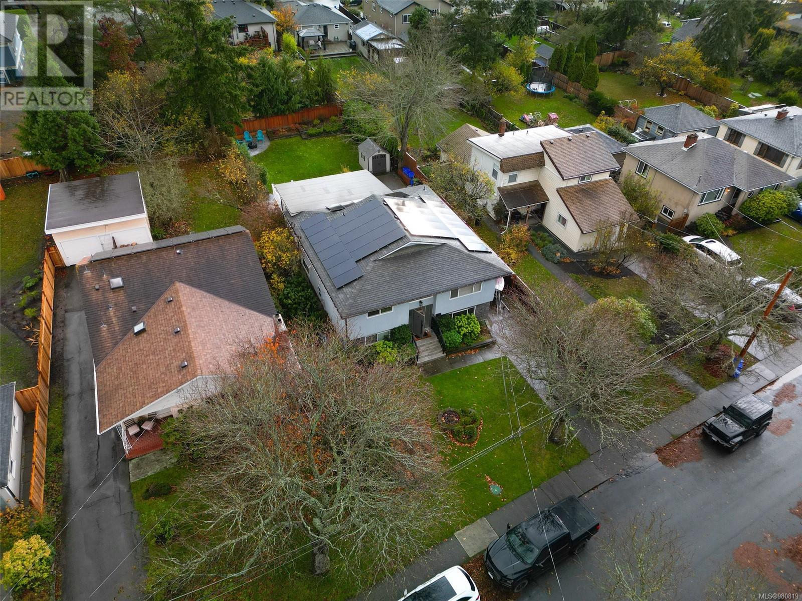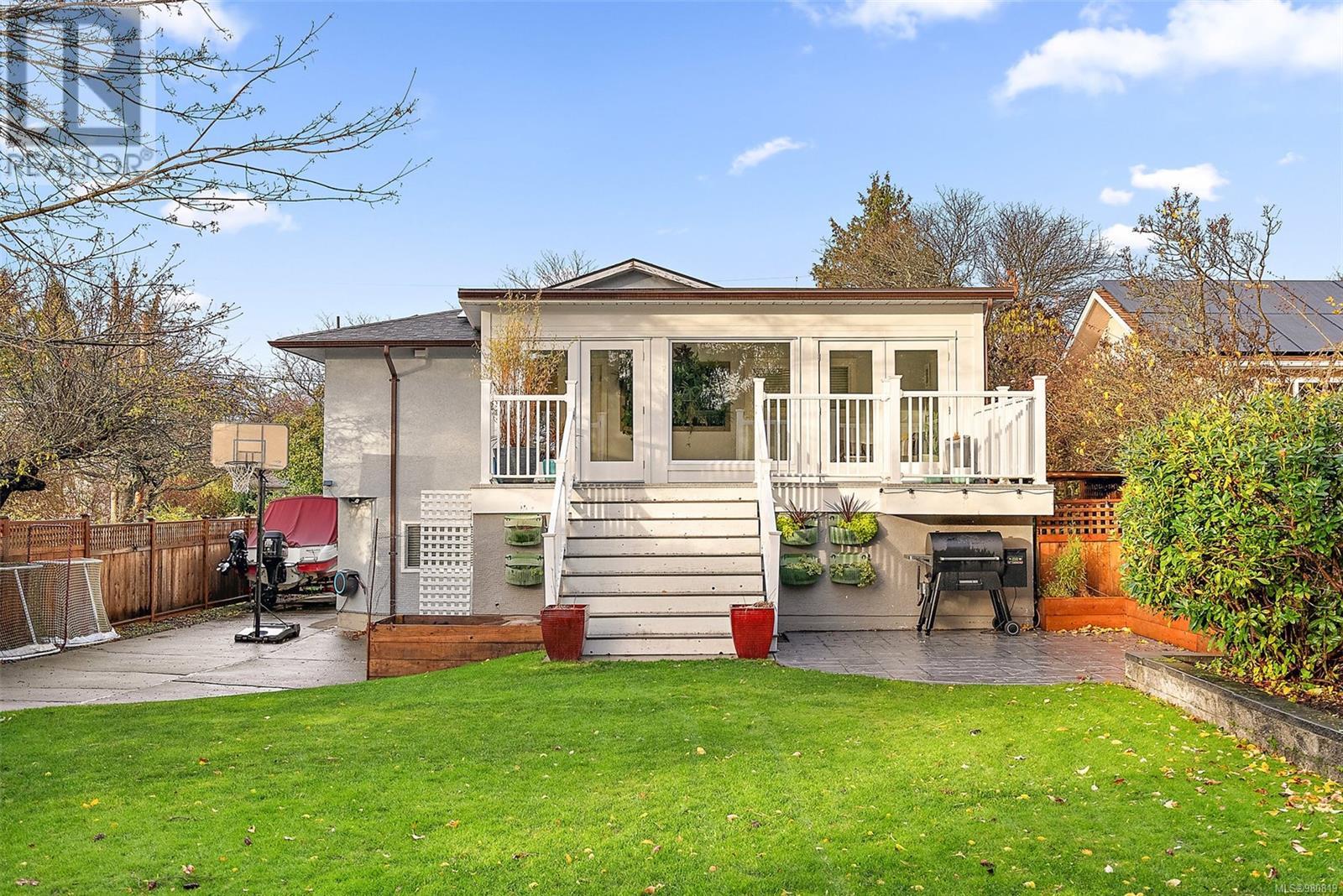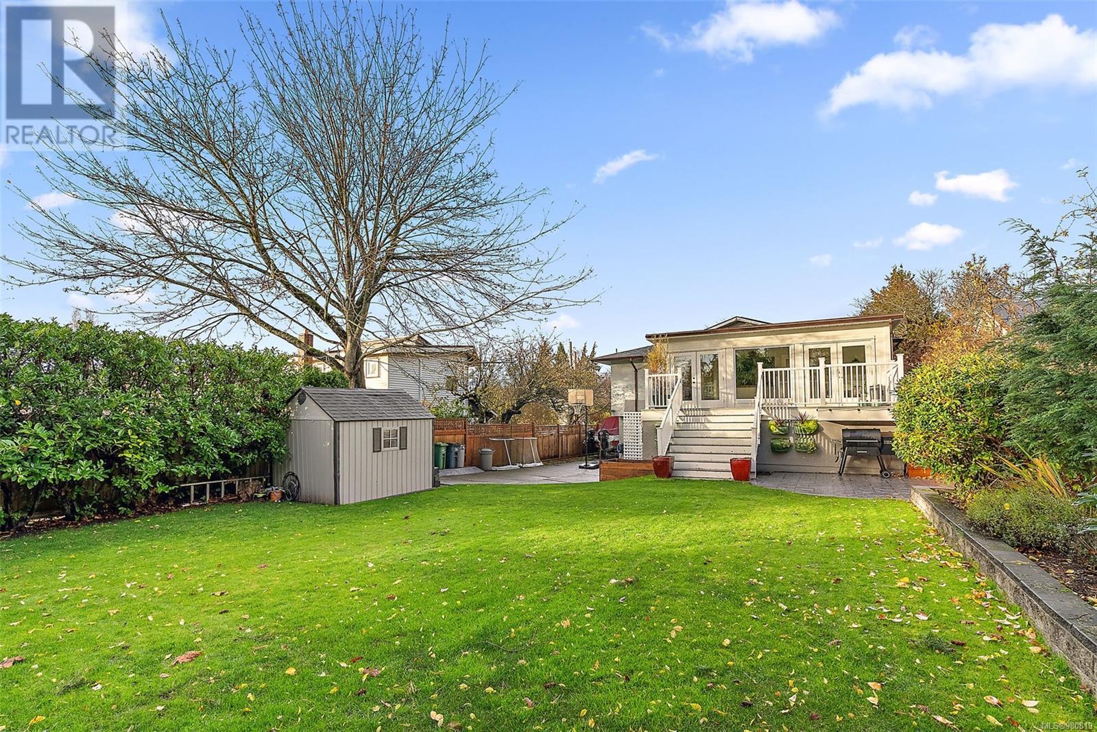 Welcome to your dream home located on Oak Bay border. Open floor plan with living room, dining room, and a beautiful kitchen. This home features a solar roof that offsets 60% of your hydro costs, saving you money and reducing your carbon footprint. Enjoy the south-facing spacious backyard, perfect for relaxing, children, pets or entertaining guests. Be drenched in sun on the back deck or sunroom which could be another bedroom. Irrigation system to keep your yard looking lush and green. Updates to the home include new windows, front door and railings, bathrooms, and laminate flooring throughout for easy maintenance. Primary bedroom offers an ensuite with a double sink vanity. Downstairs, you'll find a bedroom, workout room plus a 1 bedroom suite. Speckled flooring in the double car garage, providing a space for your vehicles and storage needs. Don't miss out on the opportunity to own this incredible home with plenty of upgrades and features. The friendly neighbourhood is popular with young families with a dead-end location. Walk to Hillside Mall, Oakland's Park, Save-On-Foods, bus routes, and the Jubilee hospital. (id:22211)
