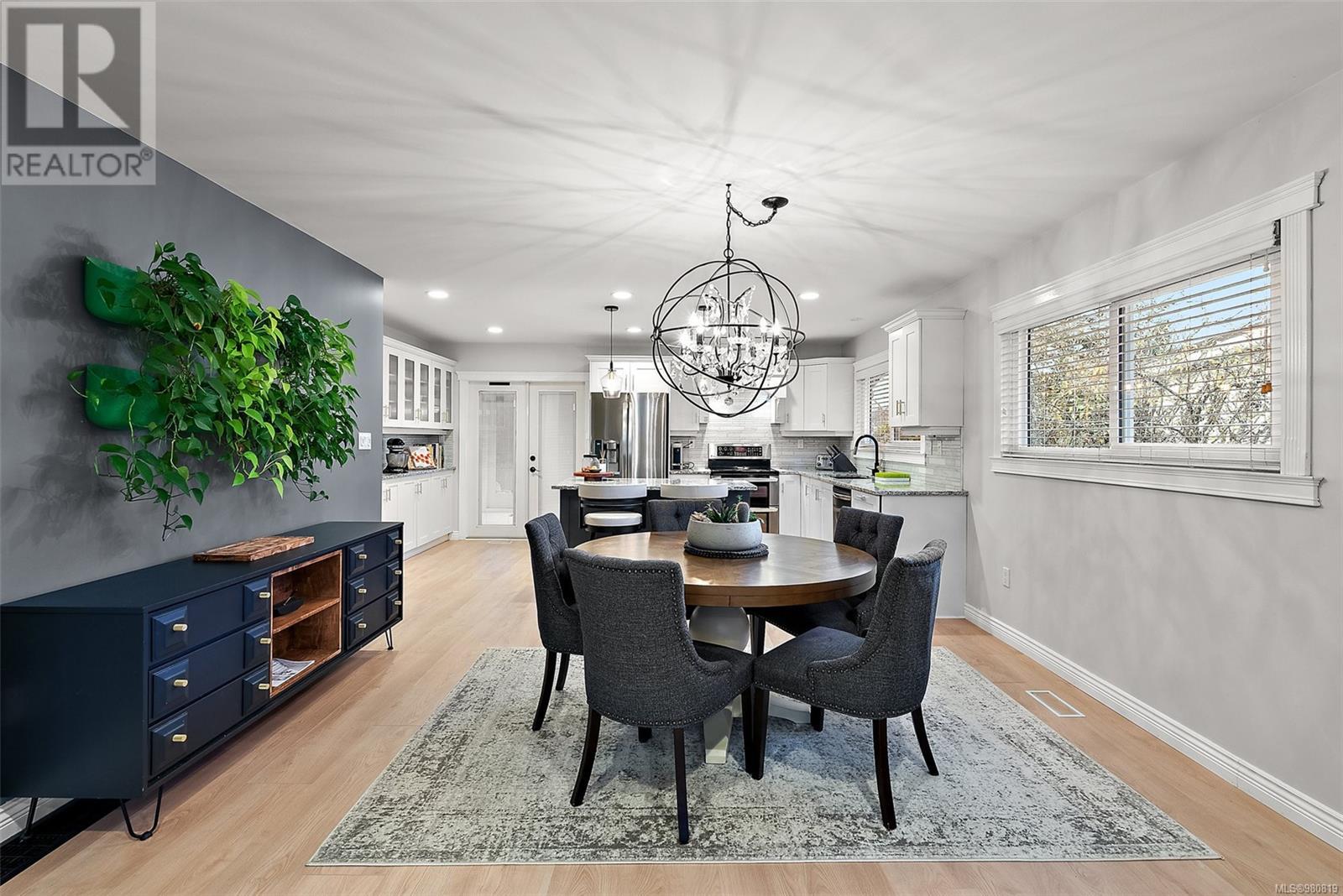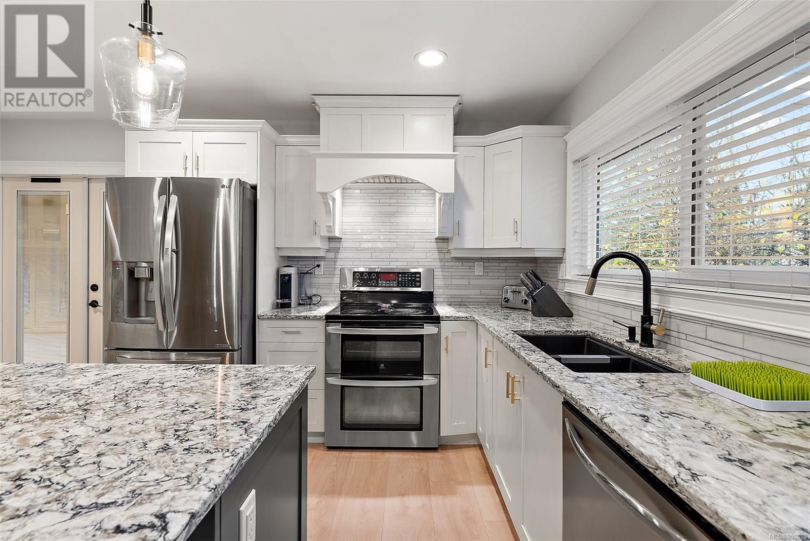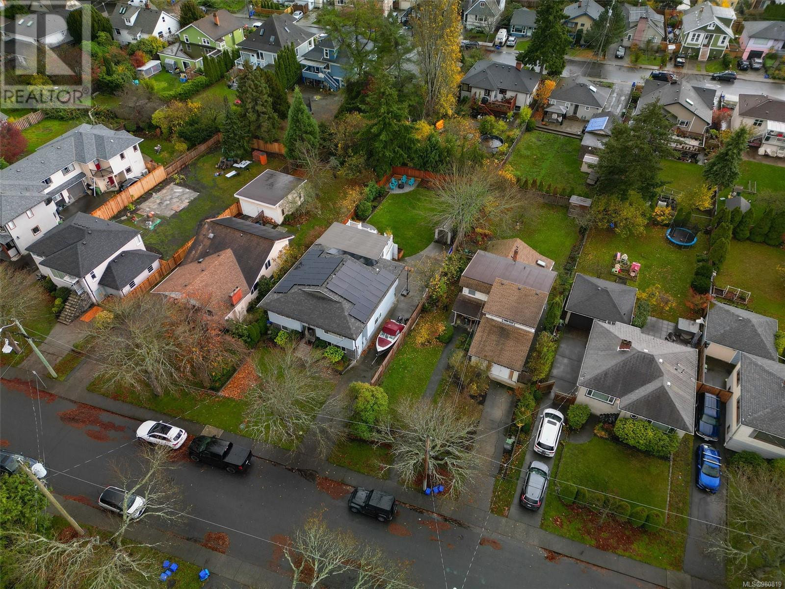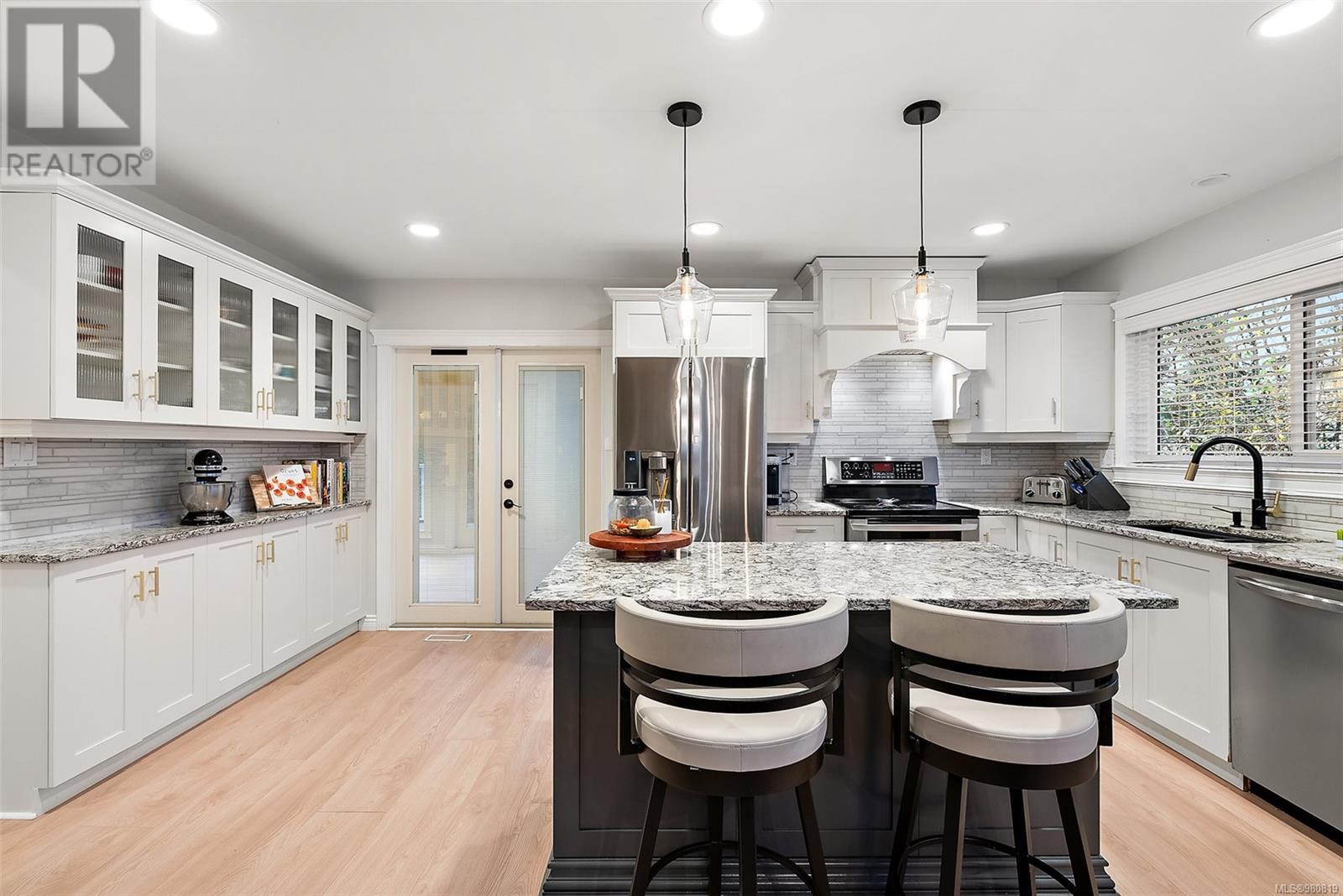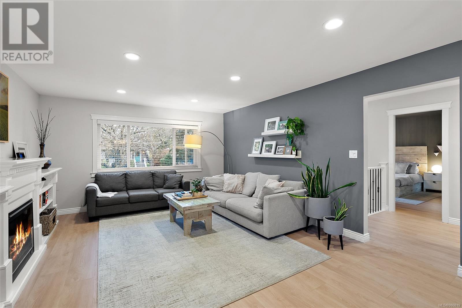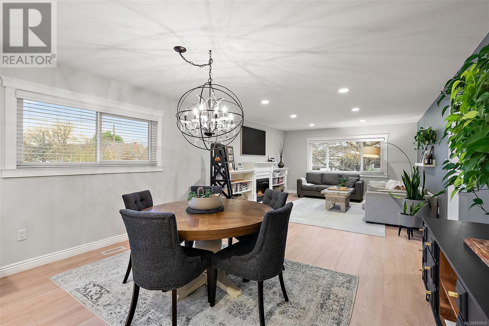 Welcome to your dream home located on Oak Bay border. Open floor plan with living room, dining room, and a beautiful kitchen. This home features a solar roof that offsets 60% of your hydro costs, saving you money and reducing your carbon footprint. Enjoy the south-facing spacious backyard, perfect for relaxing, children, pets or entertaining guests. Be drenched in sun on the back deck or sunroom which could be another bedroom. Irrigation system to keep your yard looking lush and green. Updates to the home include new windows, front door and railings, bathrooms, and laminate flooring throughout for easy maintenance. Primary bedroom offers an ensuite with a double sink vanity. Downstairs, you'll find a bedroom, workout room plus a 1 bedroom suite. Speckled flooring in the double car garage, providing a space for your vehicles and storage needs. Don't miss out on the opportunity to own this incredible home with plenty of upgrades and features. The friendly neighbourhood is popular with young families with a dead-end location. Walk to Hillside Mall, Oakland's Park, Save-On-Foods, bus routes, and the Jubilee hospital. (id:22211)