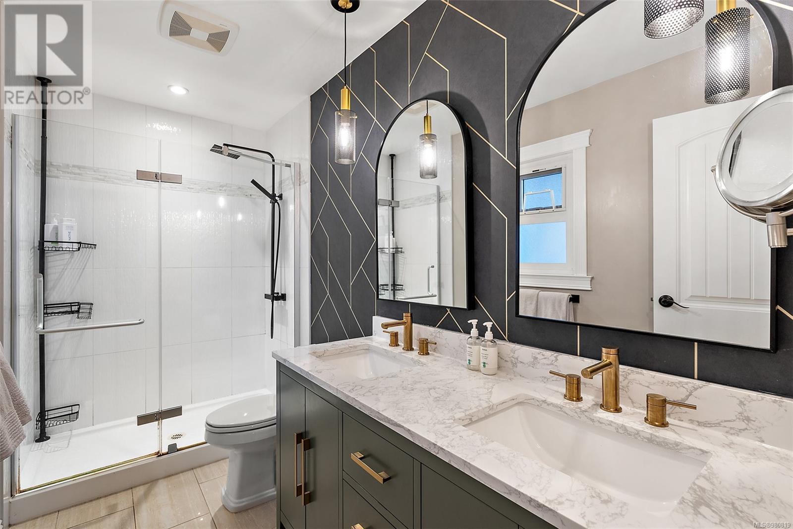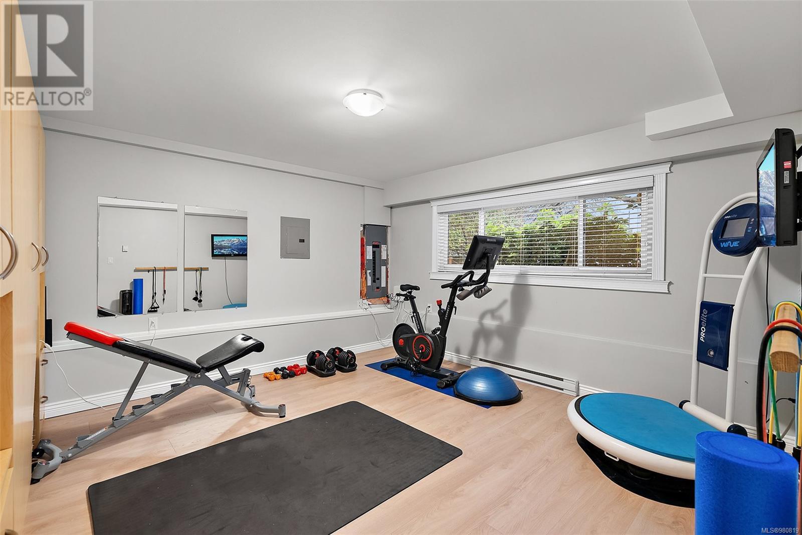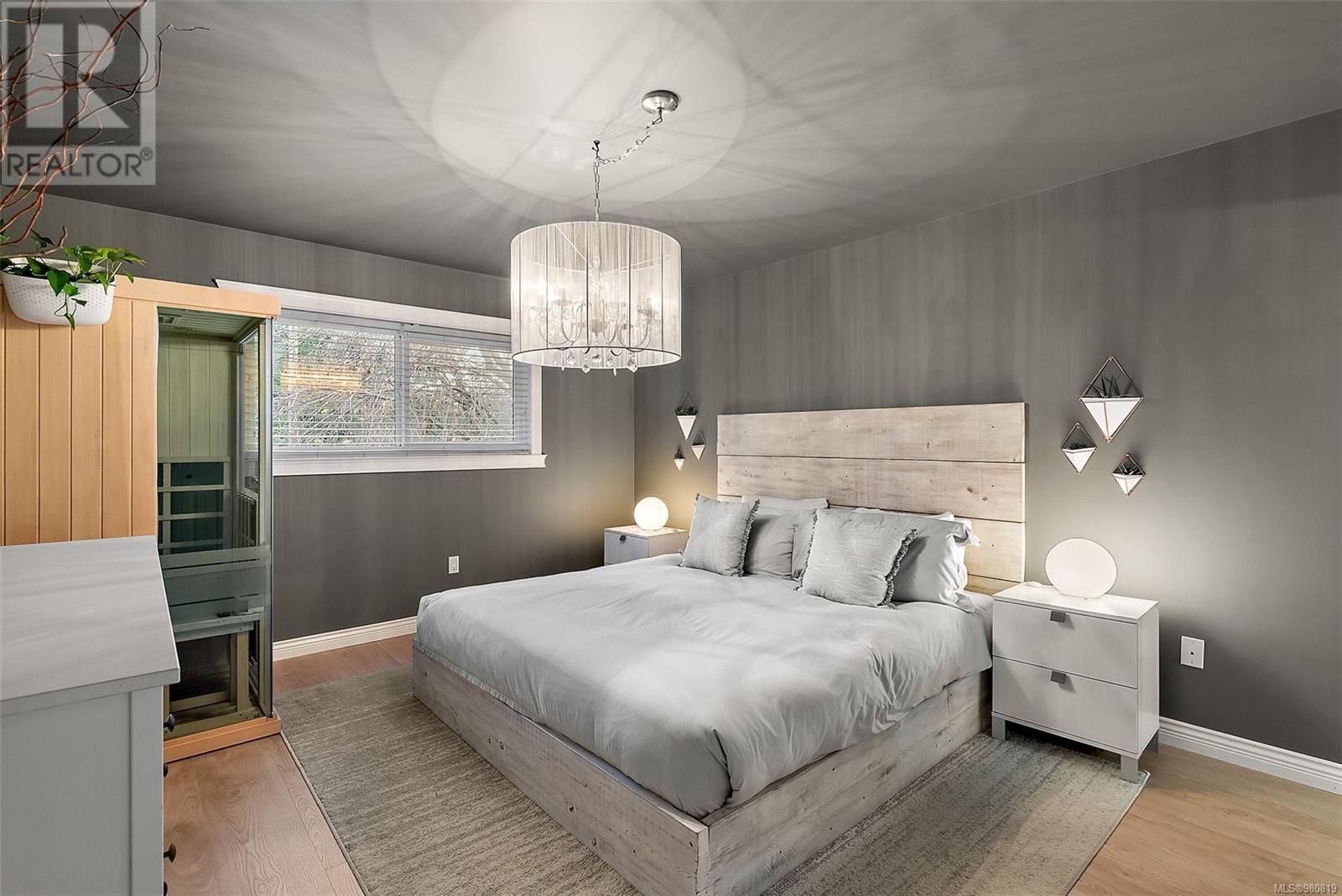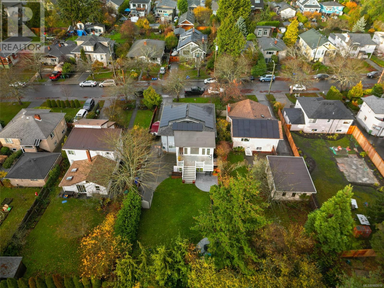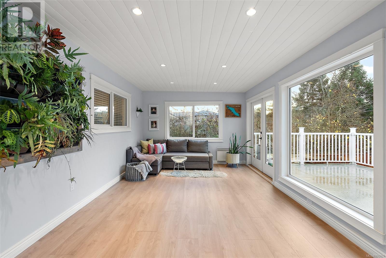 Welcome to your dream home located on Oak Bay border. Open floor plan with living room, dining room, and a beautiful kitchen. This home features a solar roof that offsets 60% of your hydro costs, saving you money and reducing your carbon footprint. Enjoy the south-facing spacious backyard, perfect for relaxing, children, pets or entertaining guests. Be drenched in sun on the back deck or sunroom which could be another bedroom. Irrigation system to keep your yard looking lush and green. Updates to the home include new windows, front door and railings, bathrooms, and laminate flooring throughout for easy maintenance. Primary bedroom offers an ensuite with a double sink vanity. Downstairs, you'll find a bedroom, workout room plus a 1 bedroom suite. Speckled flooring in the double car garage, providing a space for your vehicles and storage needs. Don't miss out on the opportunity to own this incredible home with plenty of upgrades and features. The friendly neighbourhood is popular with young families with a dead-end location. Walk to Hillside Mall, Oakland's Park, Save-On-Foods, bus routes, and the Jubilee hospital. (id:22211)