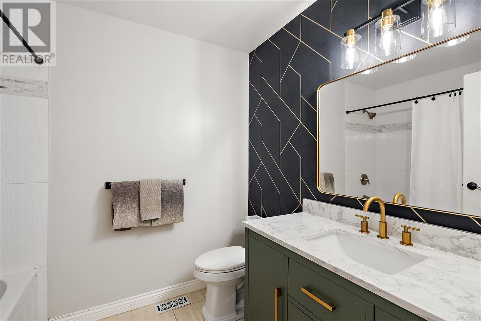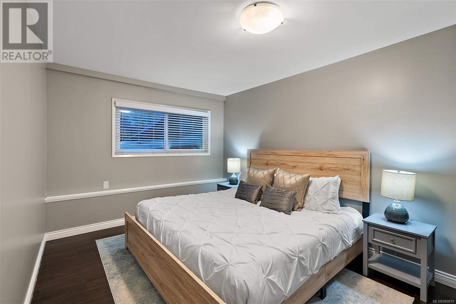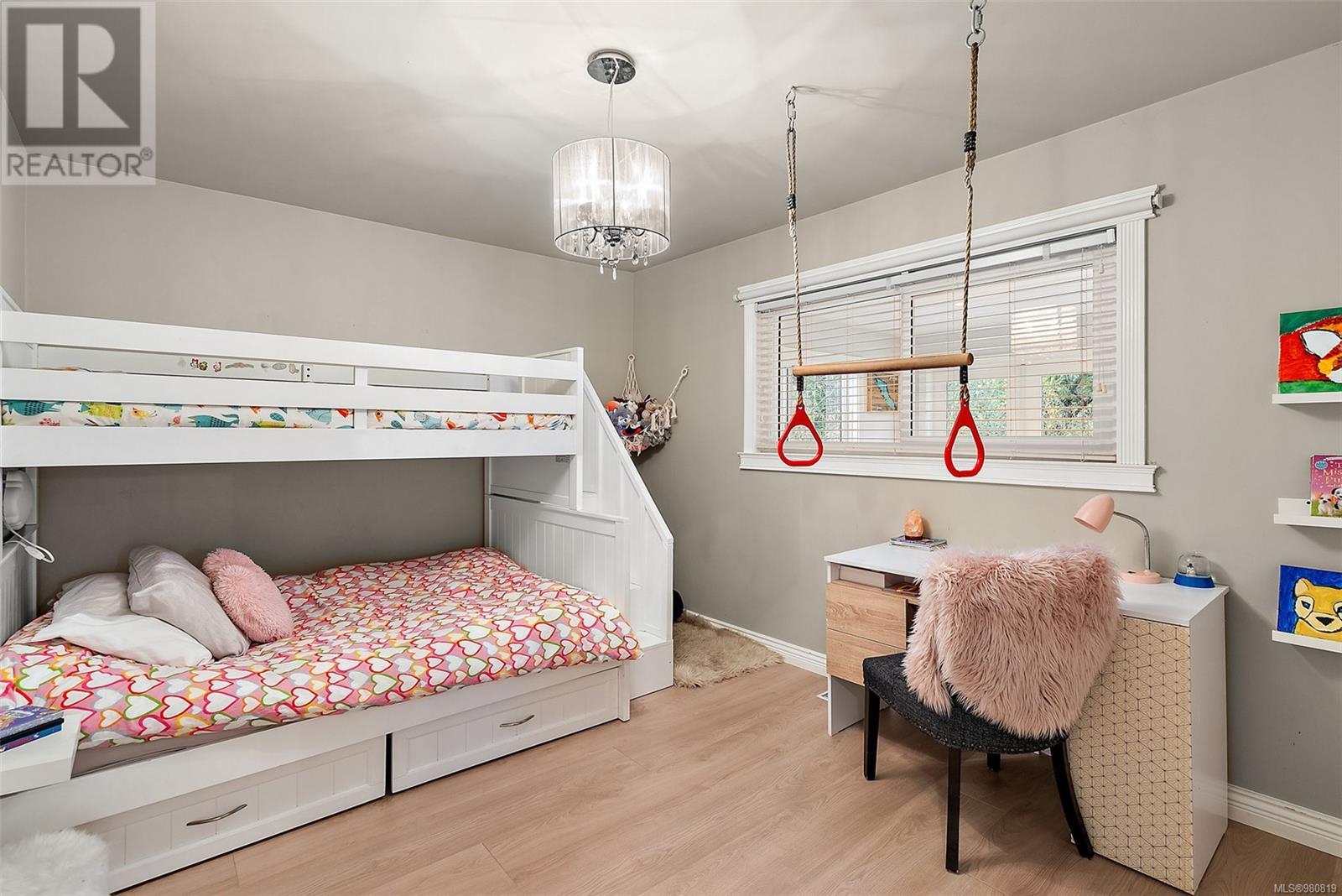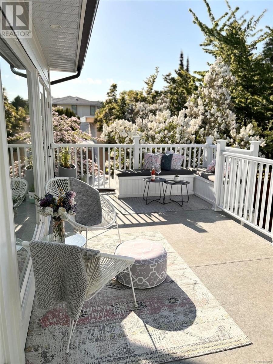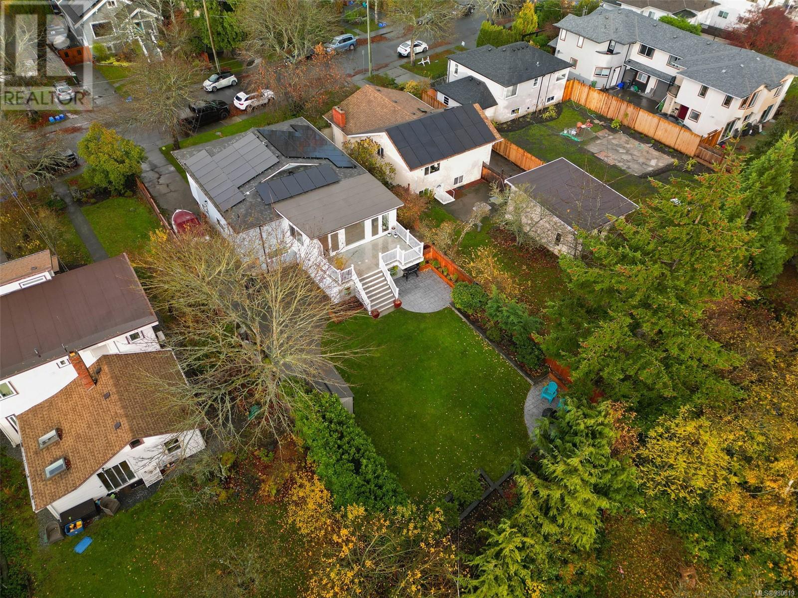 Welcome to your dream home located on Oak Bay border. Open floor plan with living room, dining room, and a beautiful kitchen. This home features a solar roof that offsets 60% of your hydro costs, saving you money and reducing your carbon footprint. Enjoy the south-facing spacious backyard, perfect for relaxing, children, pets or entertaining guests. Be drenched in sun on the back deck or sunroom which could be another bedroom. Irrigation system to keep your yard looking lush and green. Updates to the home include new windows, front door and railings, bathrooms, and laminate flooring throughout for easy maintenance. Primary bedroom offers an ensuite with a double sink vanity. Downstairs, you'll find a bedroom, workout room plus a 1 bedroom suite. Speckled flooring in the double car garage, providing a space for your vehicles and storage needs. Don't miss out on the opportunity to own this incredible home with plenty of upgrades and features. The friendly neighbourhood is popular with young families with a dead-end location. Walk to Hillside Mall, Oakland's Park, Save-On-Foods, bus routes, and the Jubilee hospital. (id:22211)