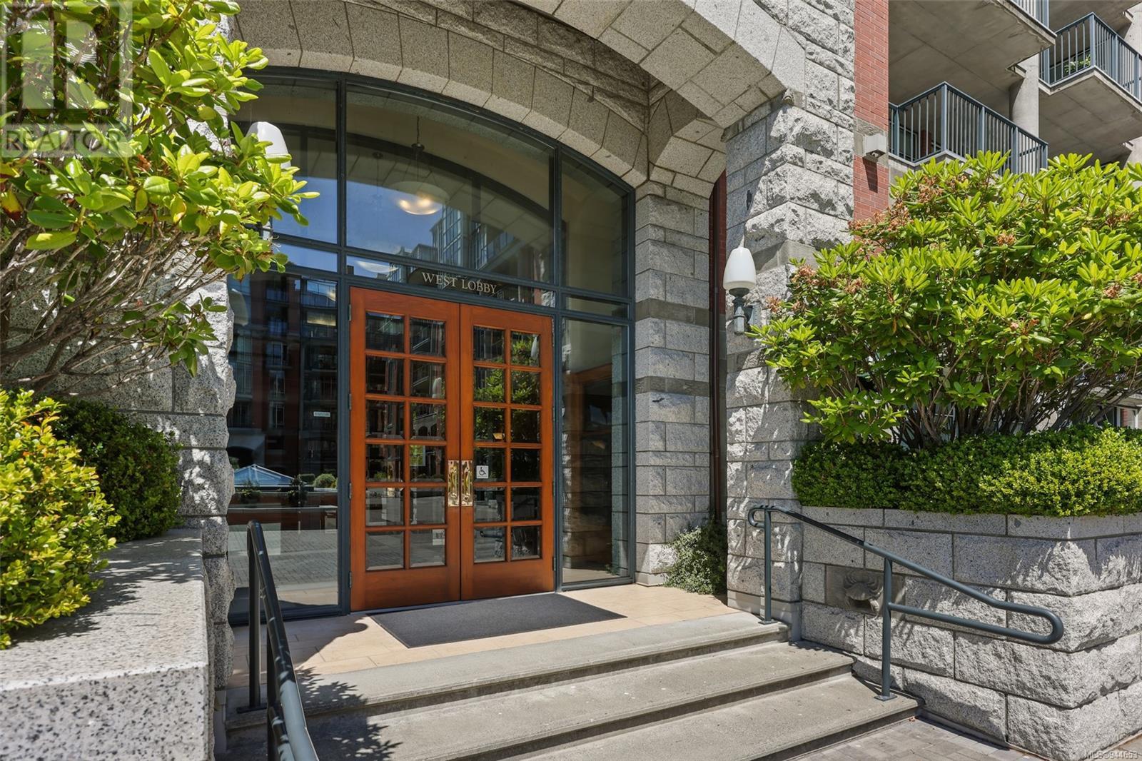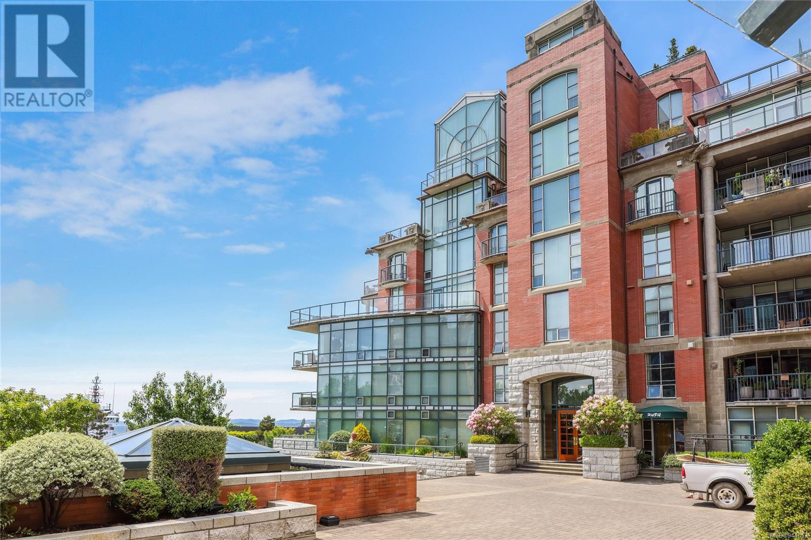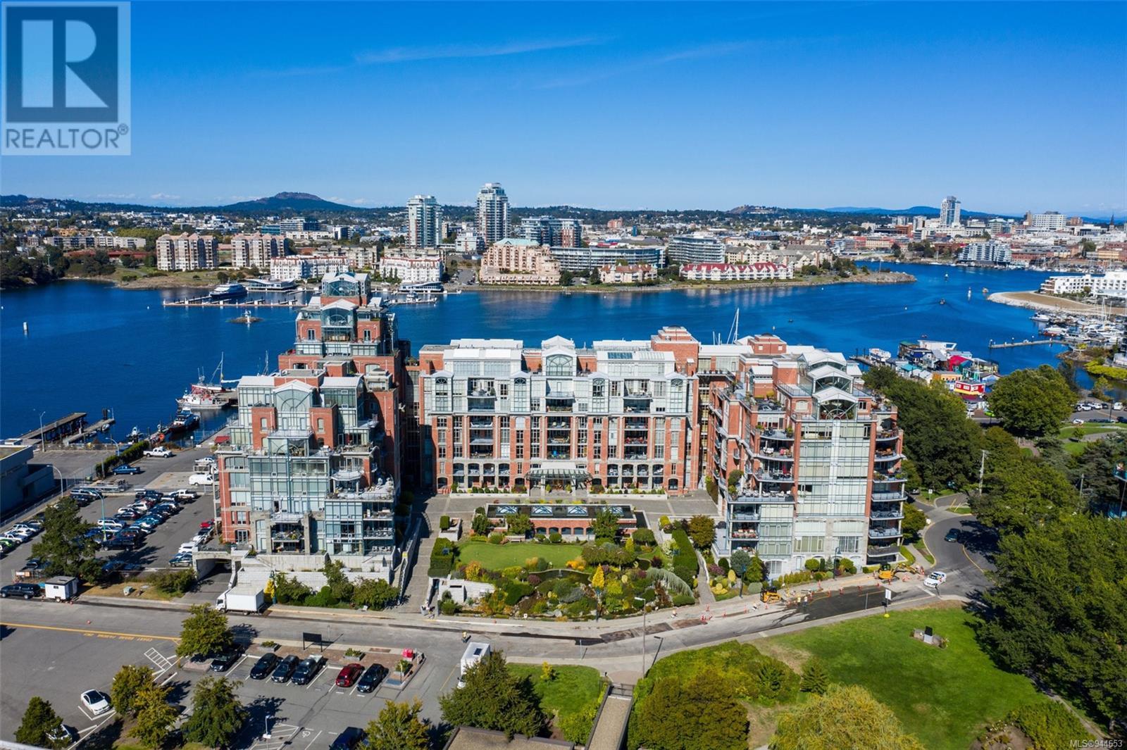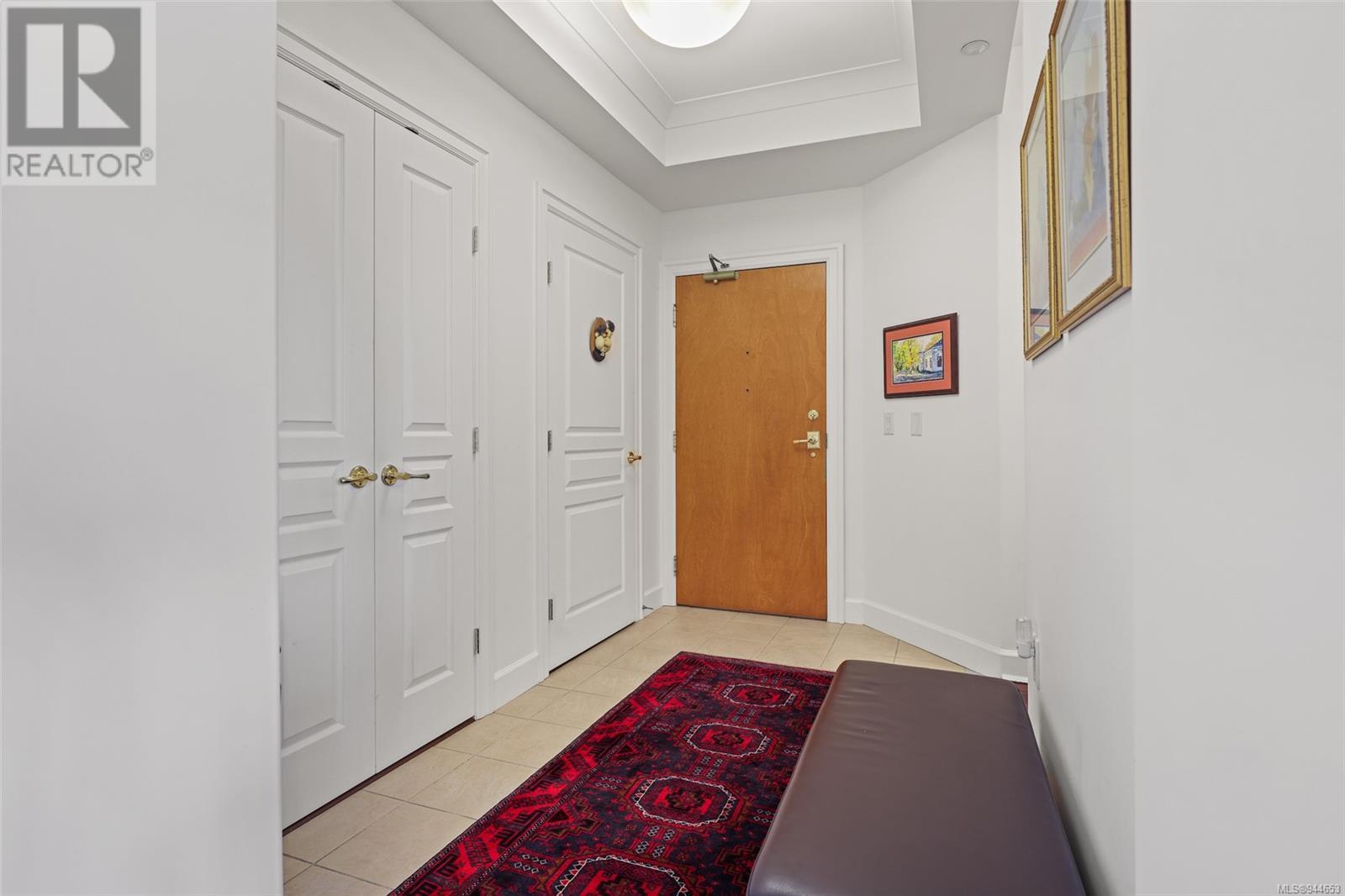 Welcome to this 2-bed plus den condo, offering a coastal urban lifestyle with glimpses of the ocean & mountains. With over 1200sqft of living space, this customized condo is well-suited for senior living with live-in assistance & designed with accessibility in mind. This unit features extra-wide doors & unique sliding doors onto the balcony, providing ease of movement, a parking space & separate storage conveniently located close to points of entries. Recent updates to both bathrooms, fresh paint, new carpet, high-end engineered hardwood flooring throughout & newer appliances have been installed within the last two years. The in-suite storage has been updated into a small office space for added functionality. As a resident, you'll have access to numerous luxury amenities, including concierge services, fitness facilities, an outdoor putting green, an indoor pool/sauna & more! You are steps from Fisherman's Wharf, Dallas Rd waterfront trail & everything downtown Victoria has to offer! (id:22211)
